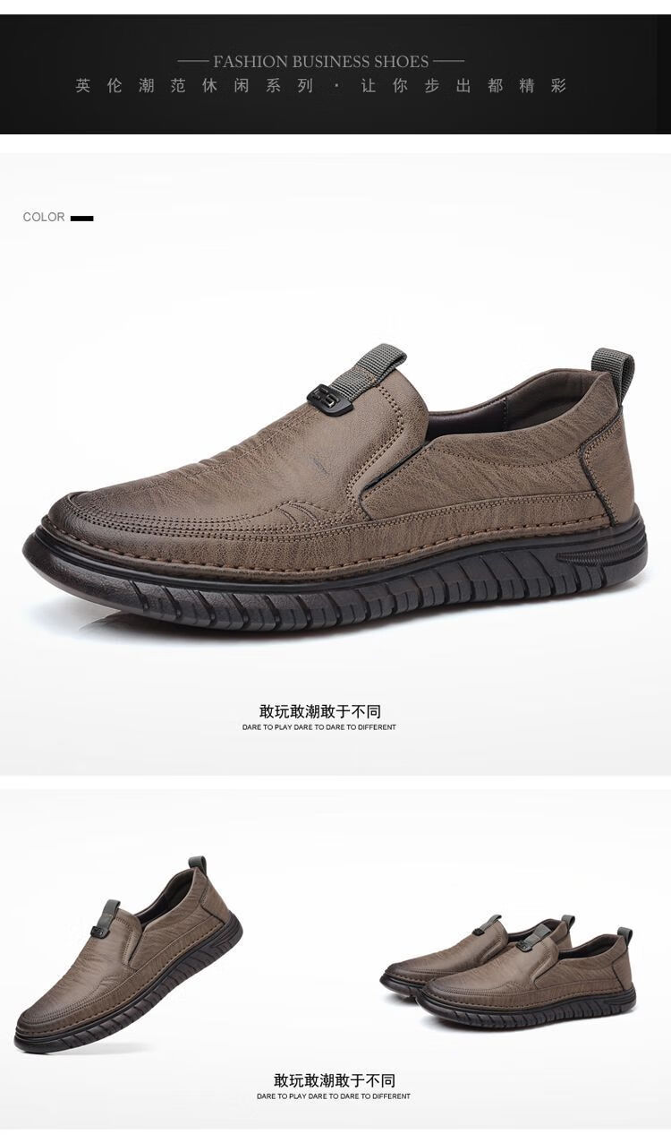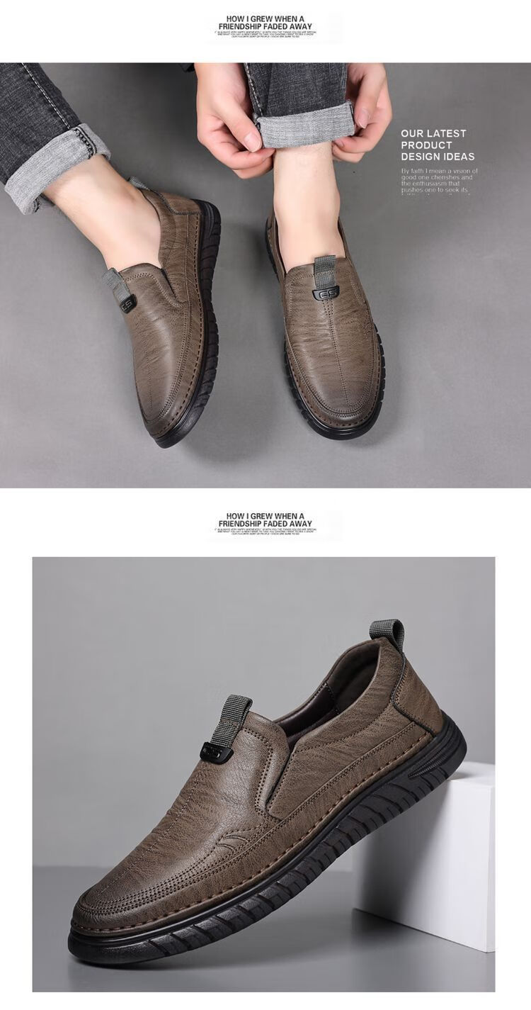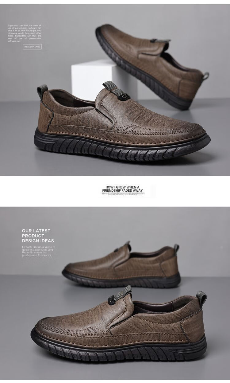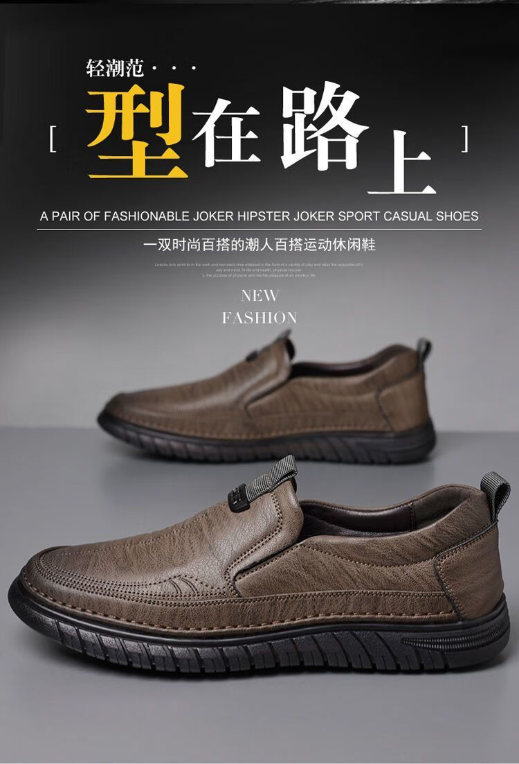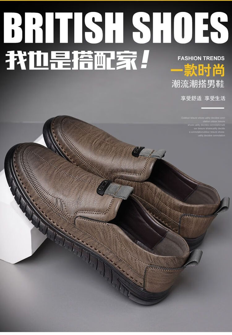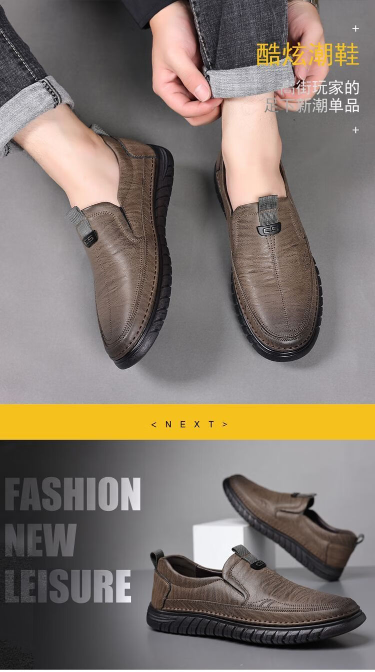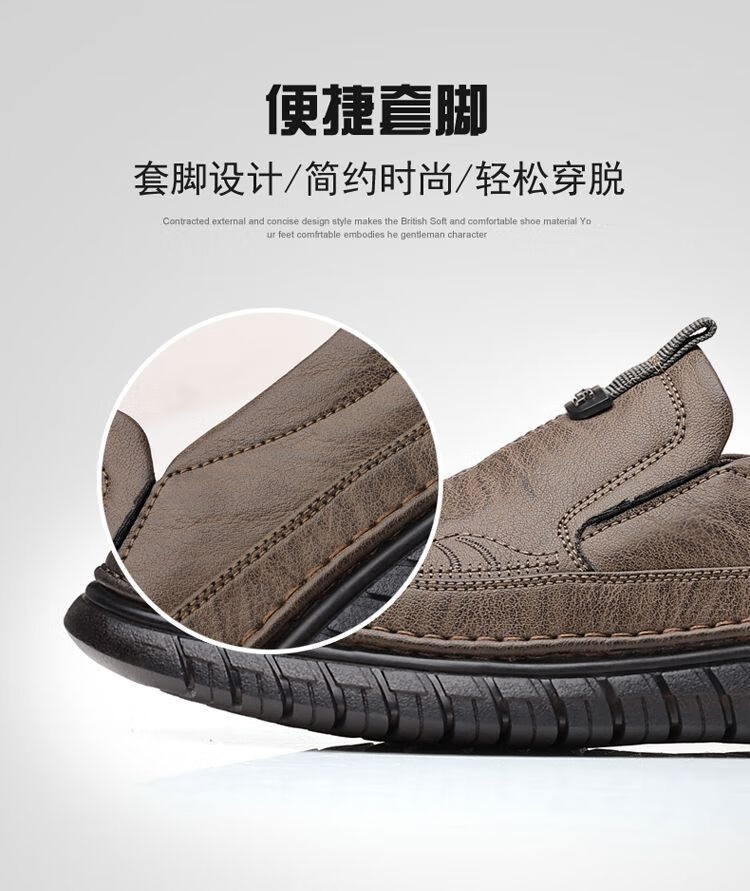 【100%全牛皮】真皮软底懒人鞋一脚蹬百搭休闲皮鞋男新款驾车透气 D360棕色真皮精品版 41