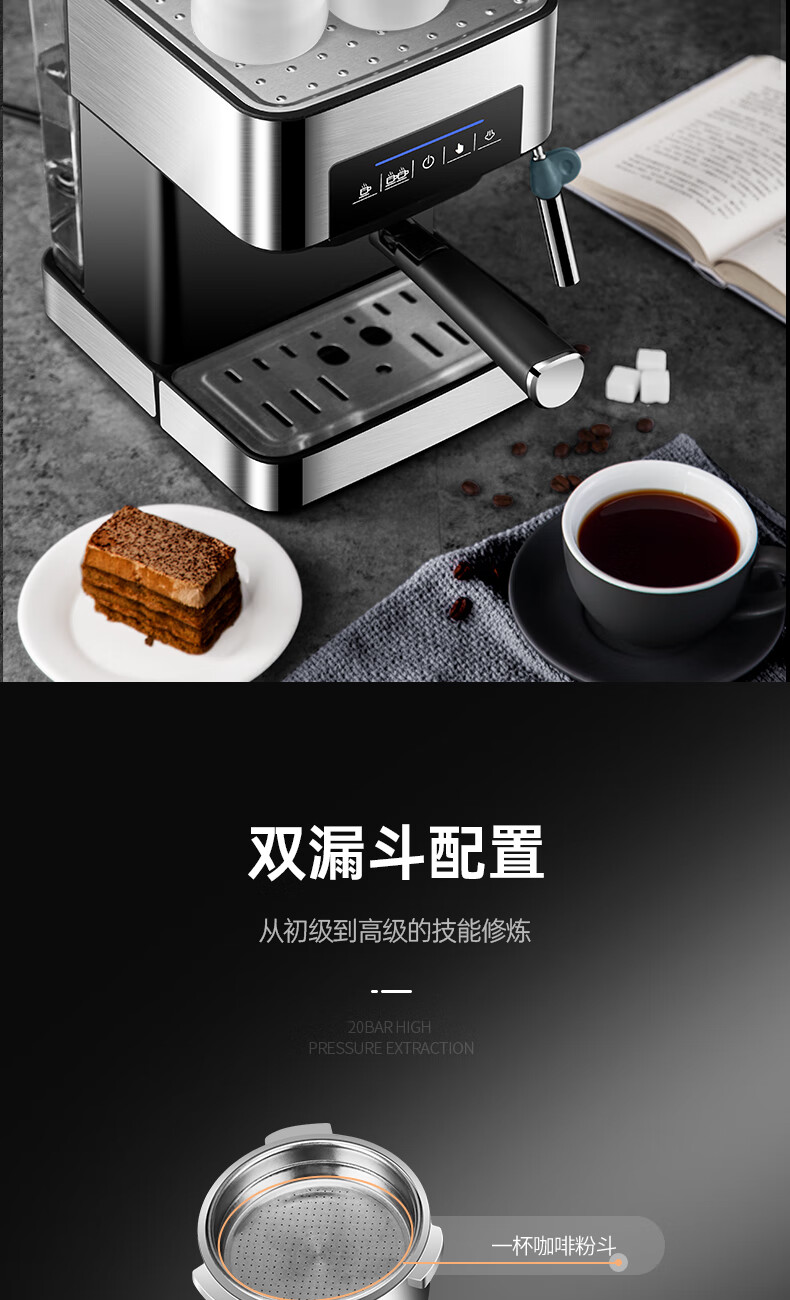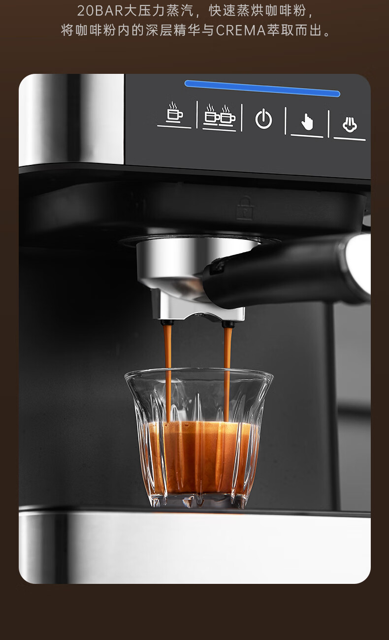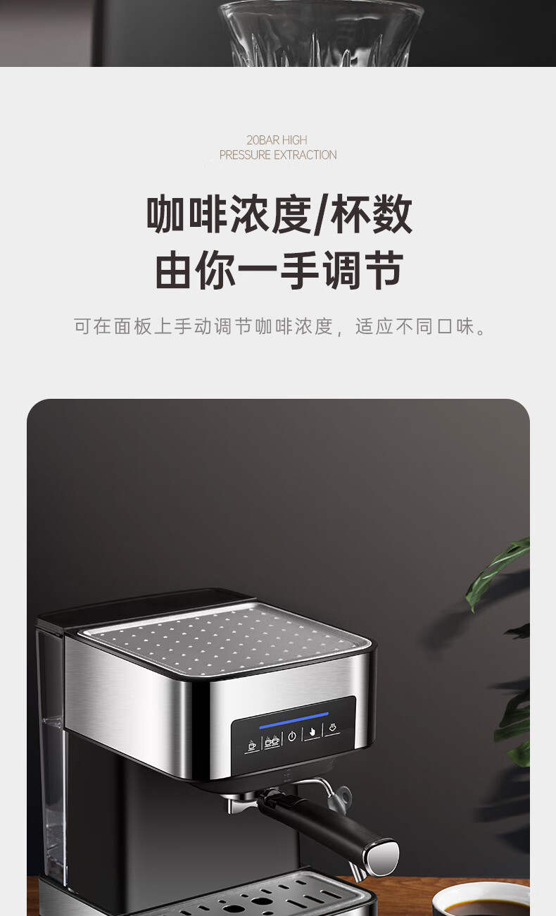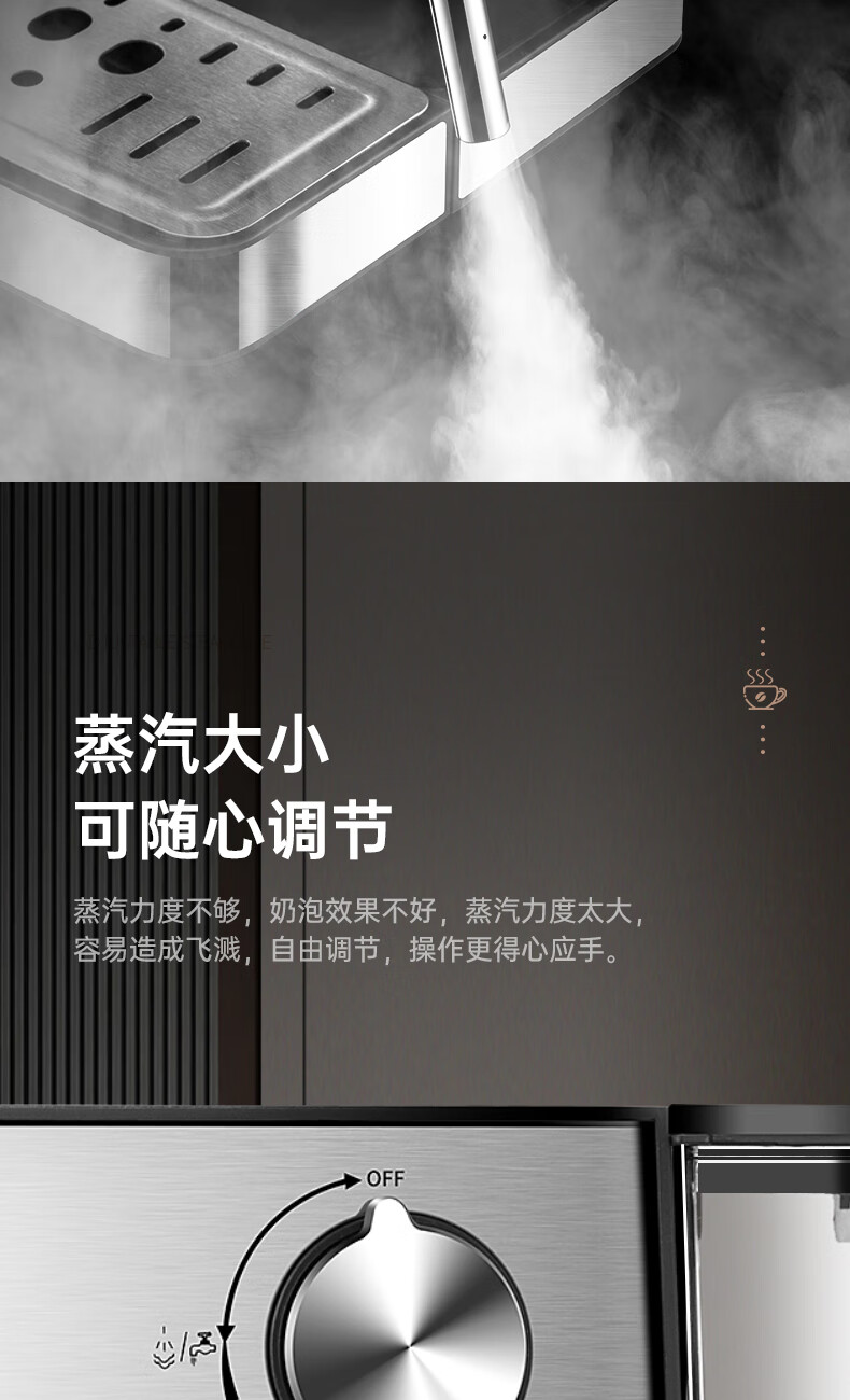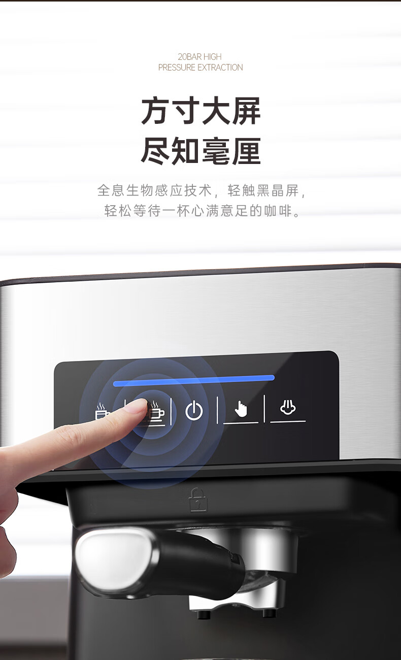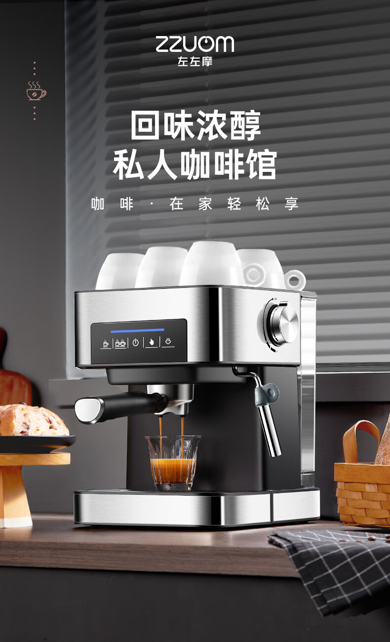 左左摩(ZZUOM)【八仓配送】咖啡机 家用半自动意式泵压式20Bar高压可打奶泡1.5升大容量水箱触控式大屏 咖啡机+电动磨豆机