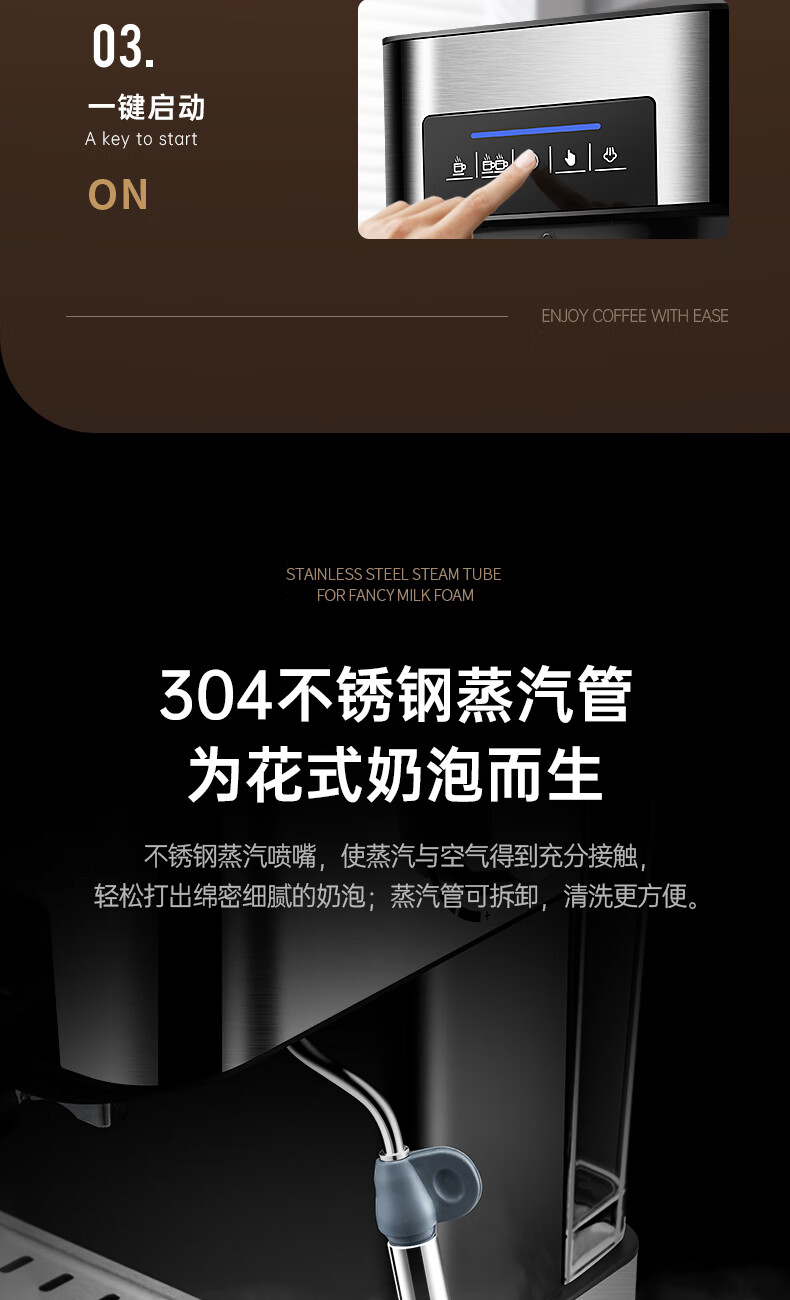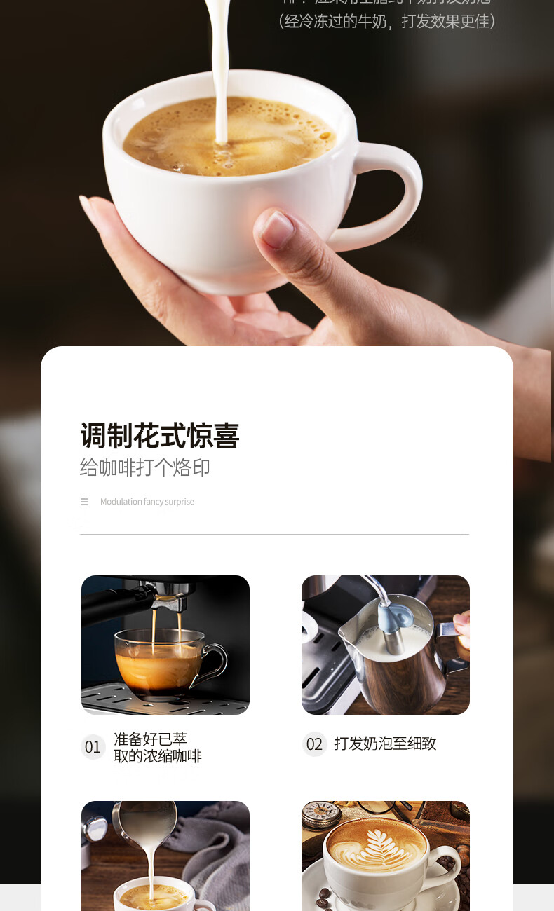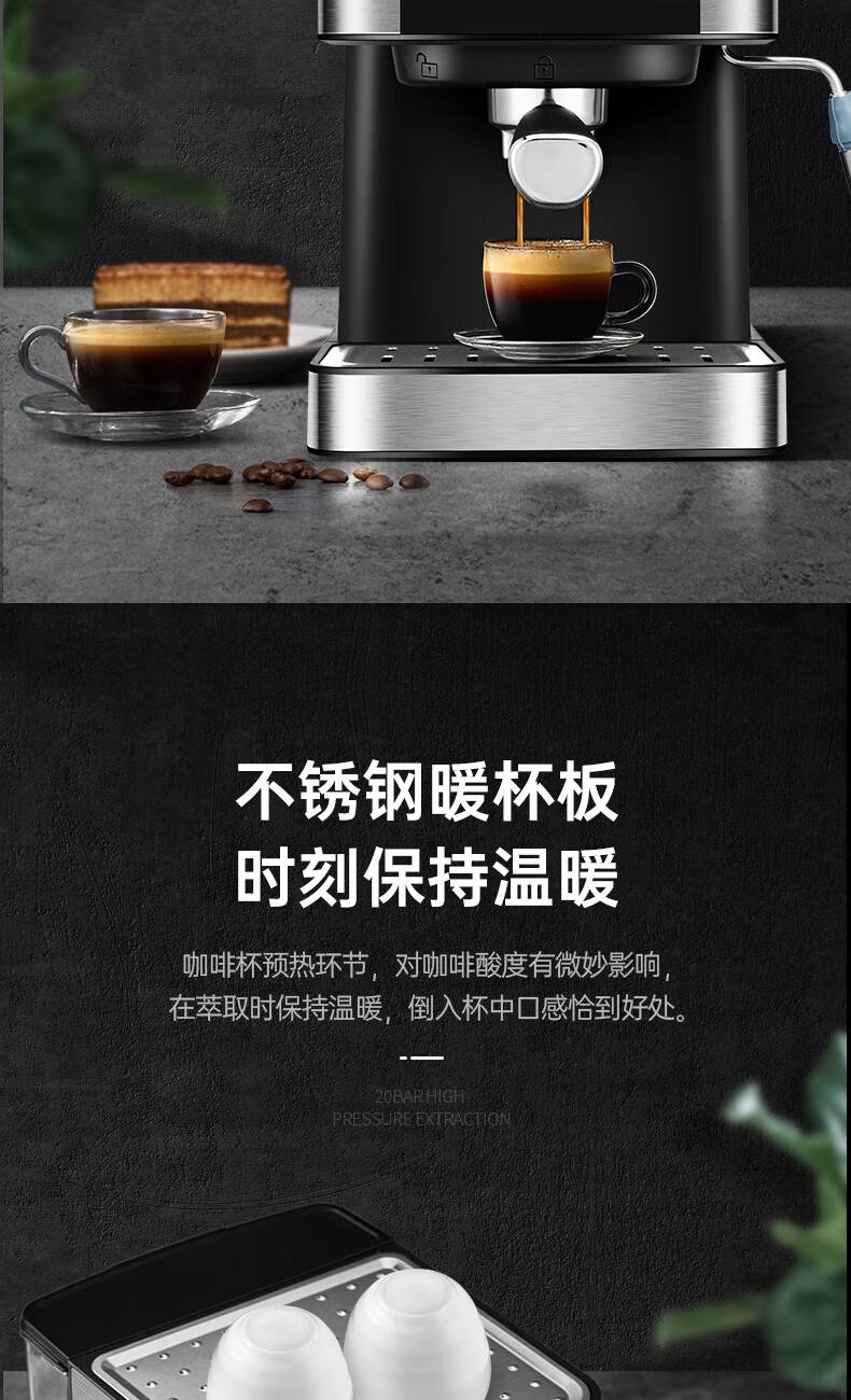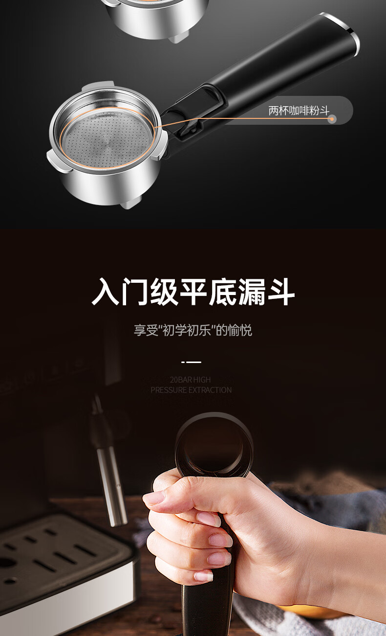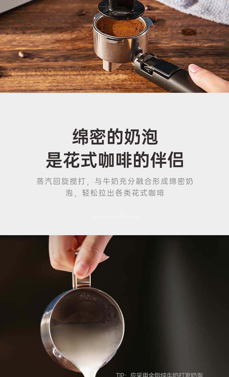 左左摩(ZZUOM)【八仓配送】咖啡机 家用半自动意式泵压式20Bar高压可打奶泡1.5升大容量水箱触控式大屏 咖啡机+电动磨豆机