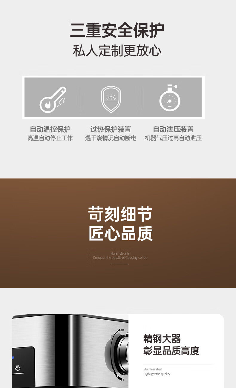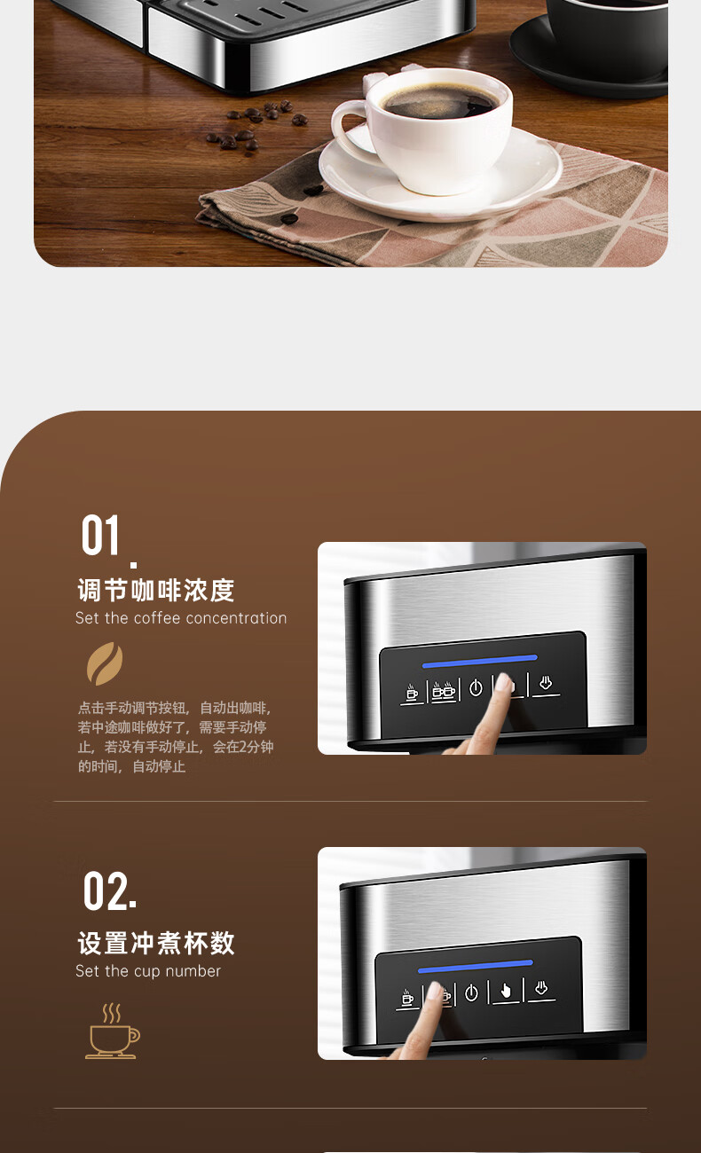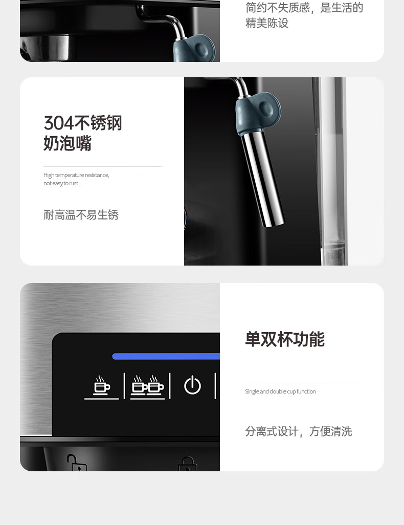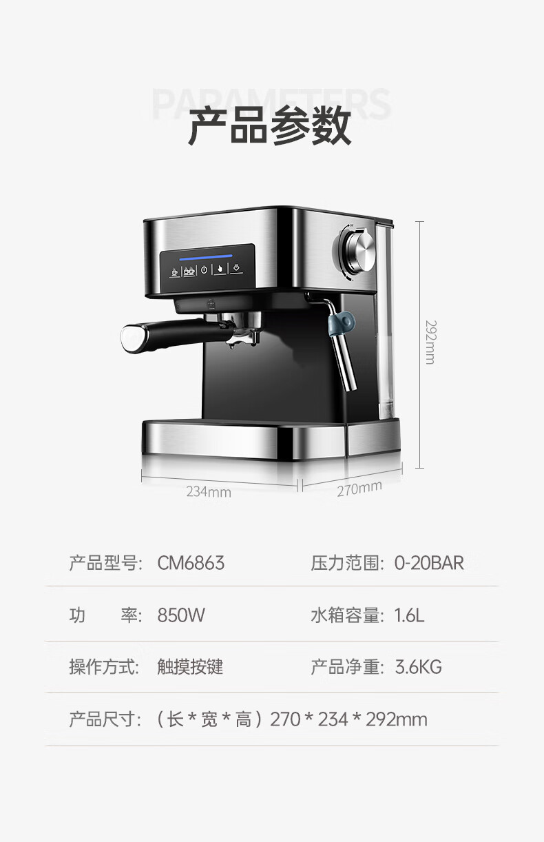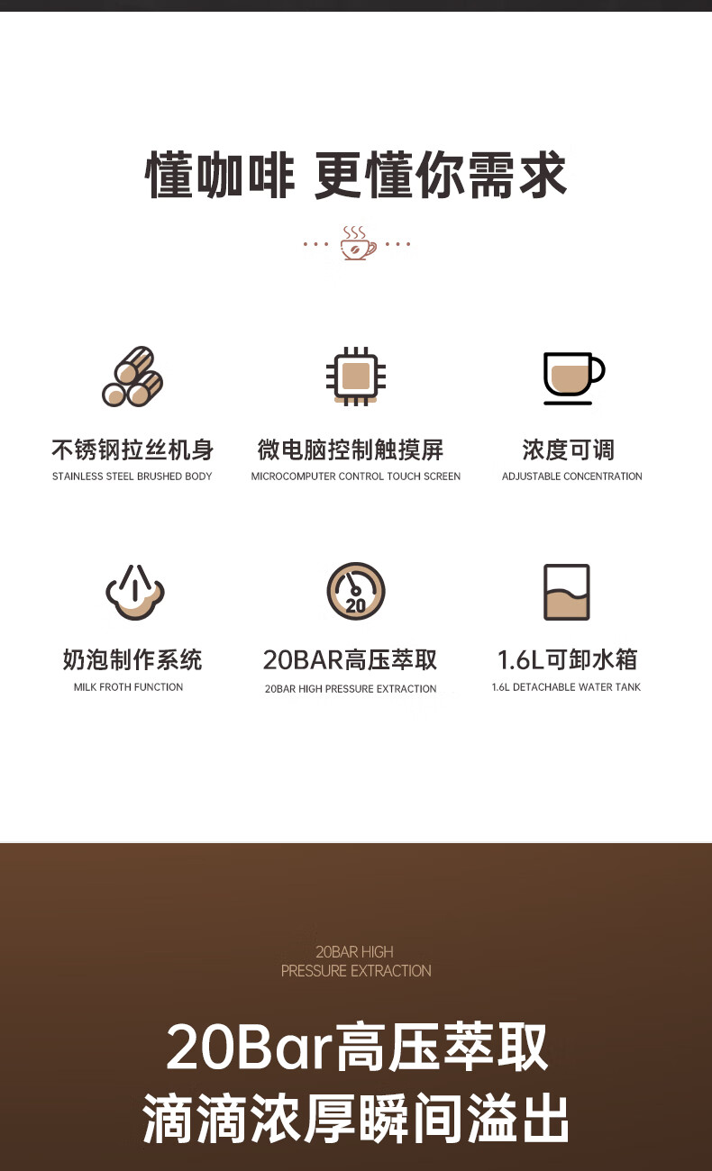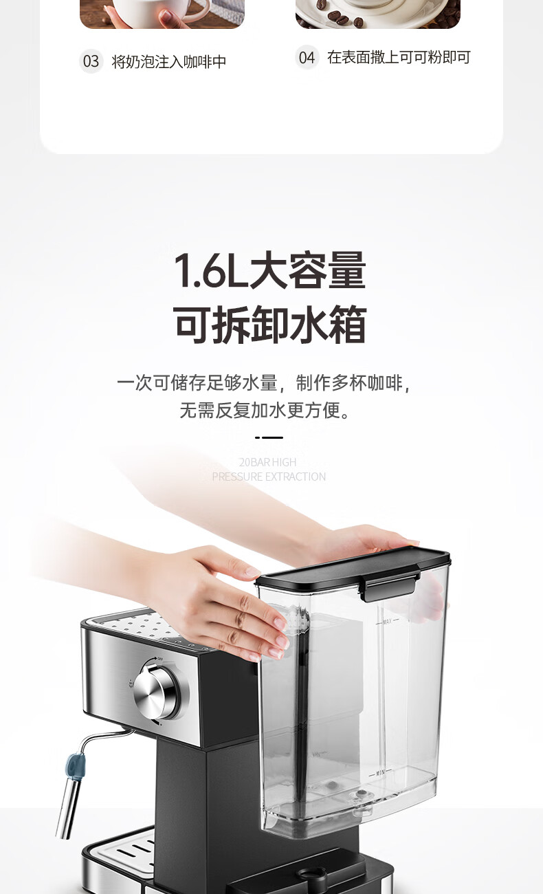 左左摩(ZZUOM)【八仓配送】咖啡机 家用半自动意式泵压式20Bar高压可打奶泡1.5升大容量水箱触控式大屏 咖啡机+电动磨豆机