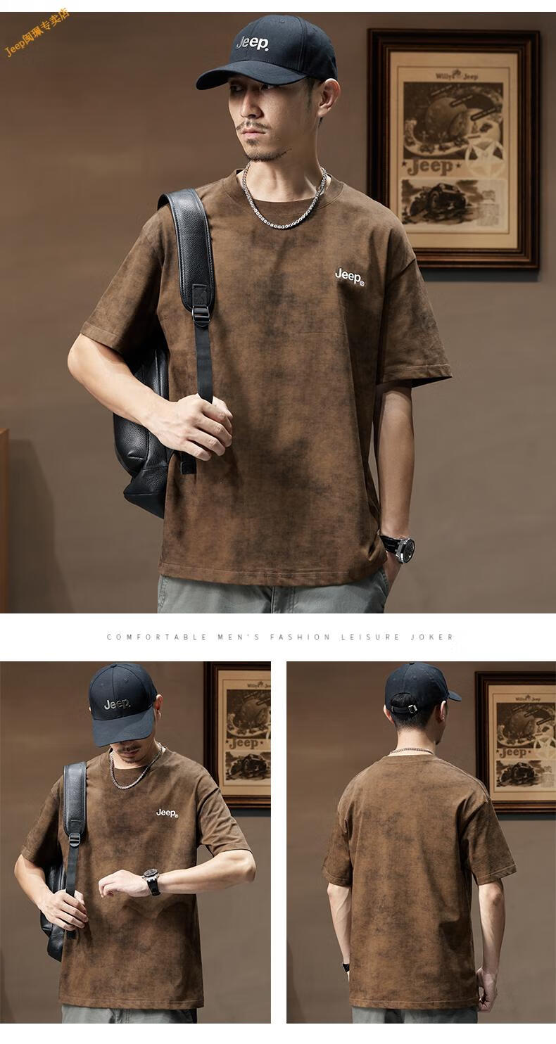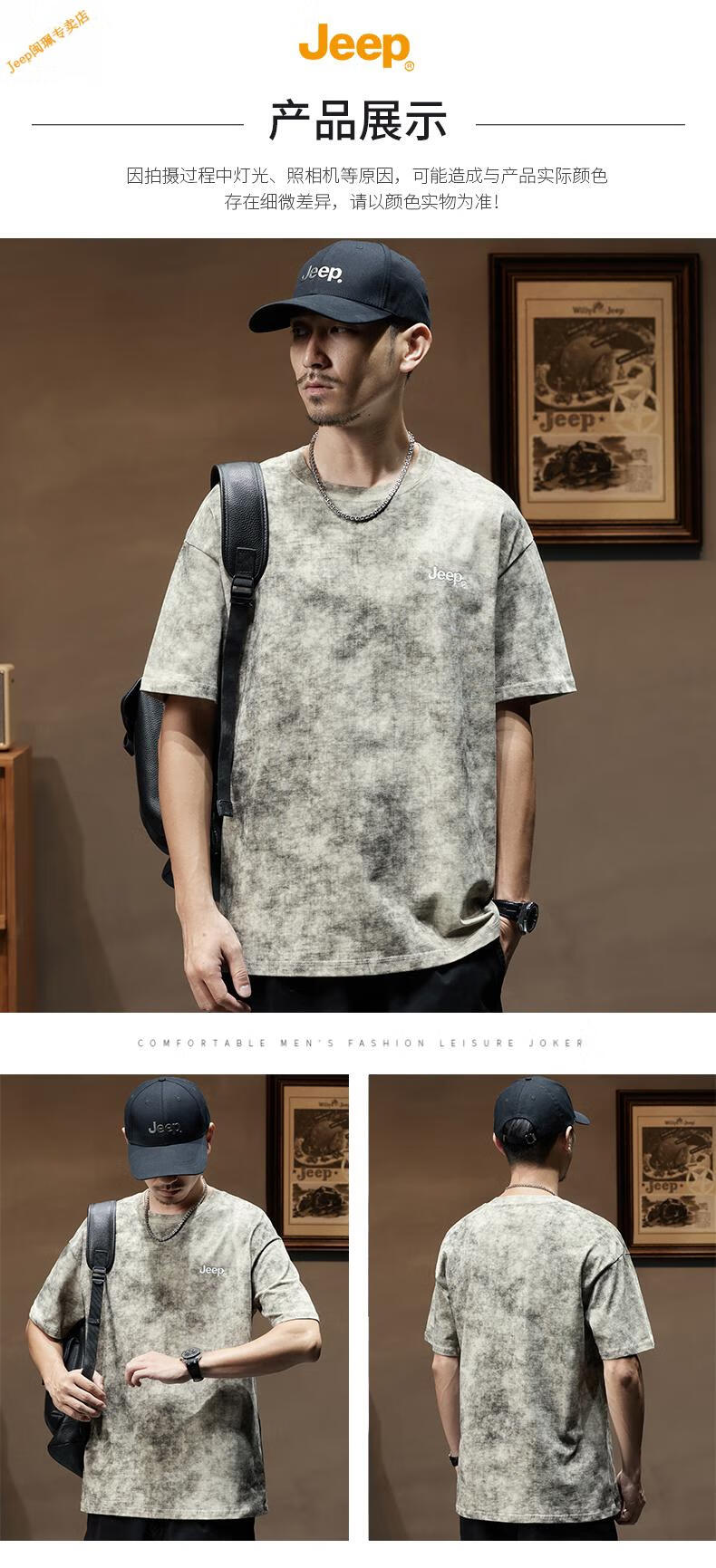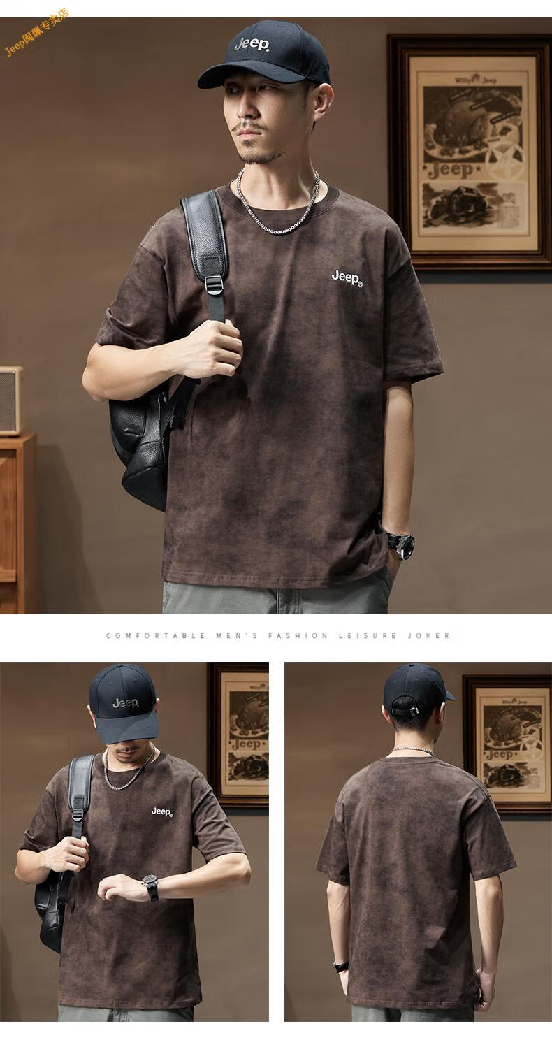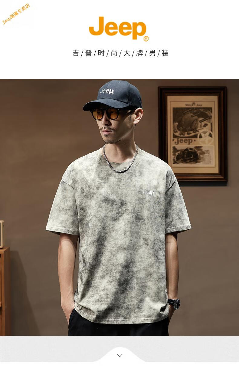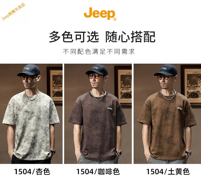 吉普(JEEP)美式高端短袖t恤男士2025年夏季薄款纯棉上衣扎染运动体恤男T硬汉 土黄色 【专柜正品】 2XL 推荐【141-160斤】