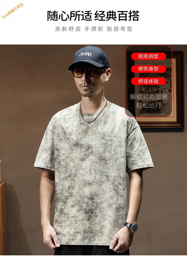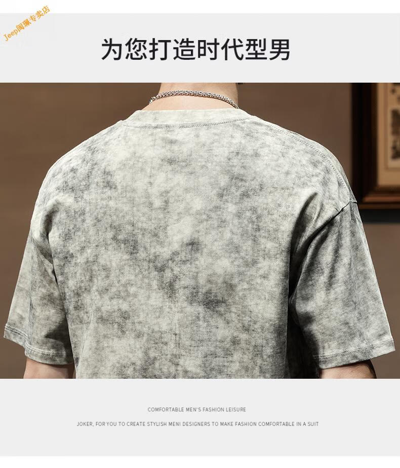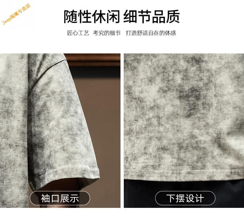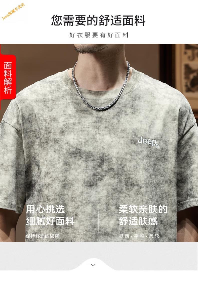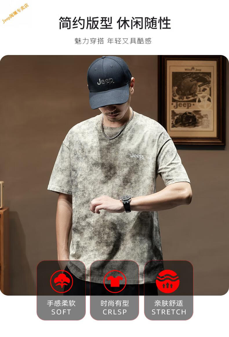 吉普(JEEP)美式高端短袖t恤男士2025年夏季薄款纯棉上衣扎染运动体恤男T硬汉 土黄色 【专柜正品】 2XL 推荐【141-160斤】