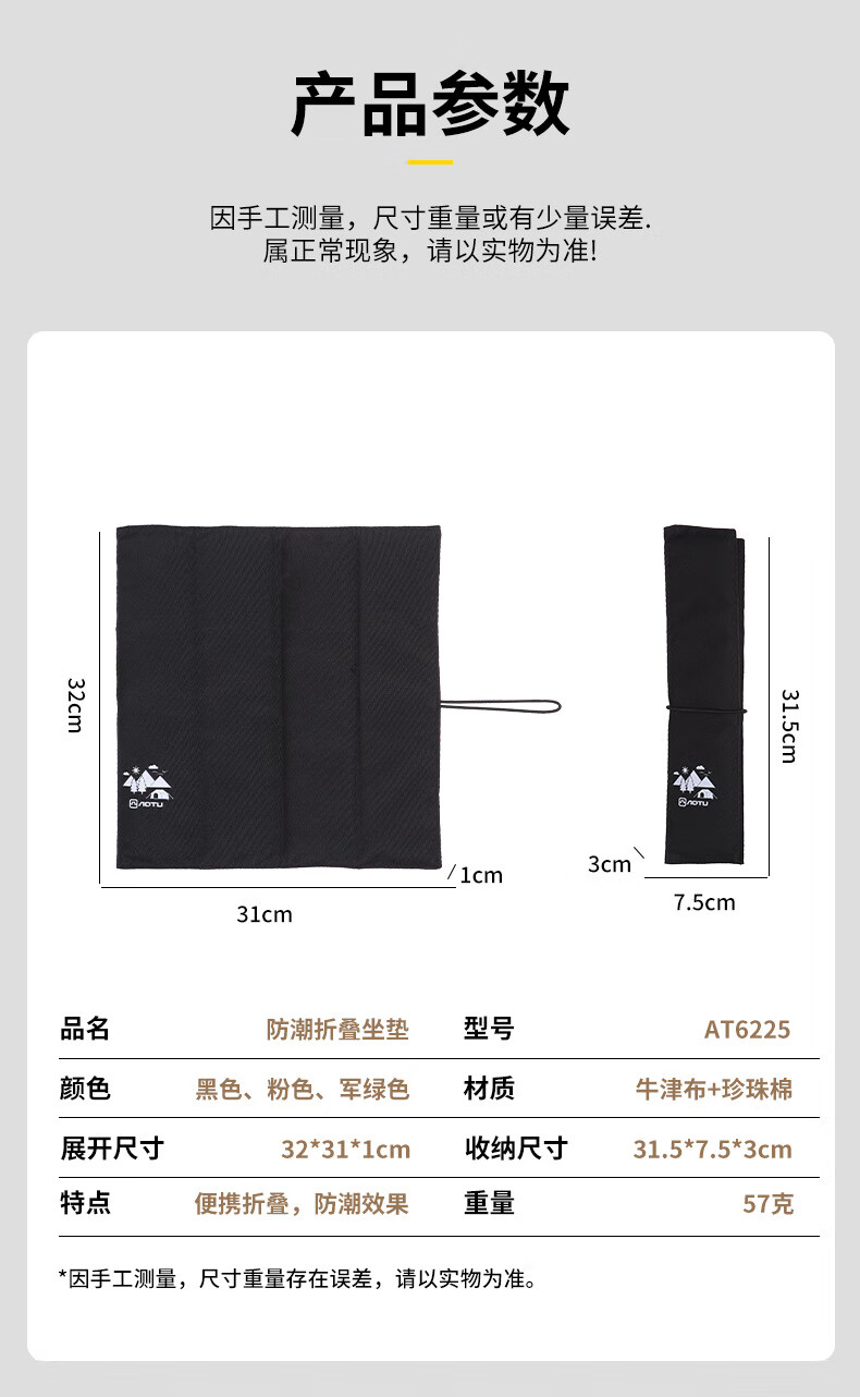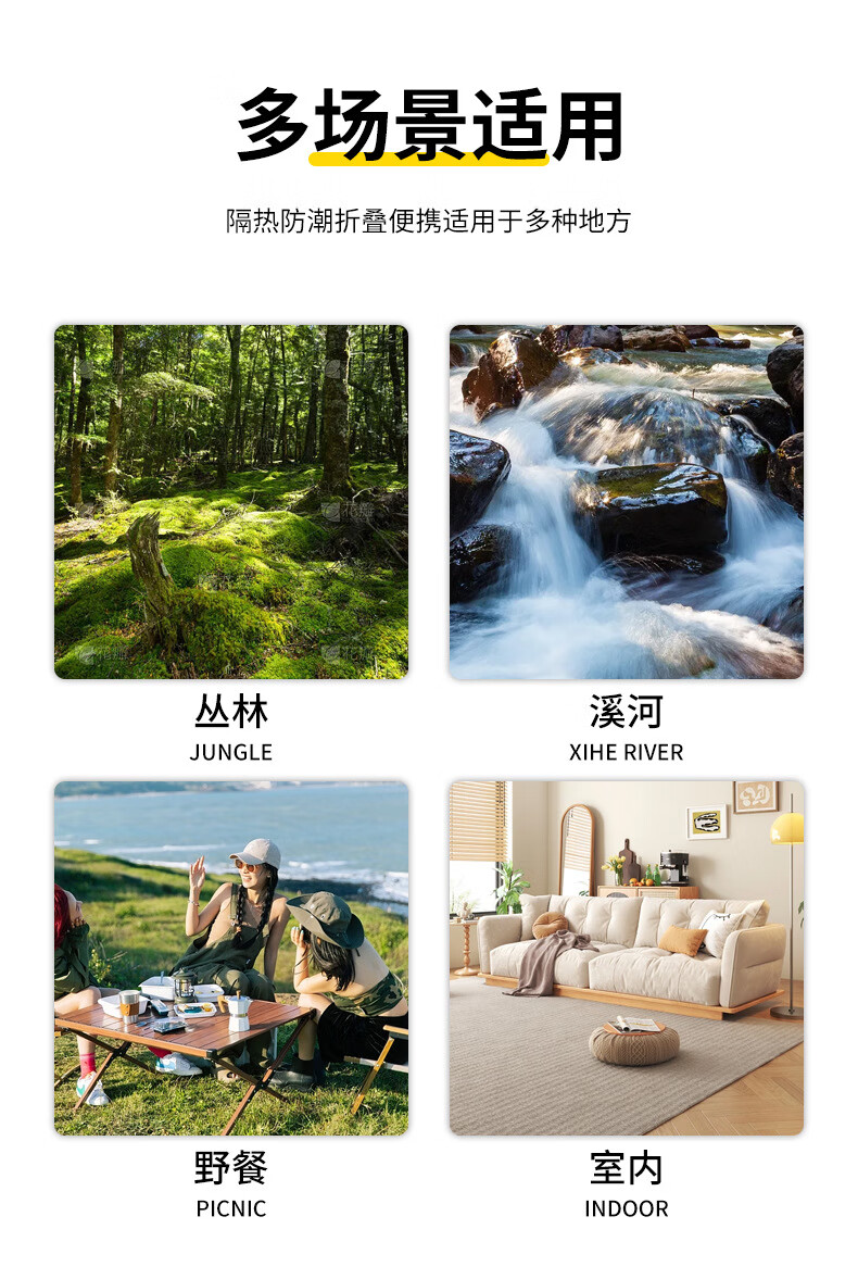 【严选百货】便携防水野餐垫防潮垫露营地垫垫子加厚户外沙滩旅行 黑色尺寸【32*31cm】