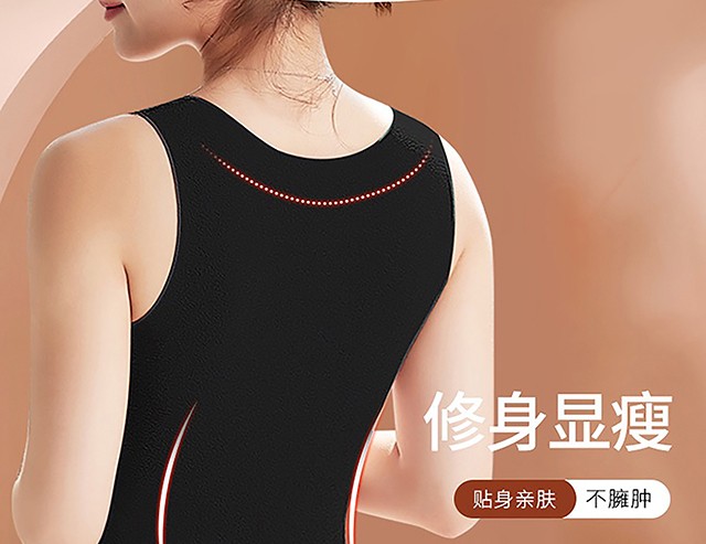 甜蜜邂逅保暖背心女士无痕加绒加厚双面磨毛打底衫艾草贴片无袖上衣大码 黑色 大码(130-160斤)