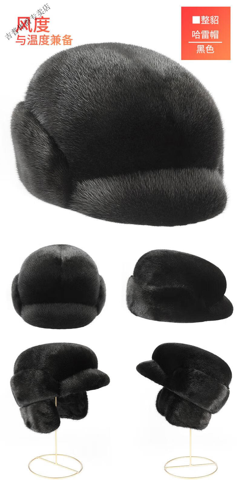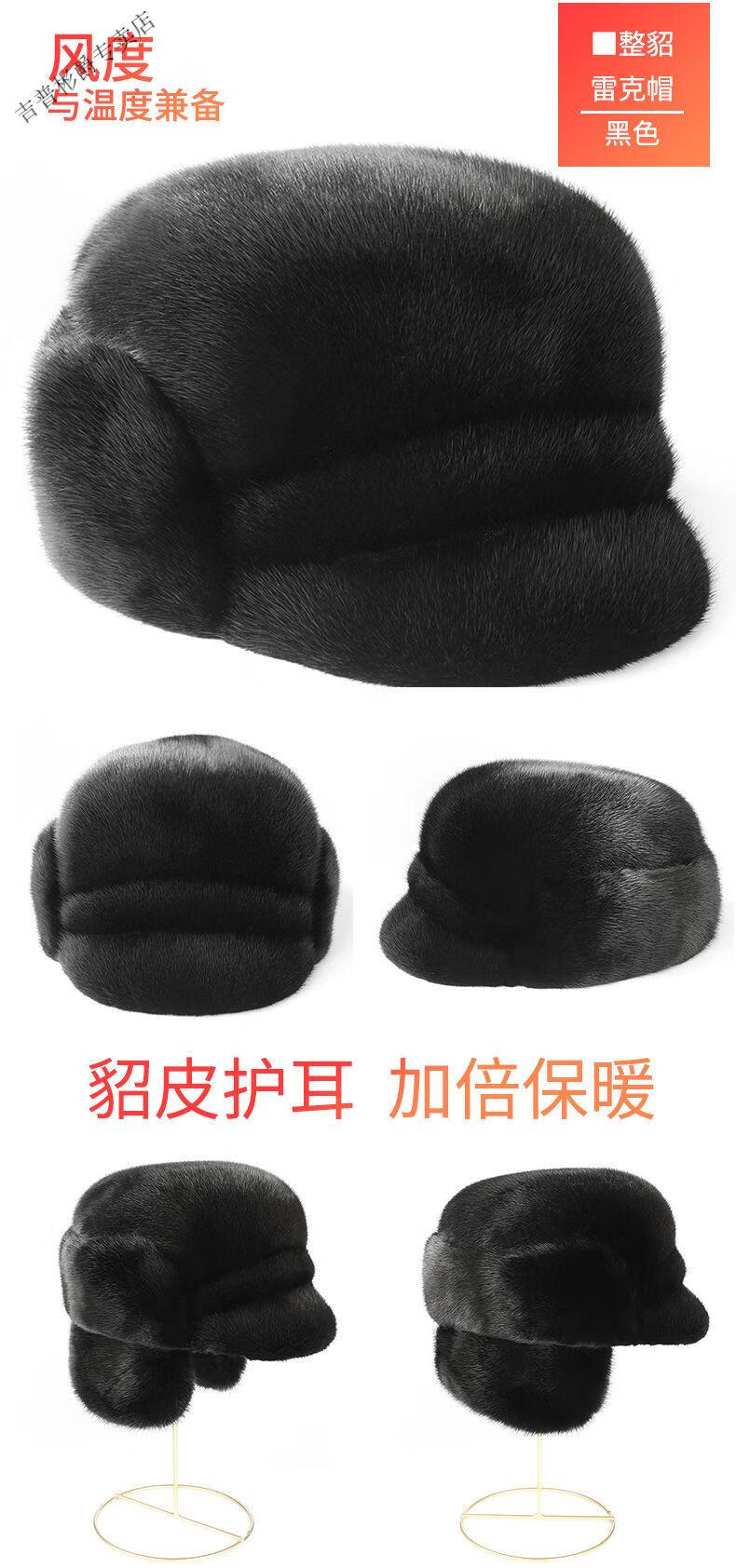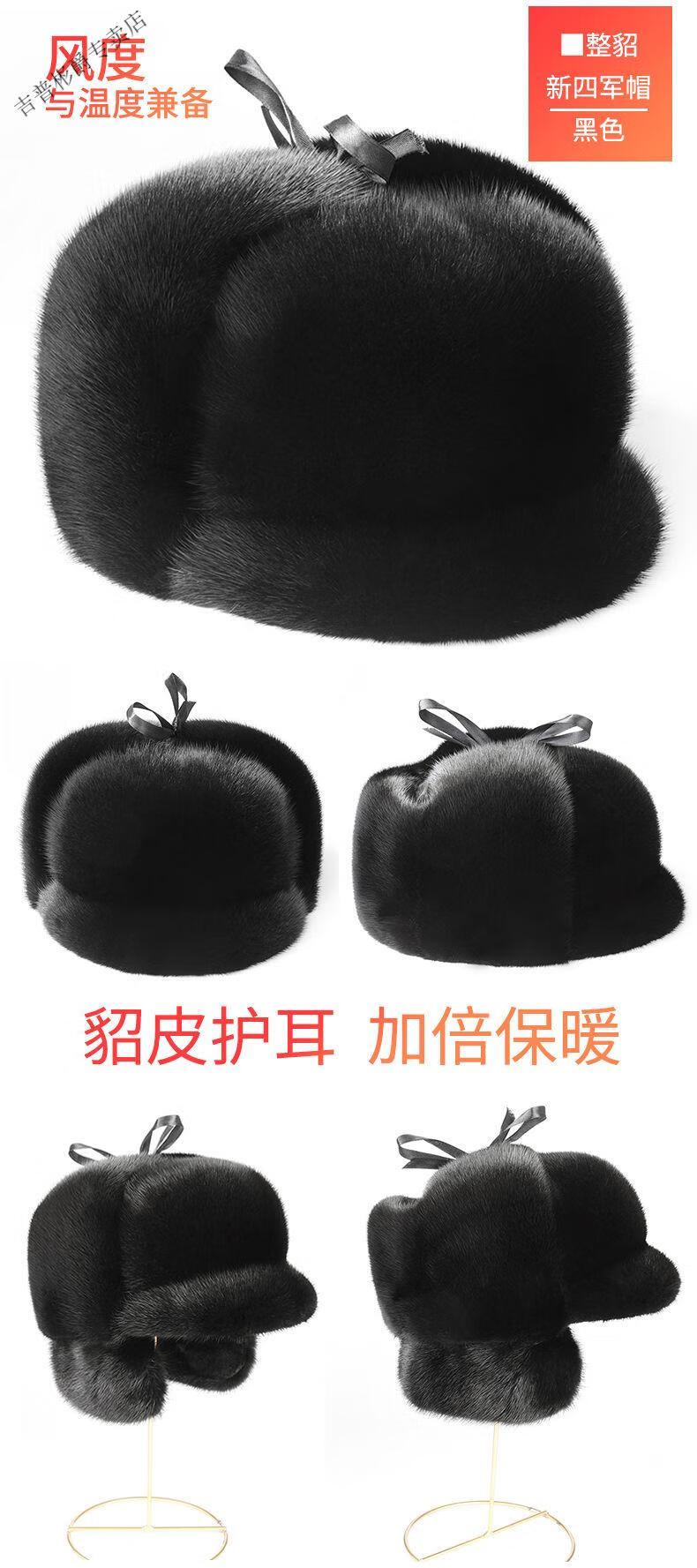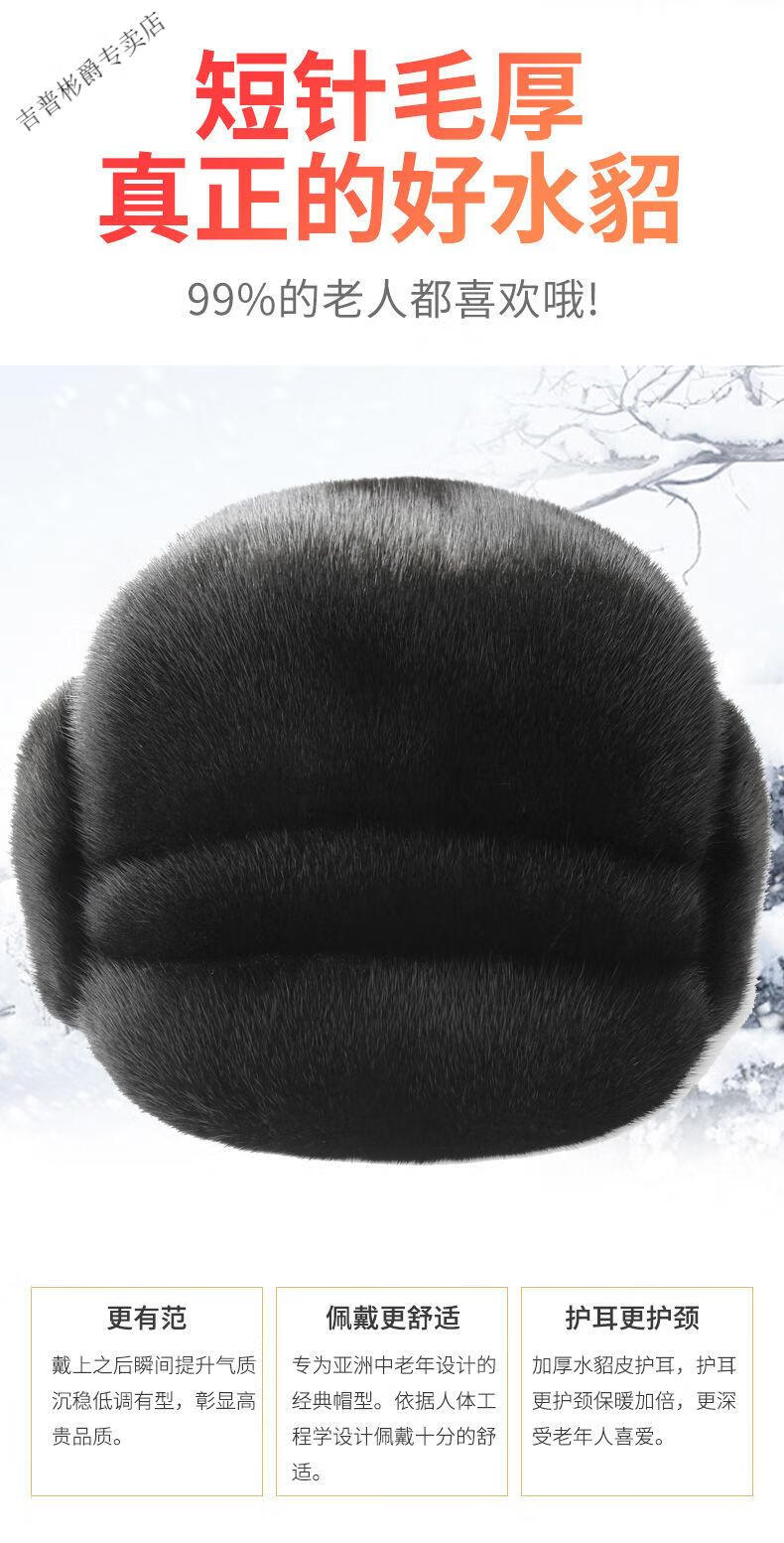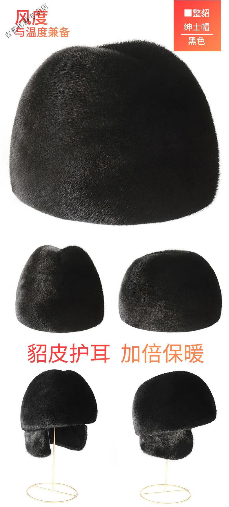 JEEP SPIRIT貂皮帽子男士中老年冬天老头帽秋冬季整貂护耳保暖水貂绒皮草棉帽 雷克黑色+(貂皮护耳) L(58-60cm)