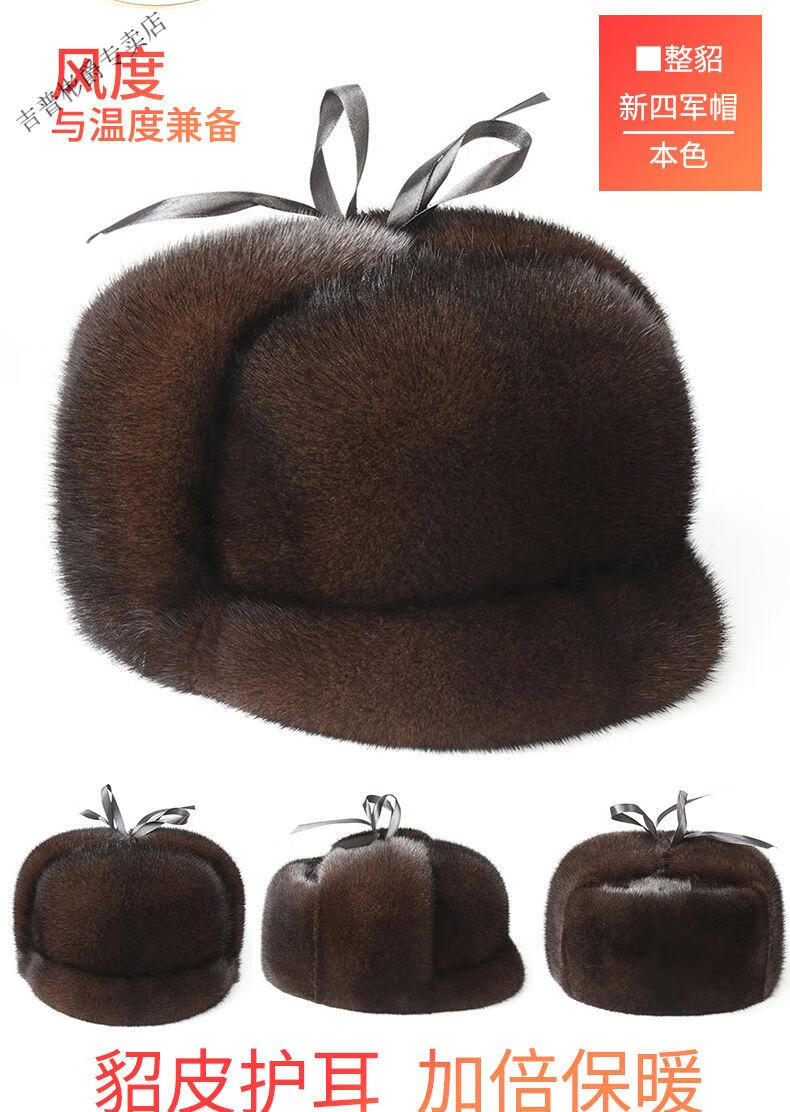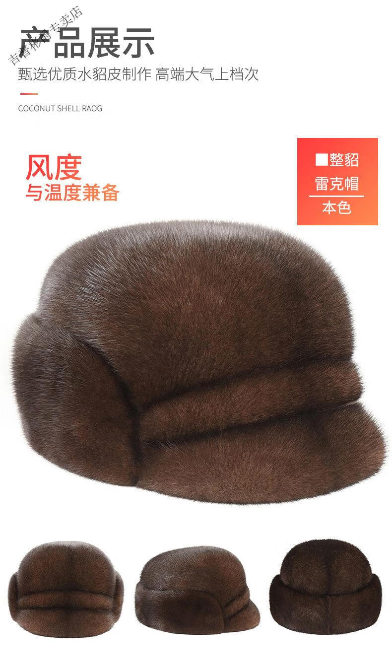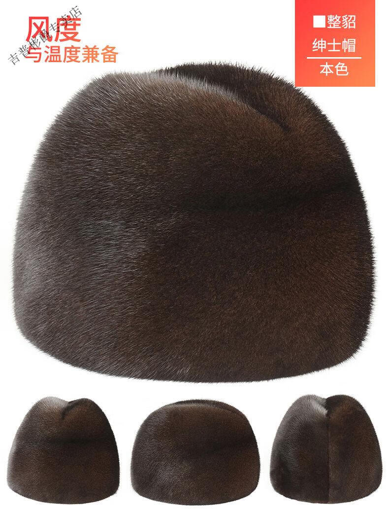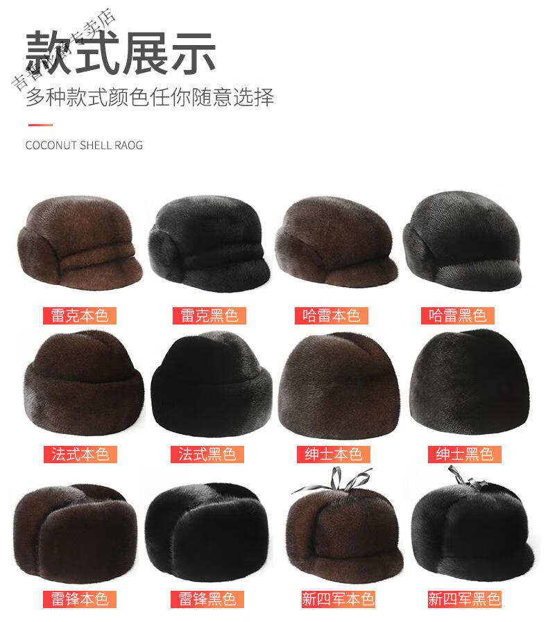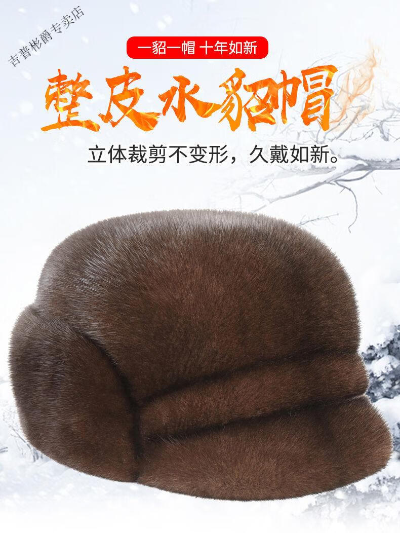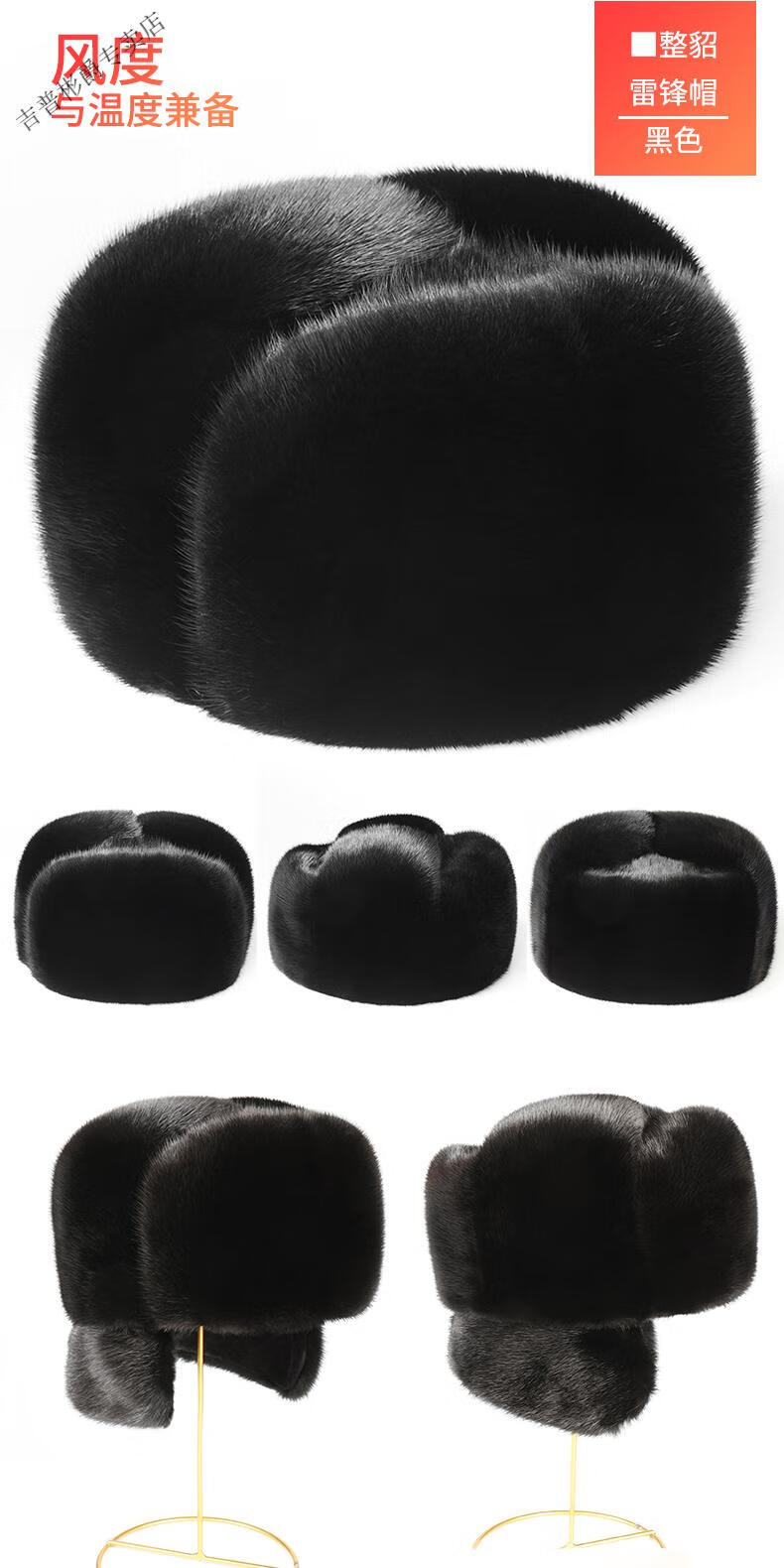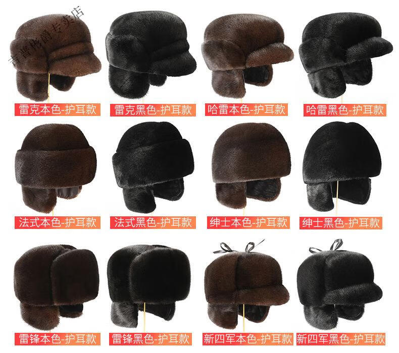JEEP SPIRIT貂皮帽子男士中老年冬天老头帽秋冬季整貂护耳保暖水貂绒皮草棉帽 雷克黑色+(貂皮护耳) L(58-60cm)