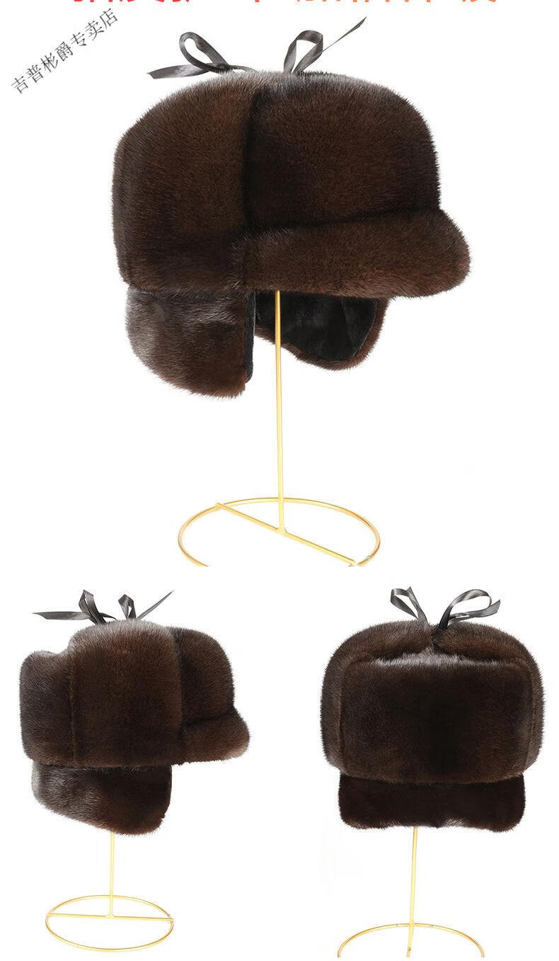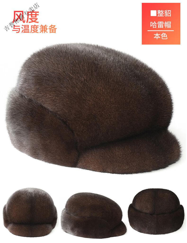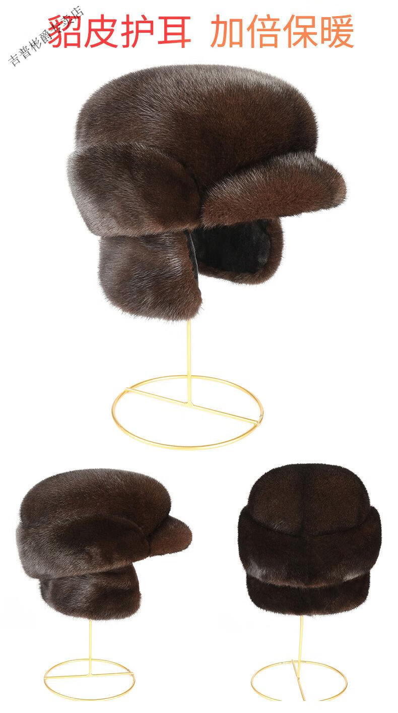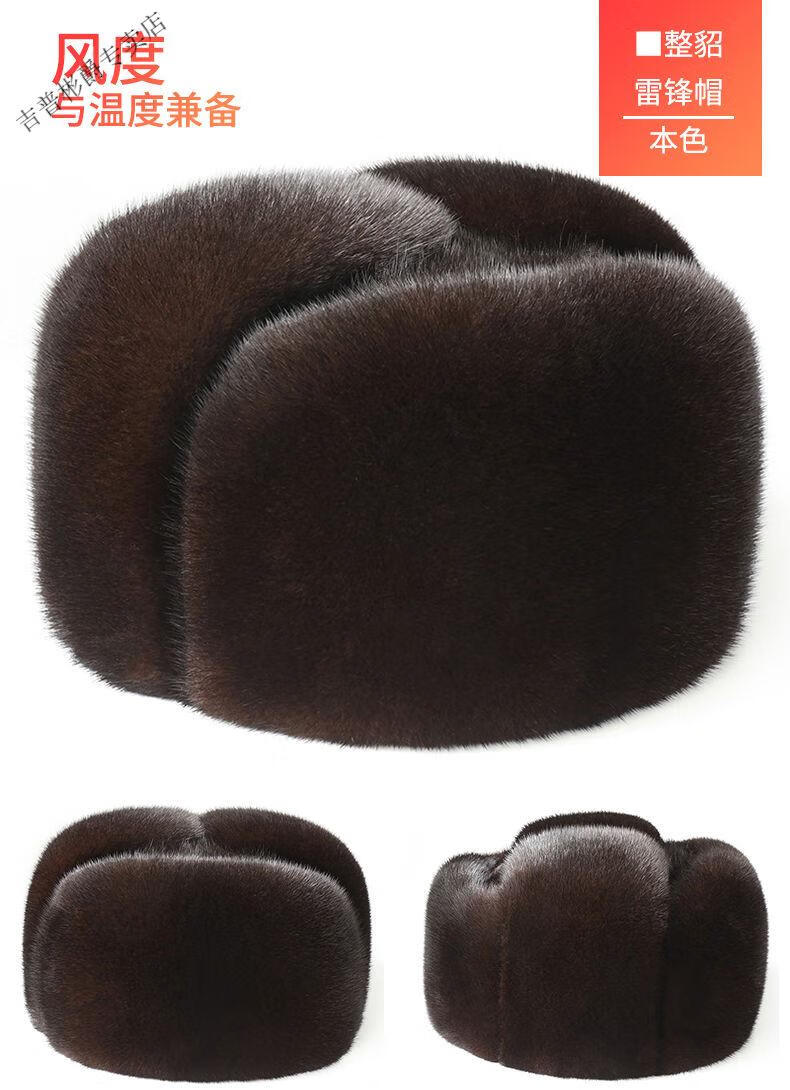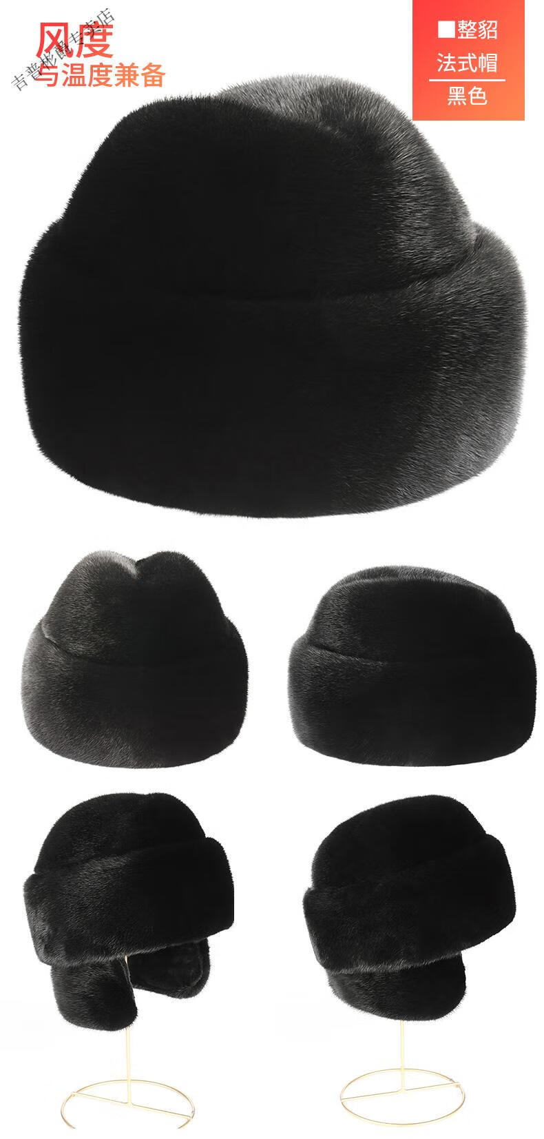 JEEP SPIRIT貂皮帽子男士中老年冬天老头帽秋冬季整貂护耳保暖水貂绒皮草棉帽 雷克黑色+(貂皮护耳) L(58-60cm)
