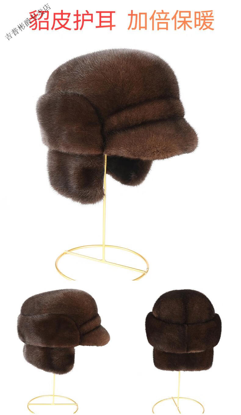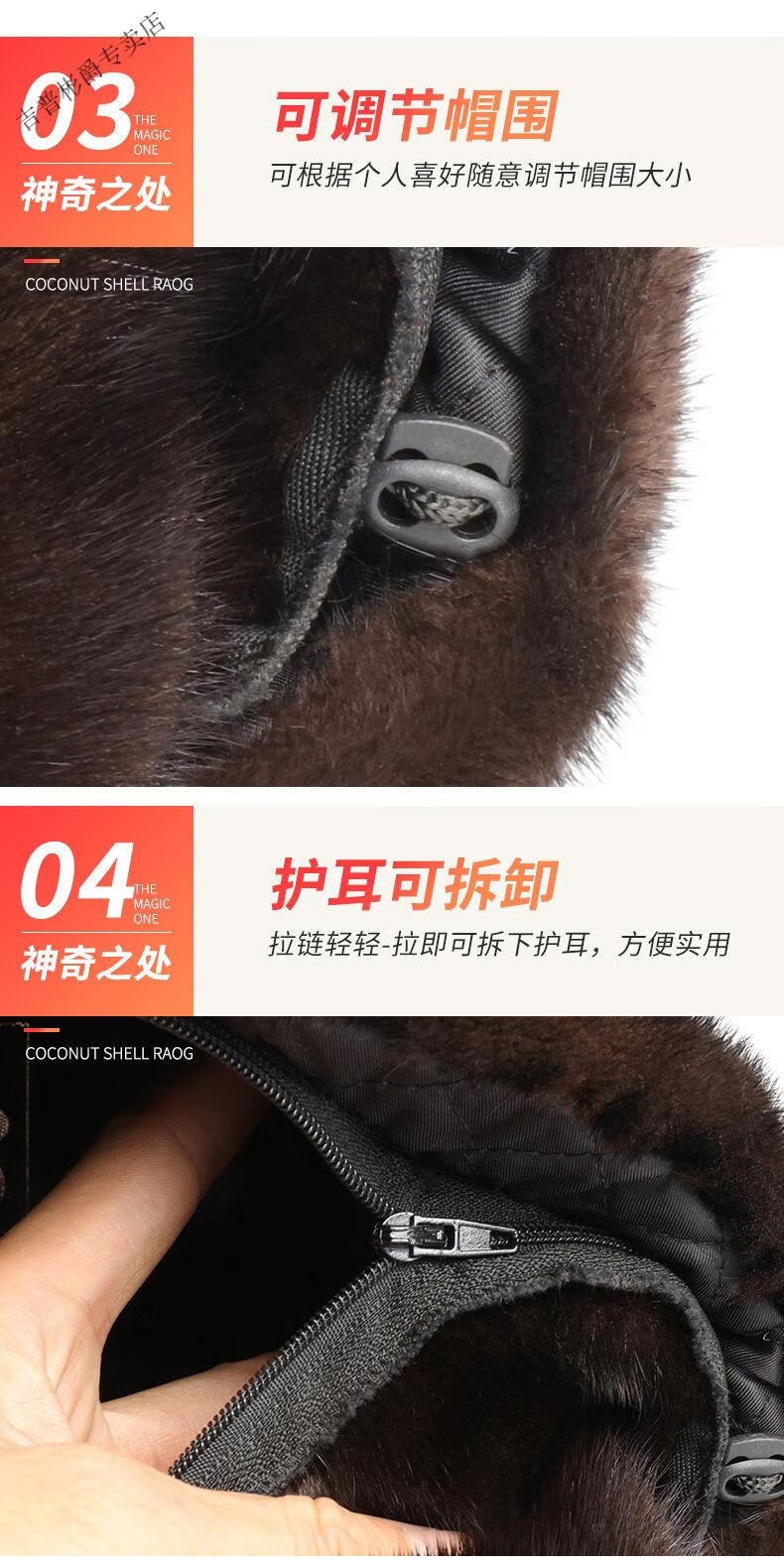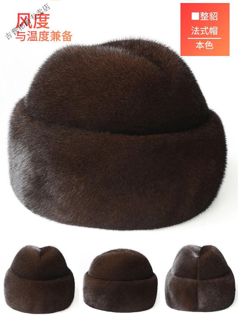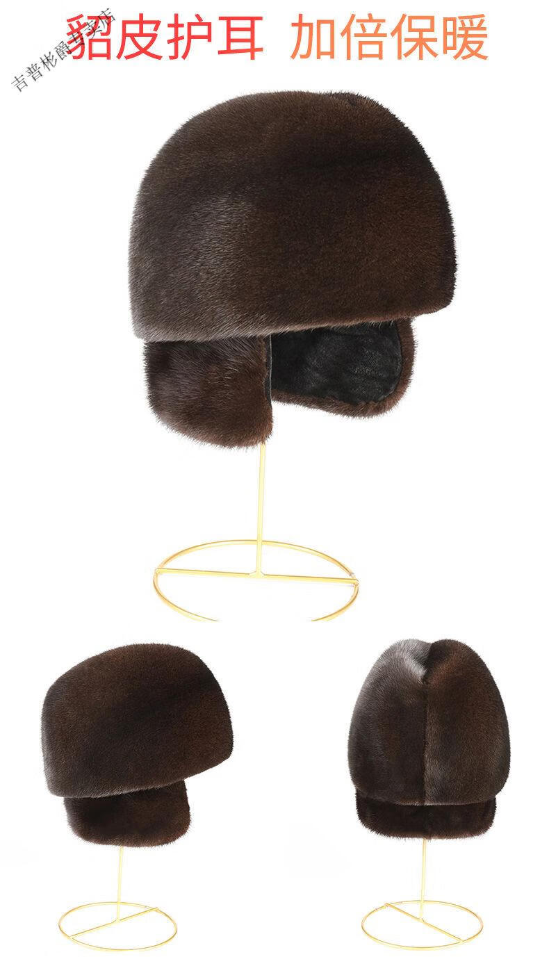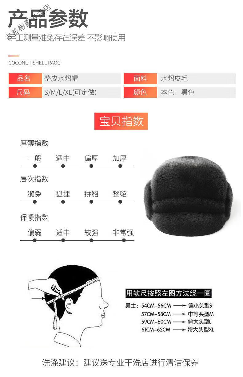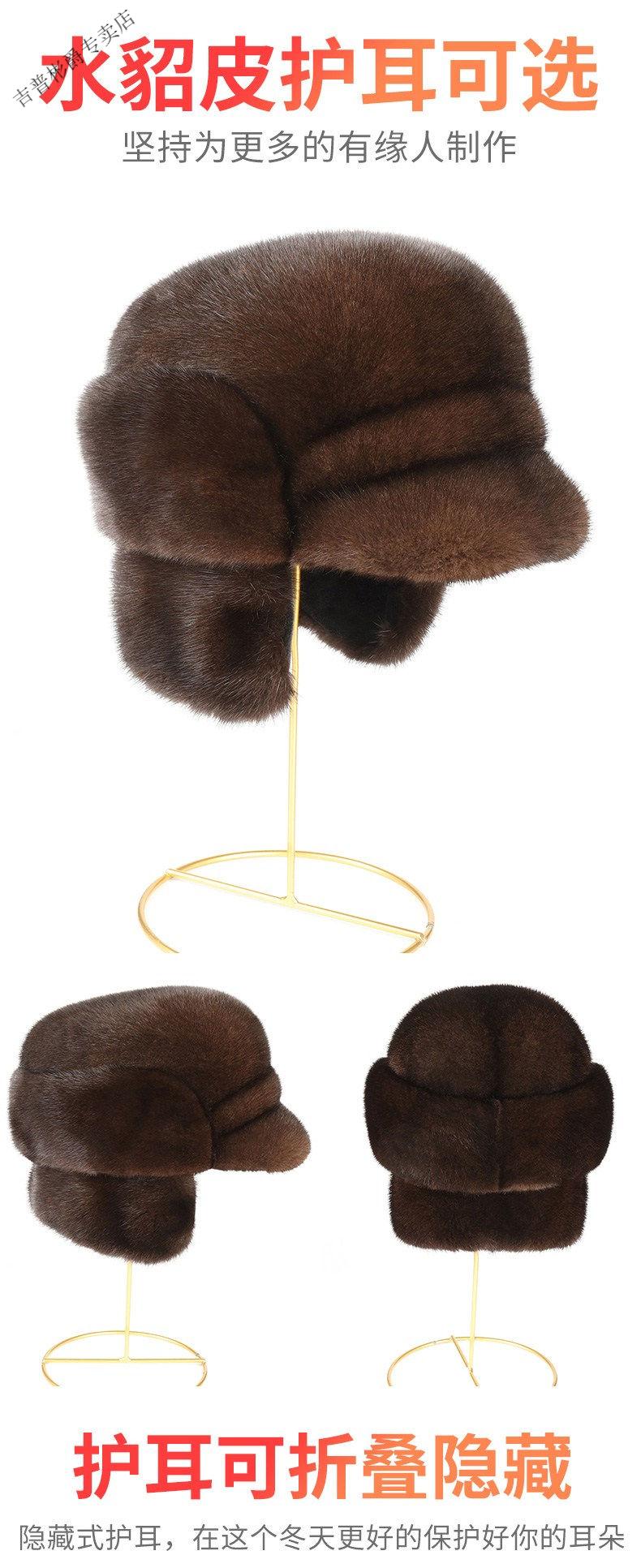 JEEP SPIRIT貂皮帽子男士中老年冬天老头帽秋冬季整貂护耳保暖水貂绒皮草棉帽 雷克黑色+(貂皮护耳) L(58-60cm)