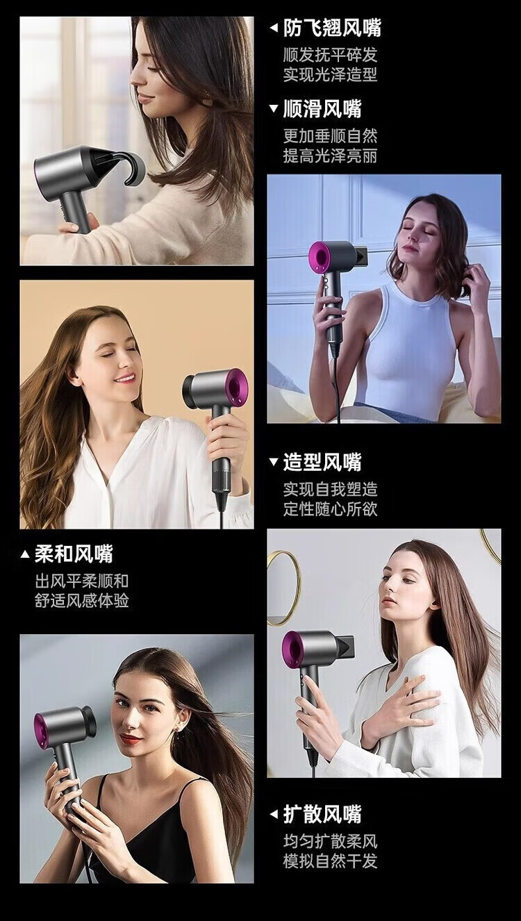 飒望德国无叶高速吹风机家用静音负离子大功率不伤发宿舍可用恒温速干大风力护发负离子七夕礼物送女友 单风嘴[玫红色]亿级负离子5秒恒温速干