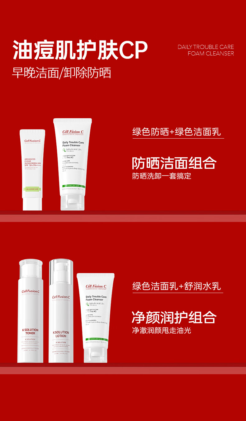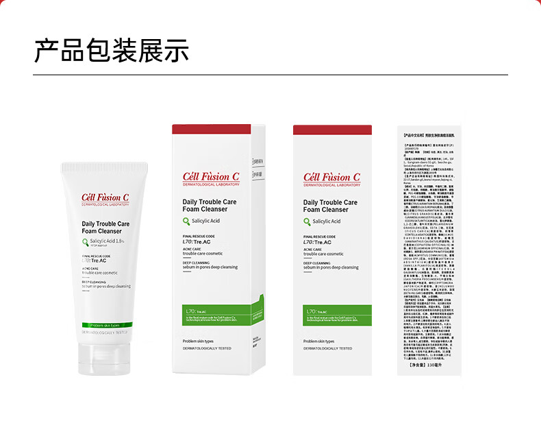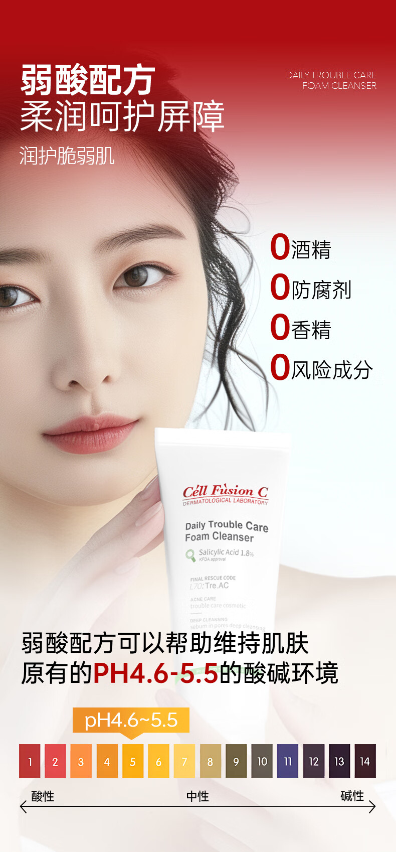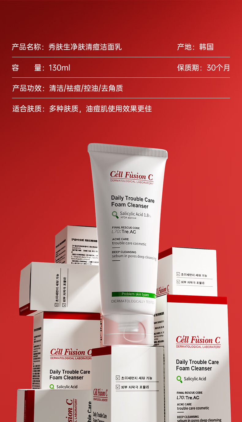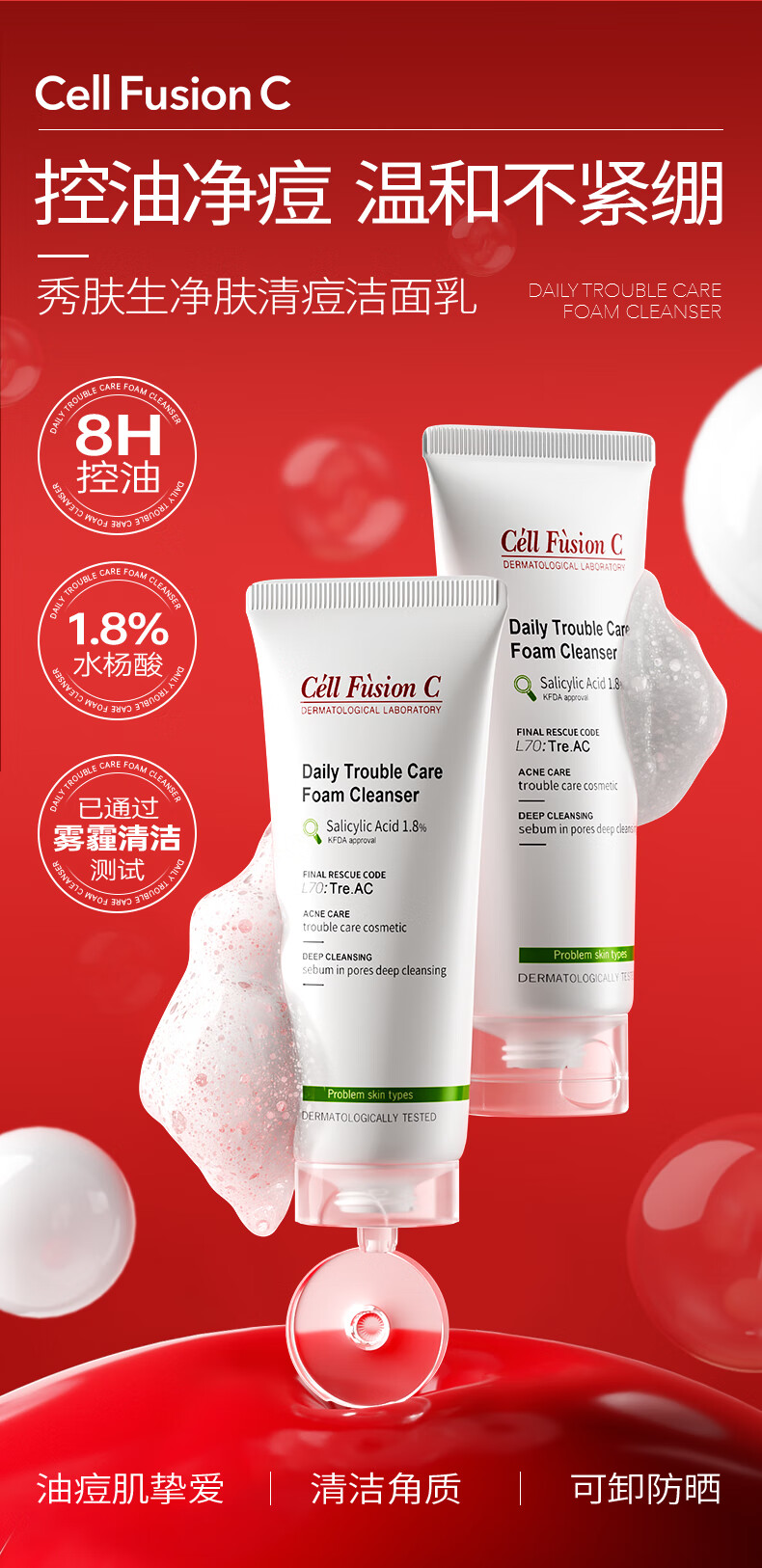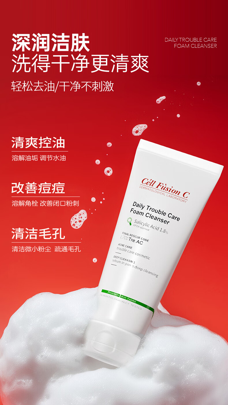 秀肤生(Cell Fusion C)洗面奶洁面乳送女朋友氨基酸护肤品水杨酸温和清洁 【控油净痘】清透洁面130ML