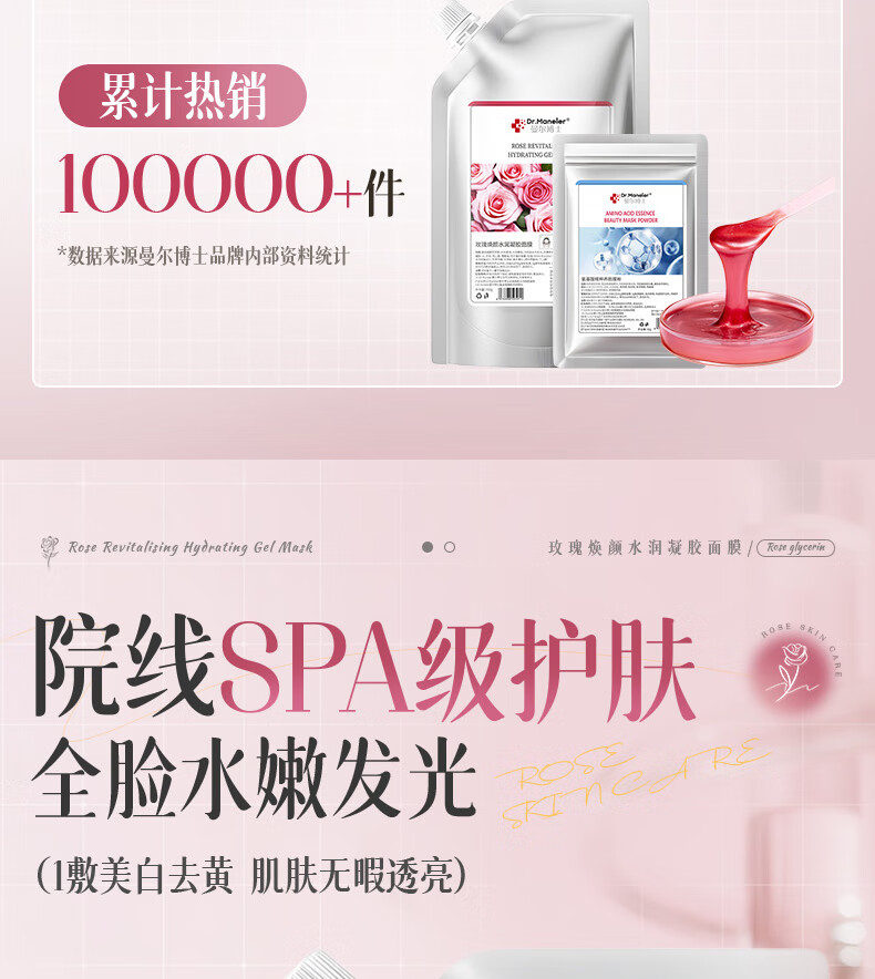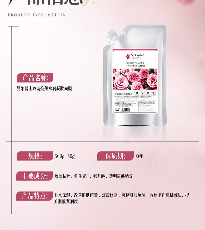 DR.MANELER 曼尔博士玫瑰软膜粉面膜补水保湿美白去黄提亮涂抹面膜清洁泥膜美容院专用 550g 【院线同款】急速收缩粗毛孔