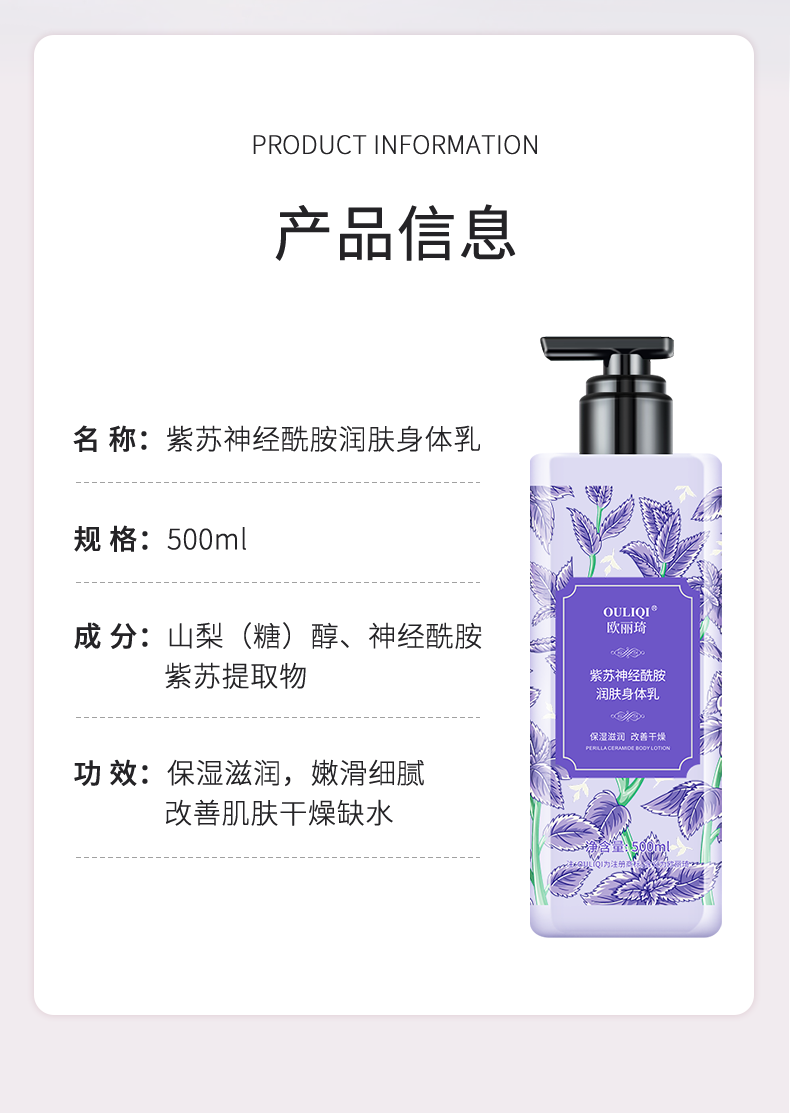 欧丽琦紫苏神经酰胺身体乳留香男女滋润保湿秋冬防干燥补水嫩肤身体霜 【拍1发2】紫苏身体乳500ml
