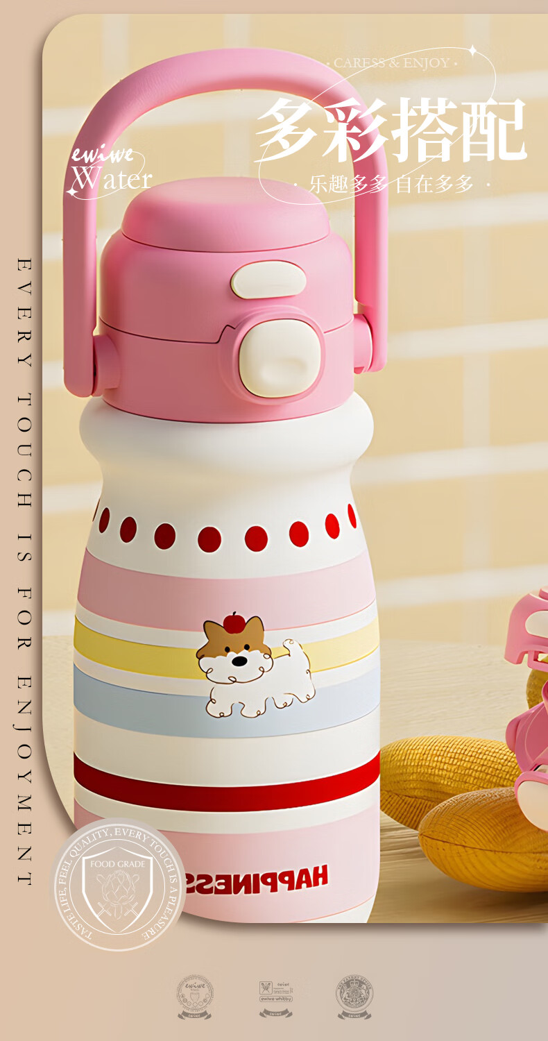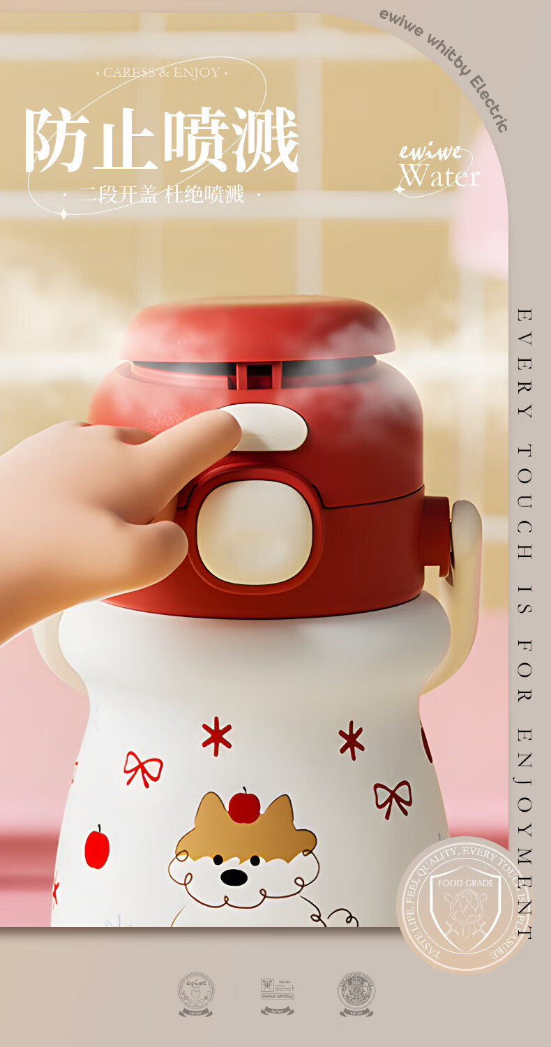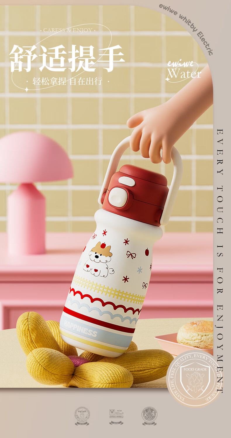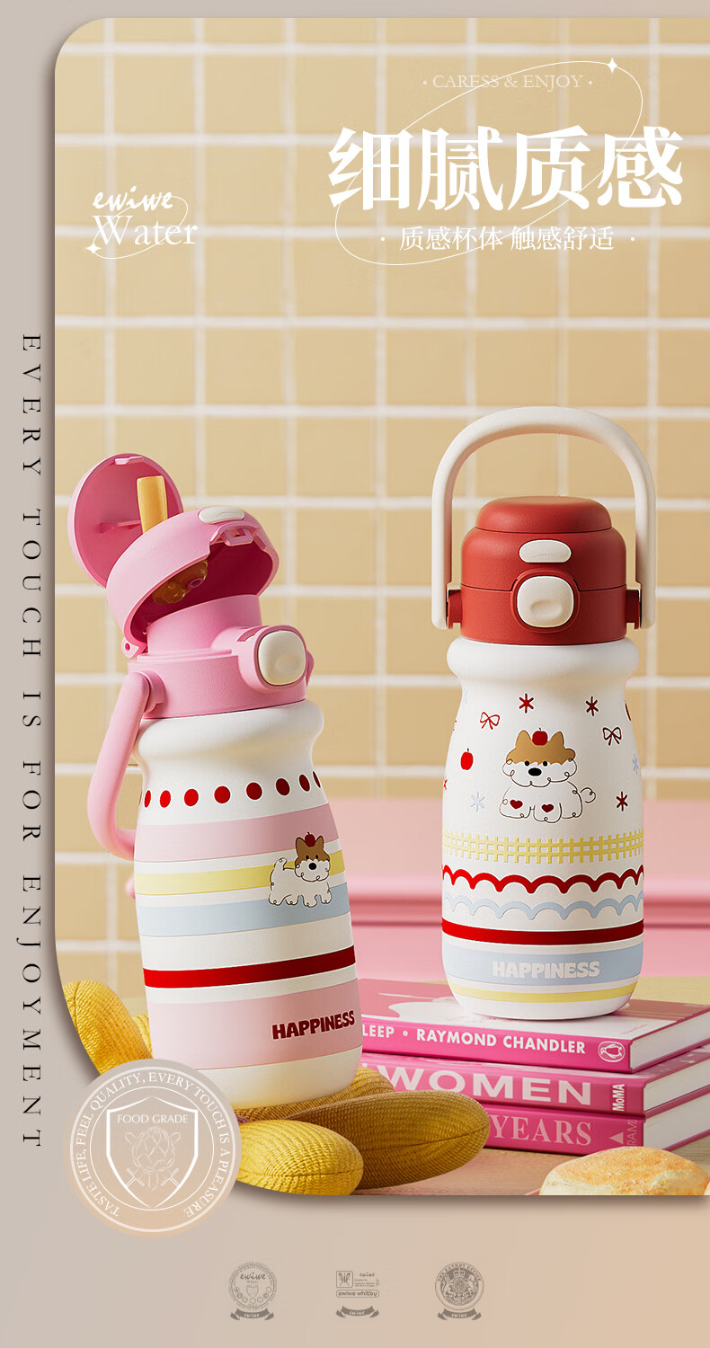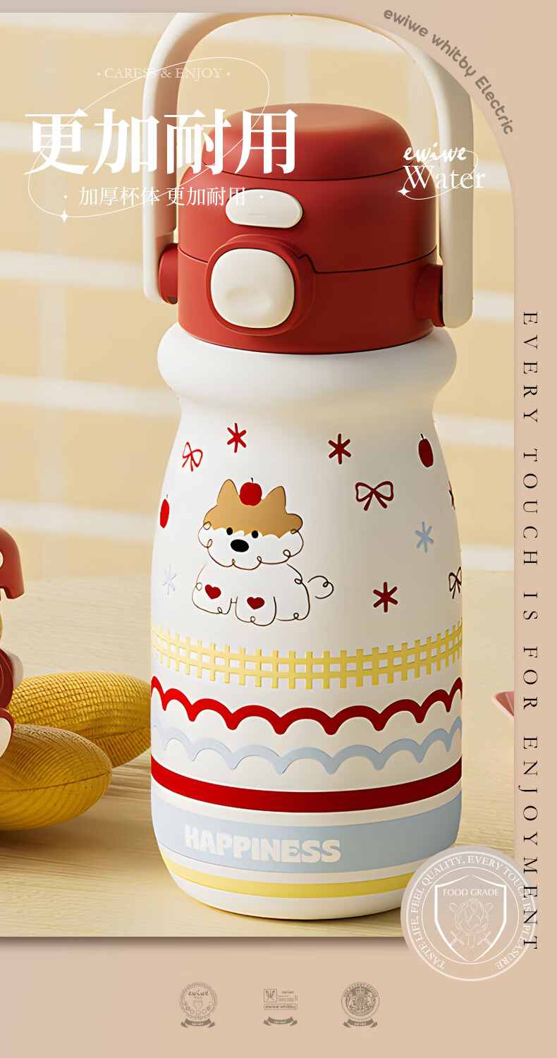 EWIWE新款卡通布拉拉保温杯男女孩防摔一杯双饮大容量便携吸管水杯 红色/食品不锈钢材质/约500ml