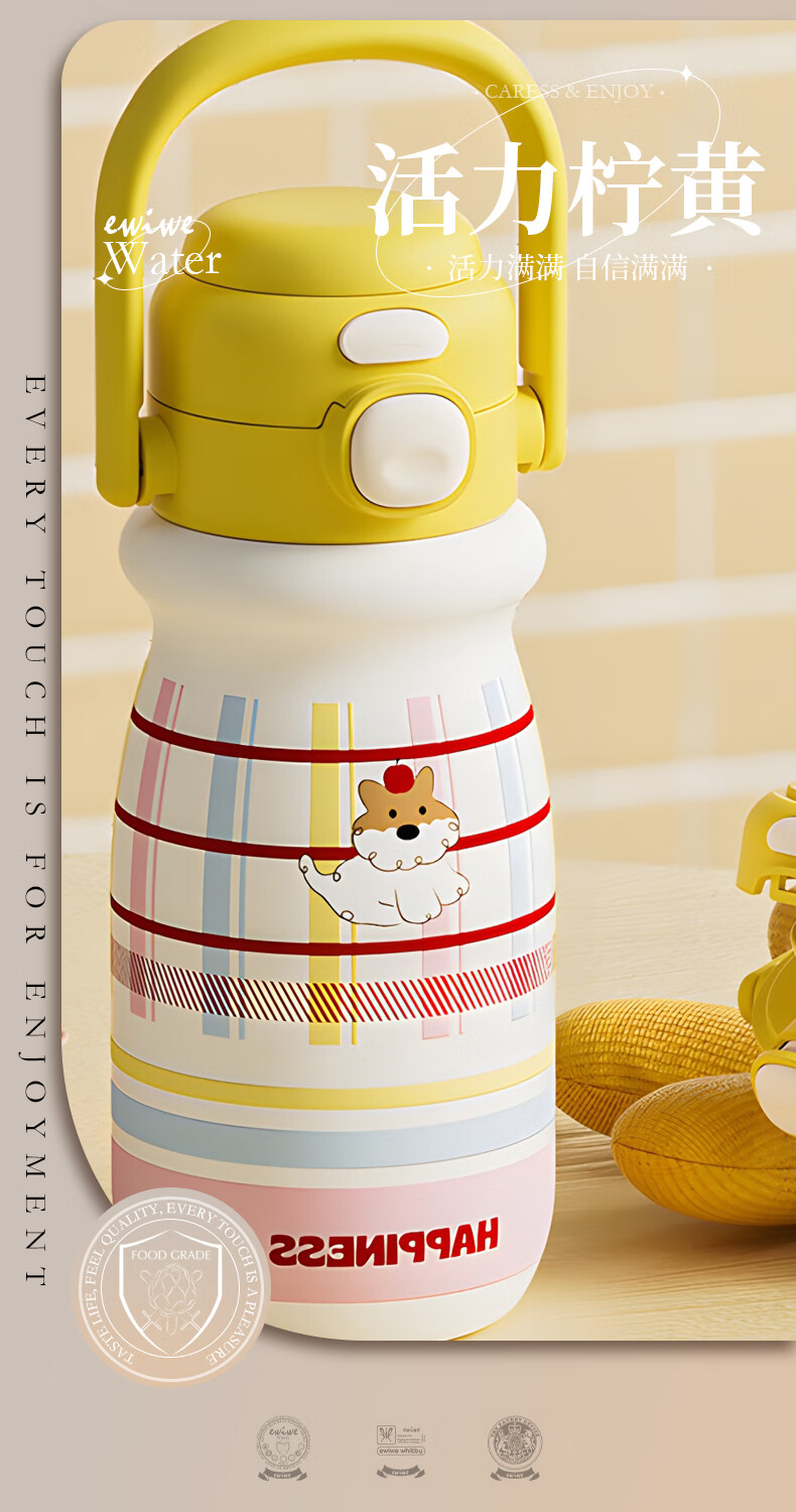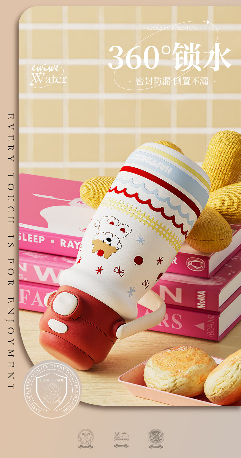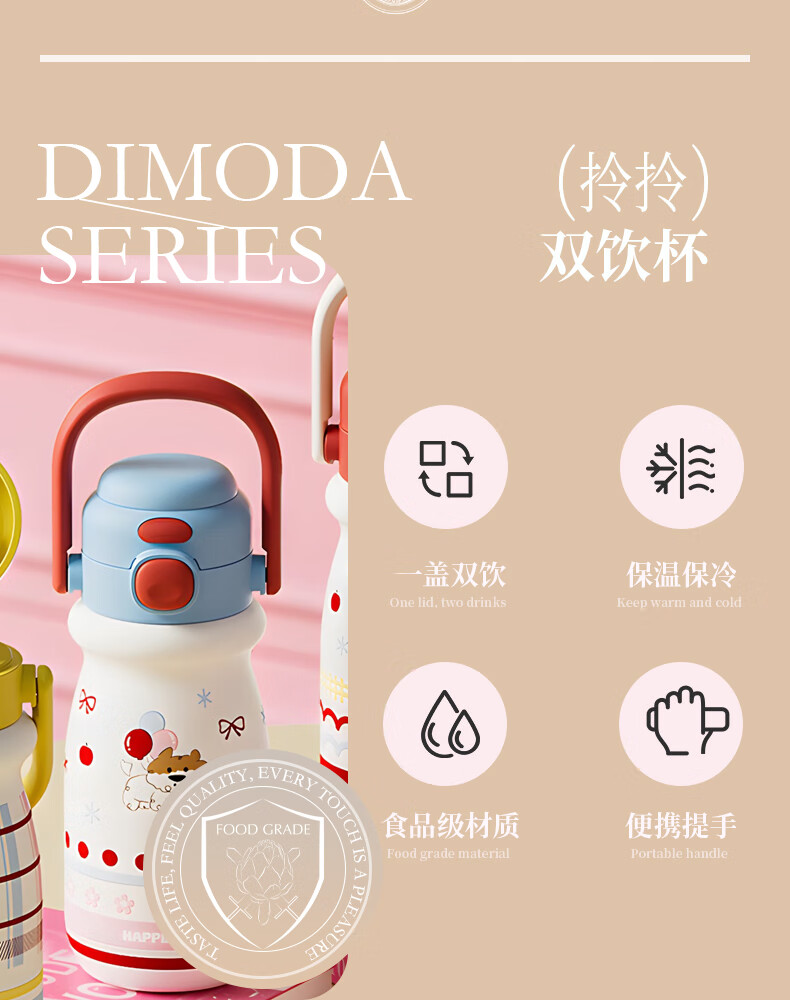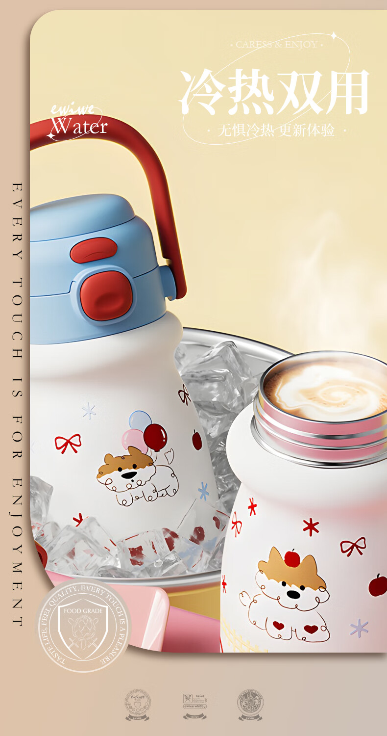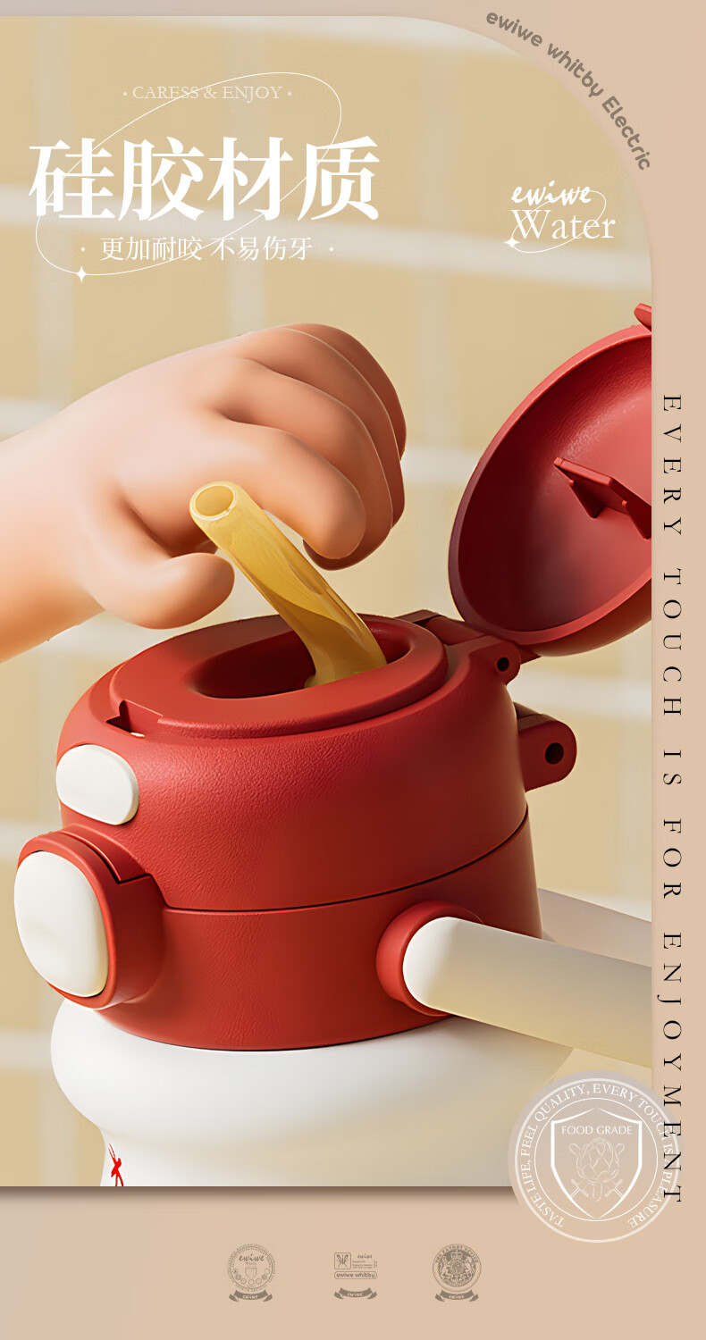 EWIWE新款卡通布拉拉保温杯男女孩防摔一杯双饮大容量便携吸管水杯 红色/食品不锈钢材质/约500ml