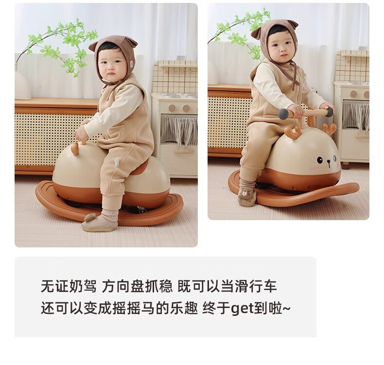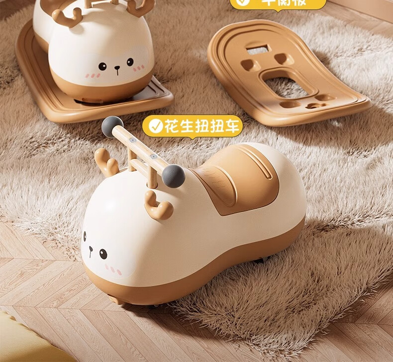 热豹 花生车扭扭车1-3岁防侧翻摇摇车婴儿童扭扭车遛娃溜溜车周岁礼物 【赠书包+头盔】 摩卡棕 +摇摇板