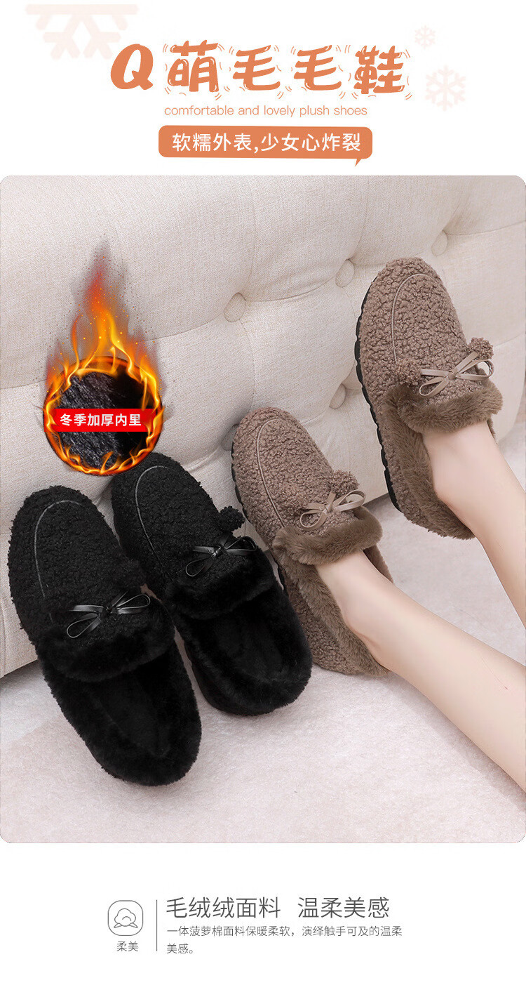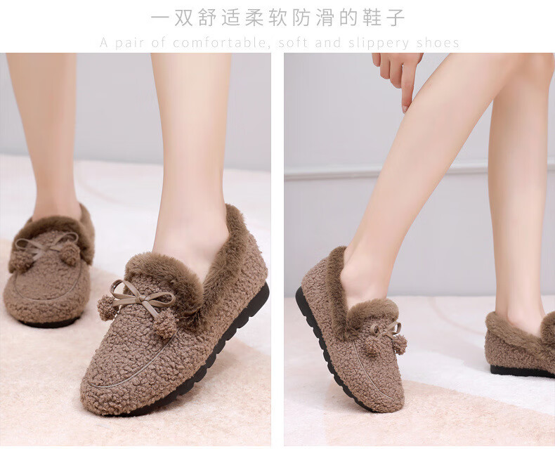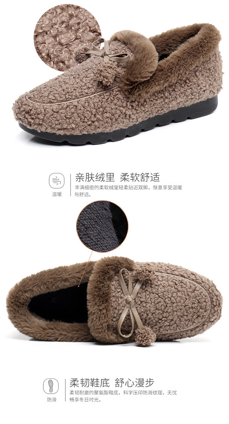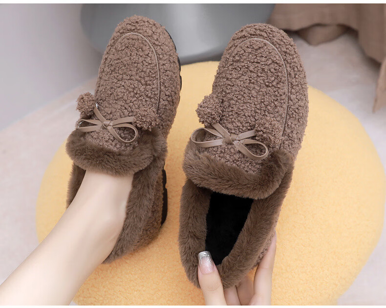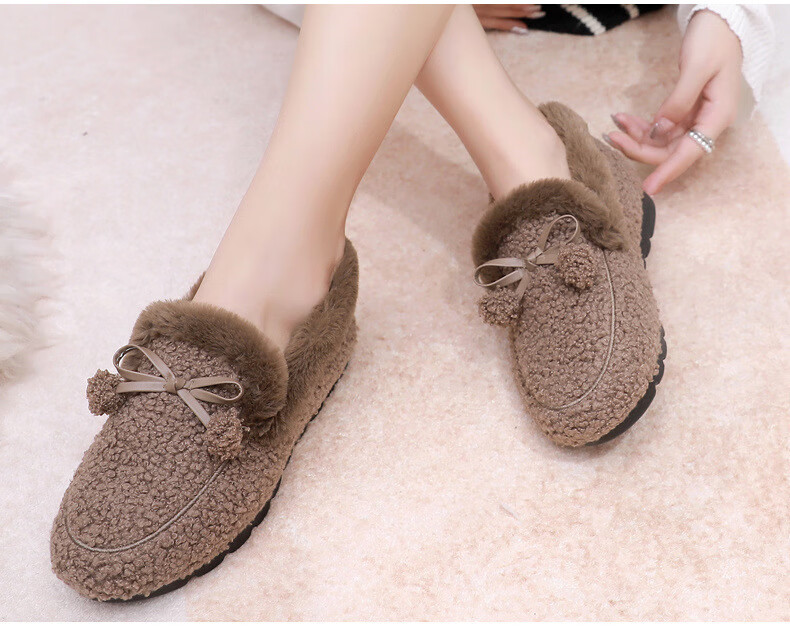 福虹辰新款豆豆鞋女秋冬外穿新款毛毛鞋加绒加厚保暖休闲棉鞋女ZZ 毛球豆豆鞋-咖色 39 偏小一码