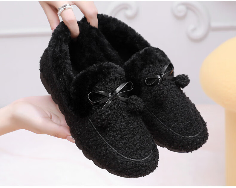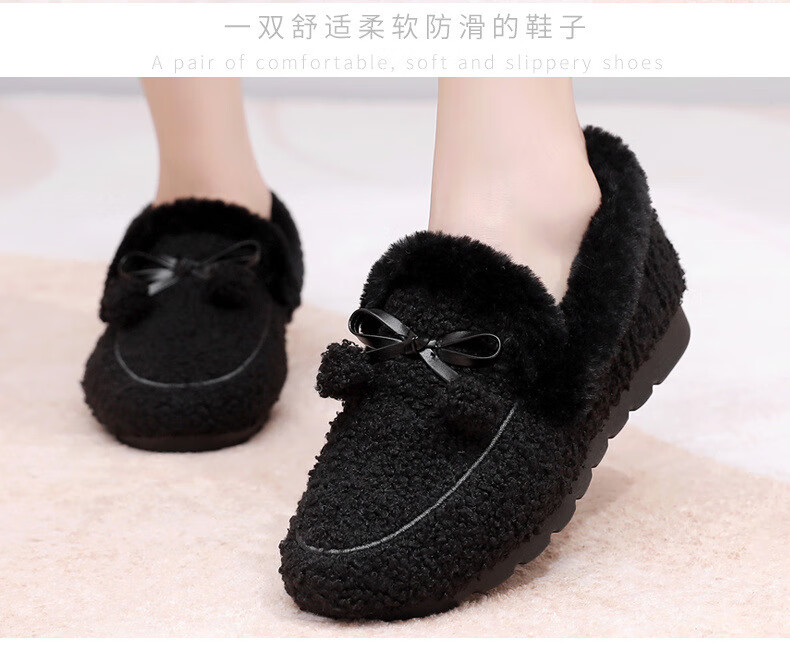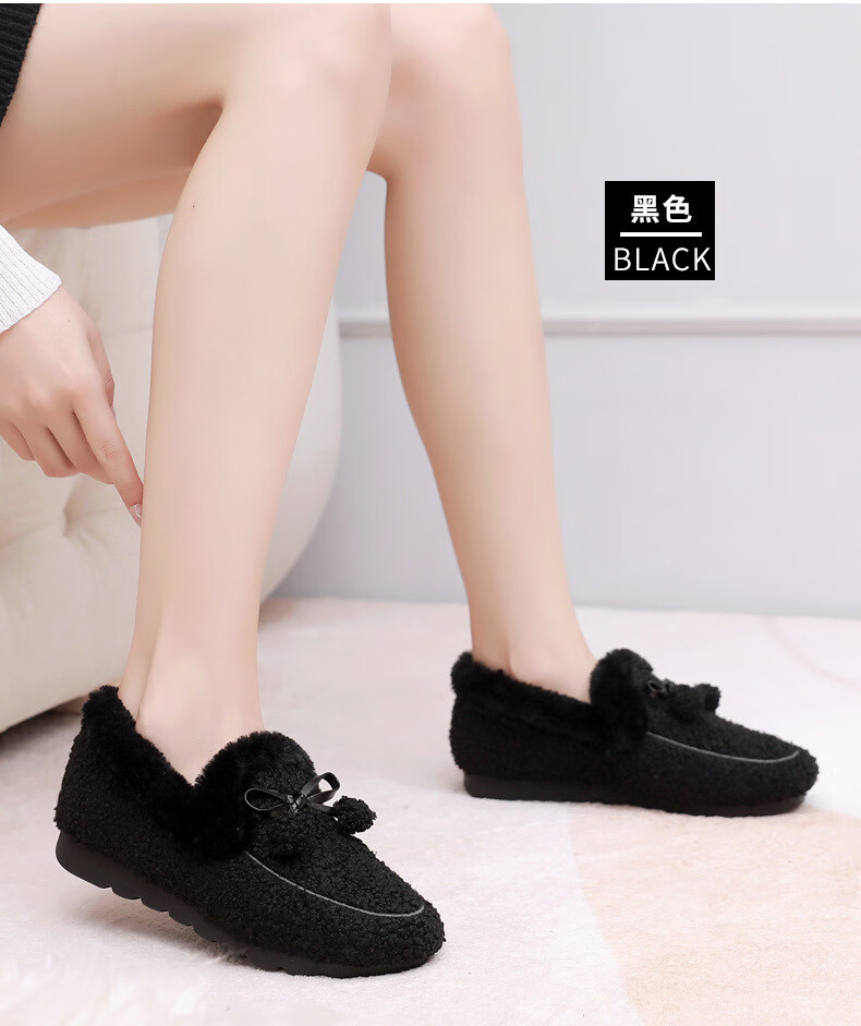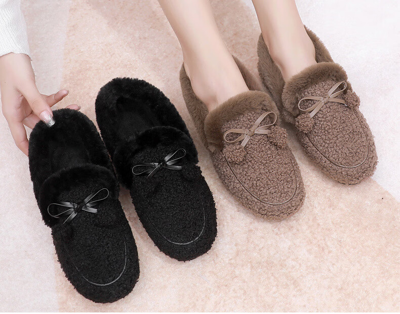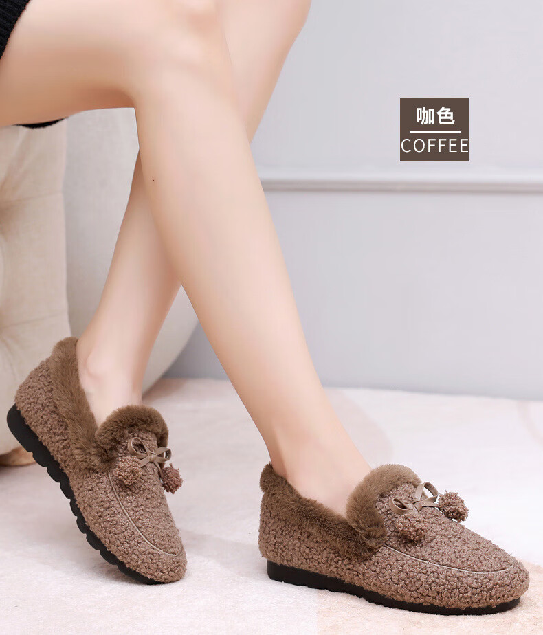 福虹辰新款豆豆鞋女秋冬外穿新款毛毛鞋加绒加厚保暖休闲棉鞋女ZZ 毛球豆豆鞋-咖色 39 偏小一码