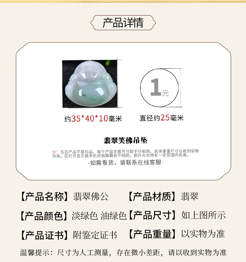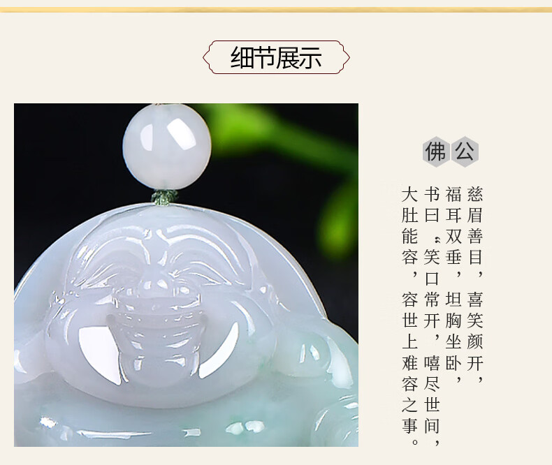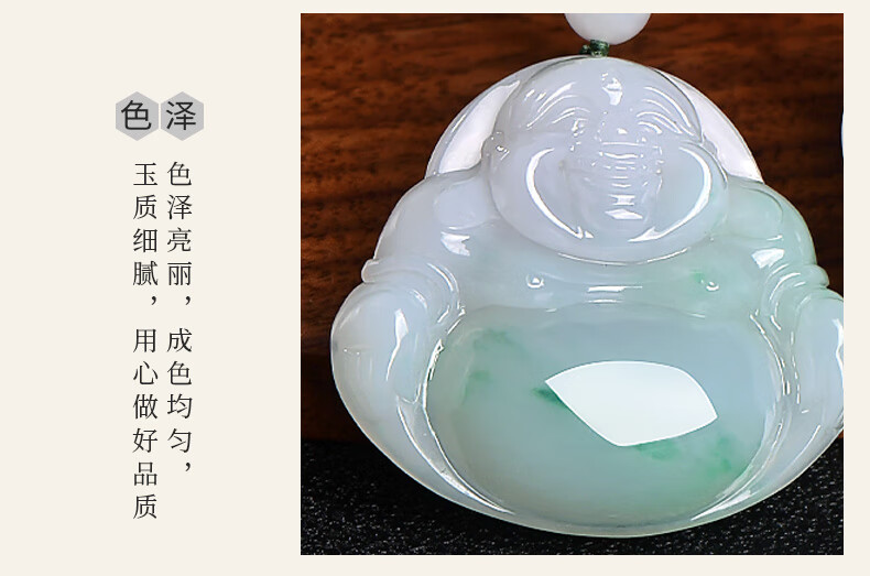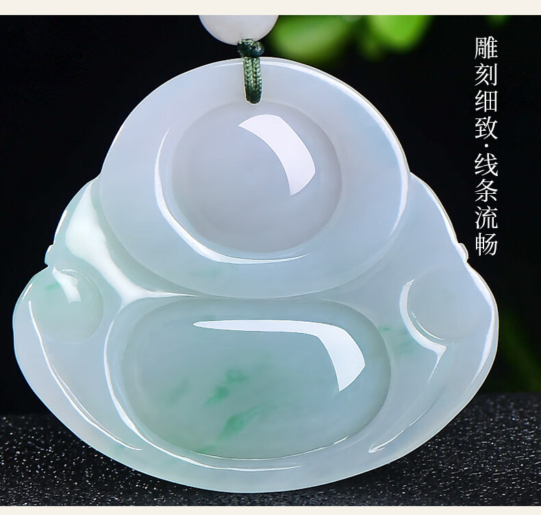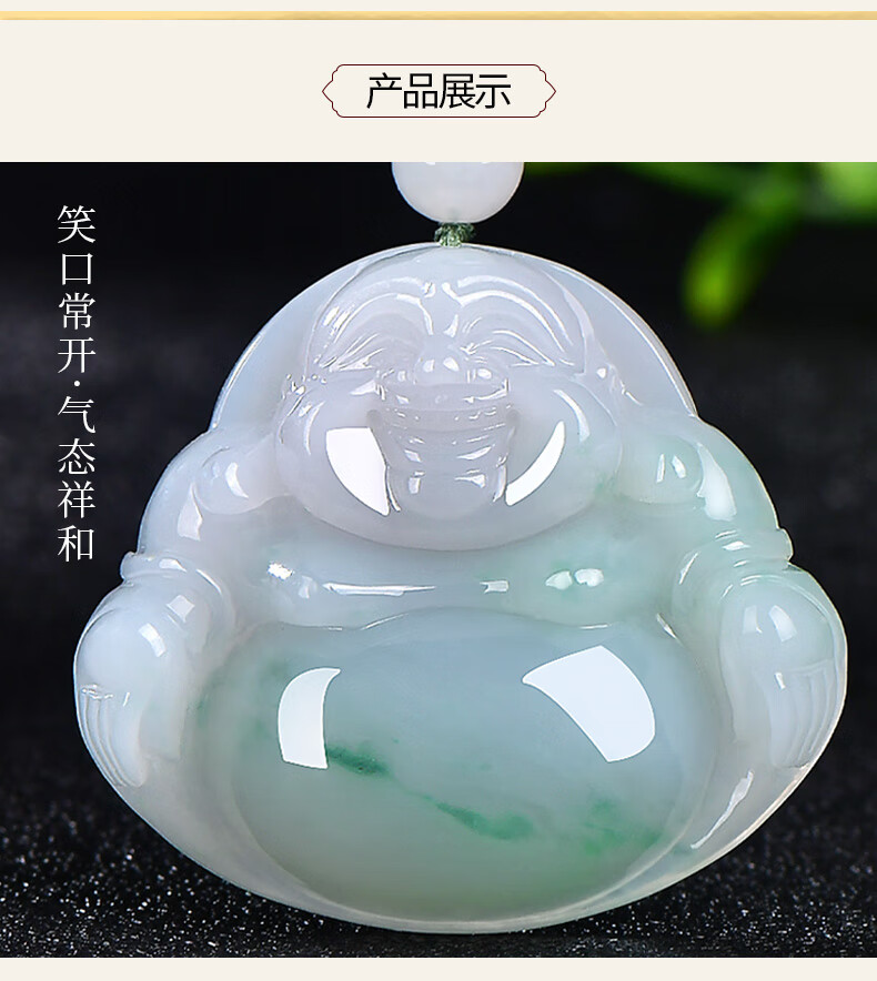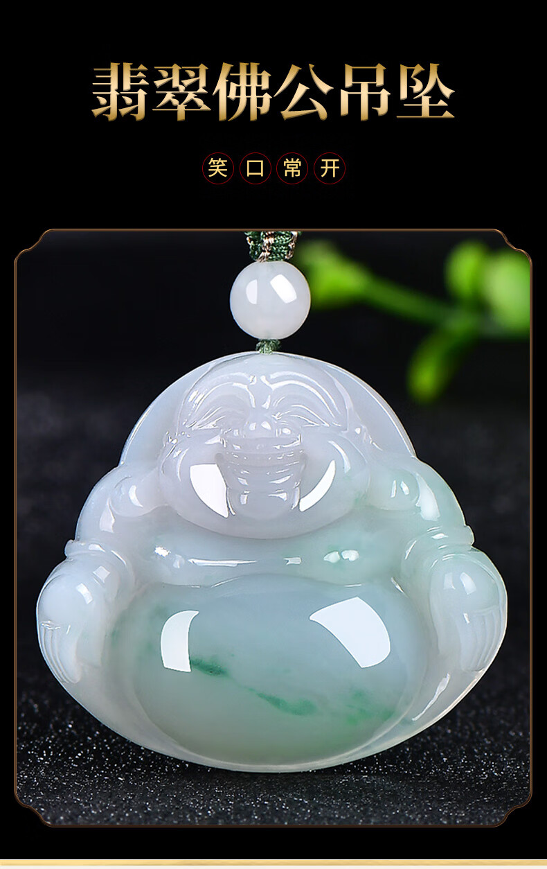 可玉可求翡翠玉佛公吊坠 女款冰飘绿大肚弥勒佛玉佩 玉石佛像挂件 亲朋好友礼物