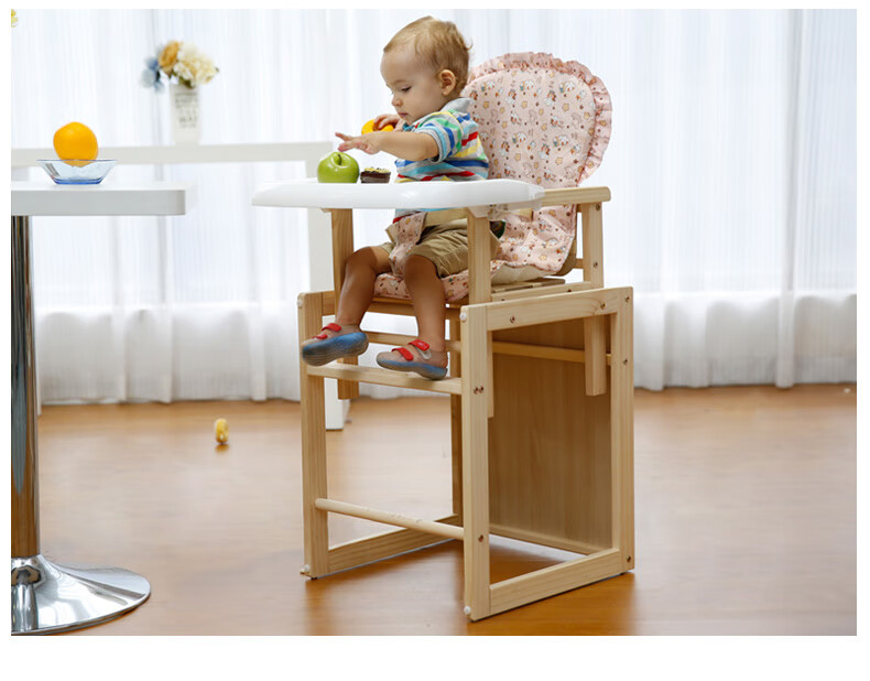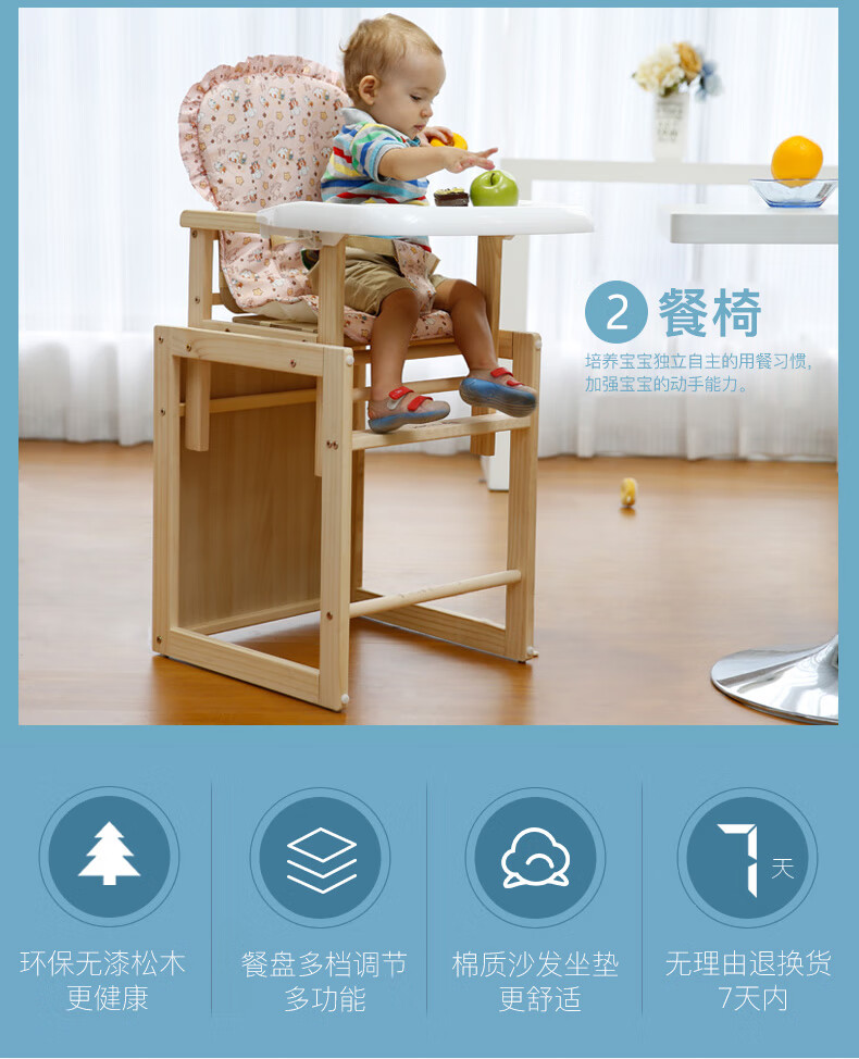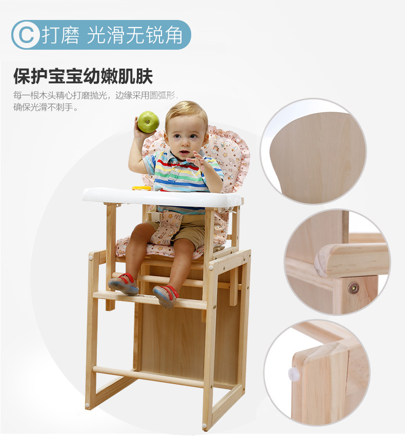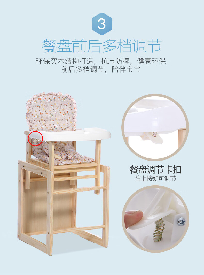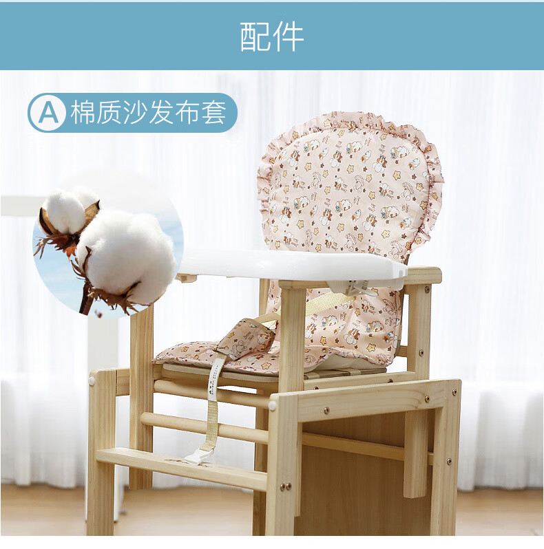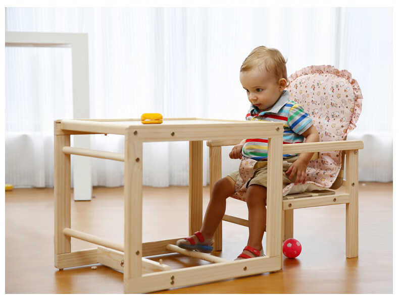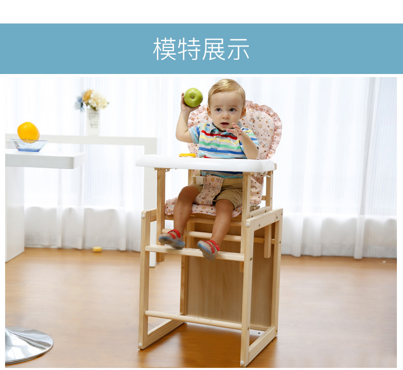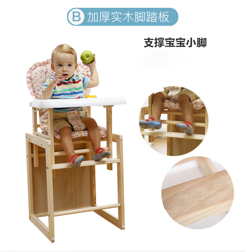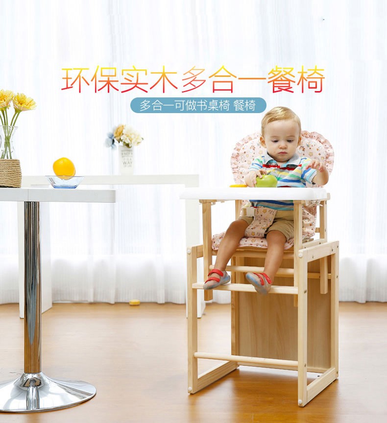 宝贝兔 宝宝餐椅实木多功能儿童餐椅婴儿吃饭座椅便携式新生儿餐桌椅 原木色五合一小马