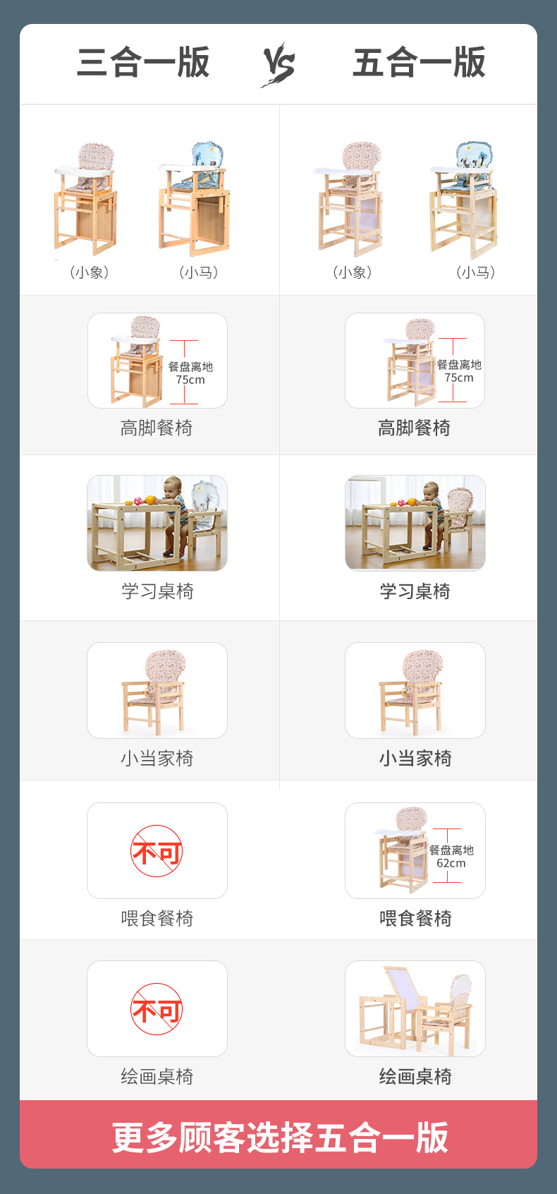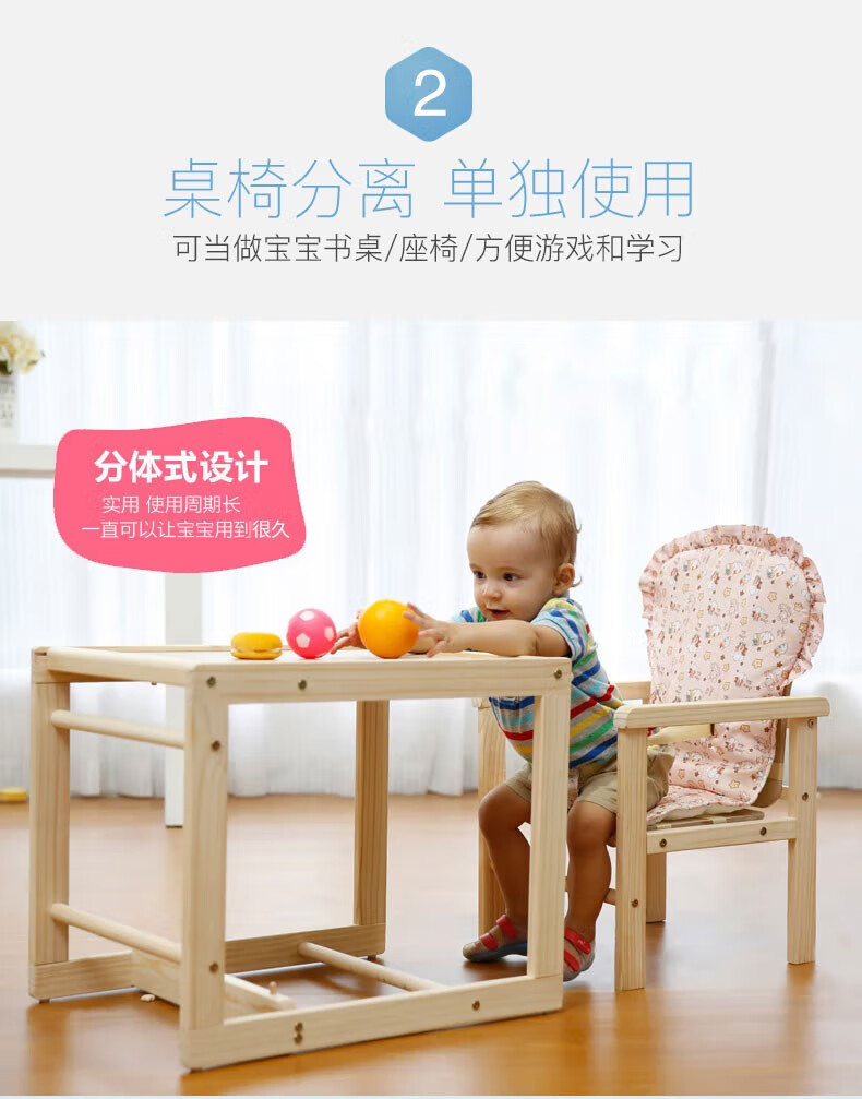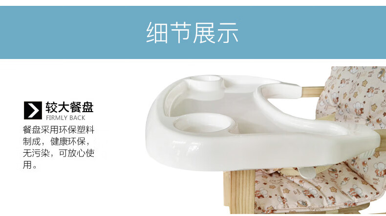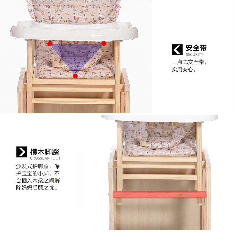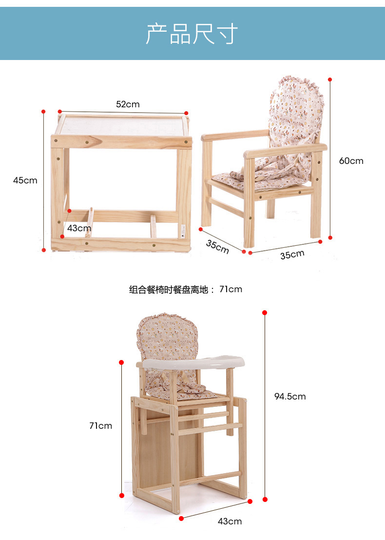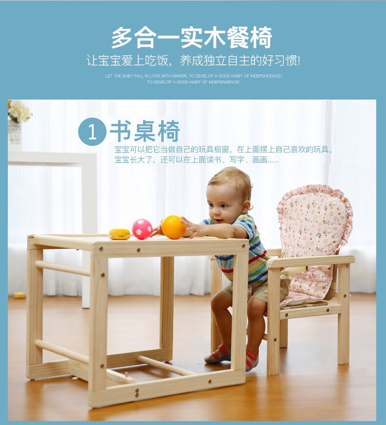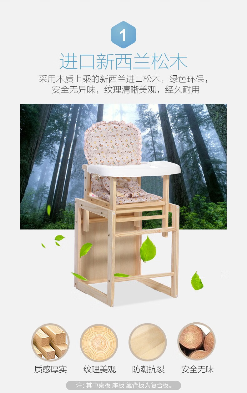 宝贝兔 宝宝餐椅实木多功能儿童餐椅婴儿吃饭座椅便携式新生儿餐桌椅 原木色五合一小马
