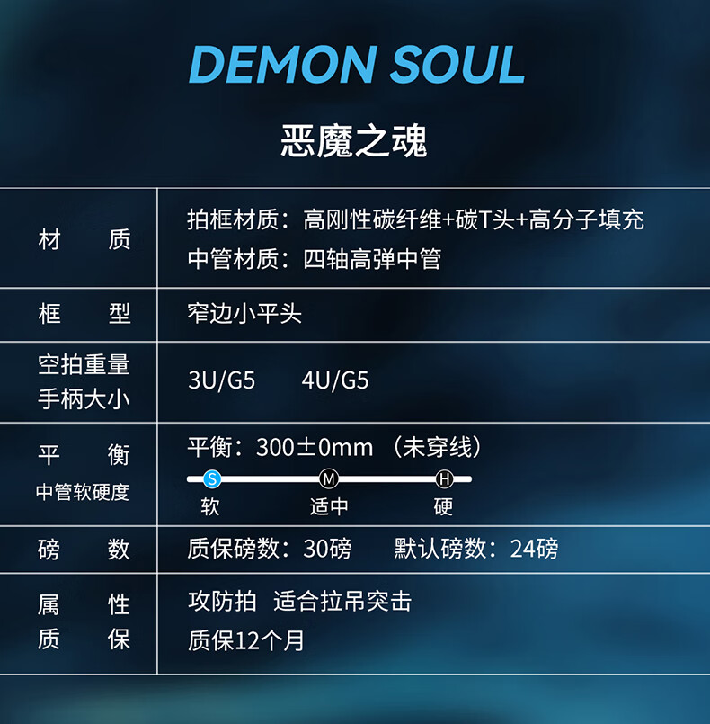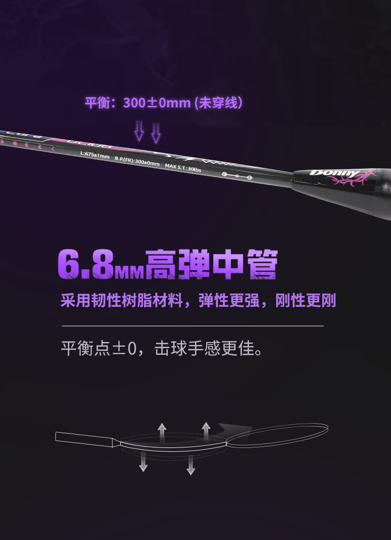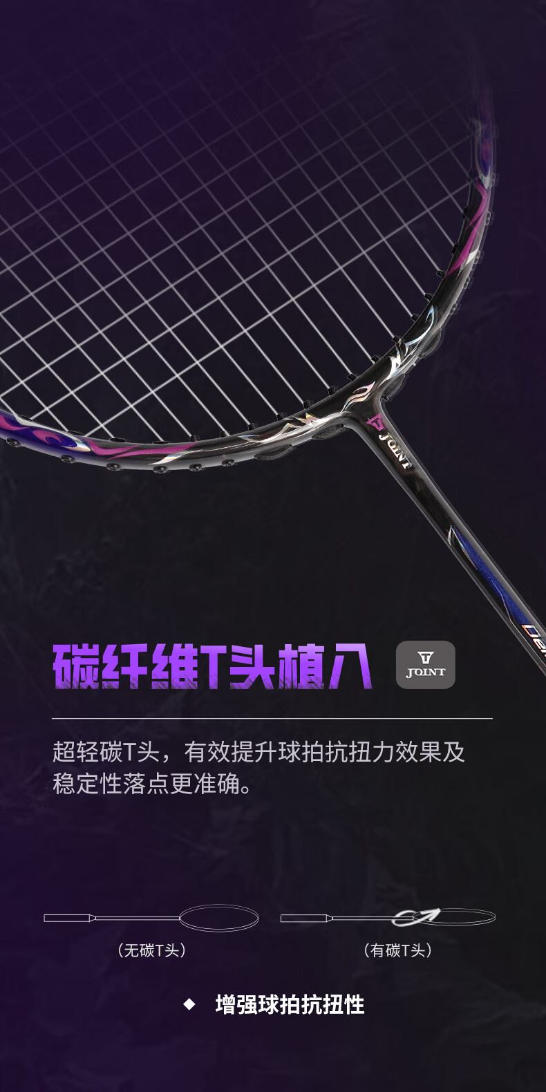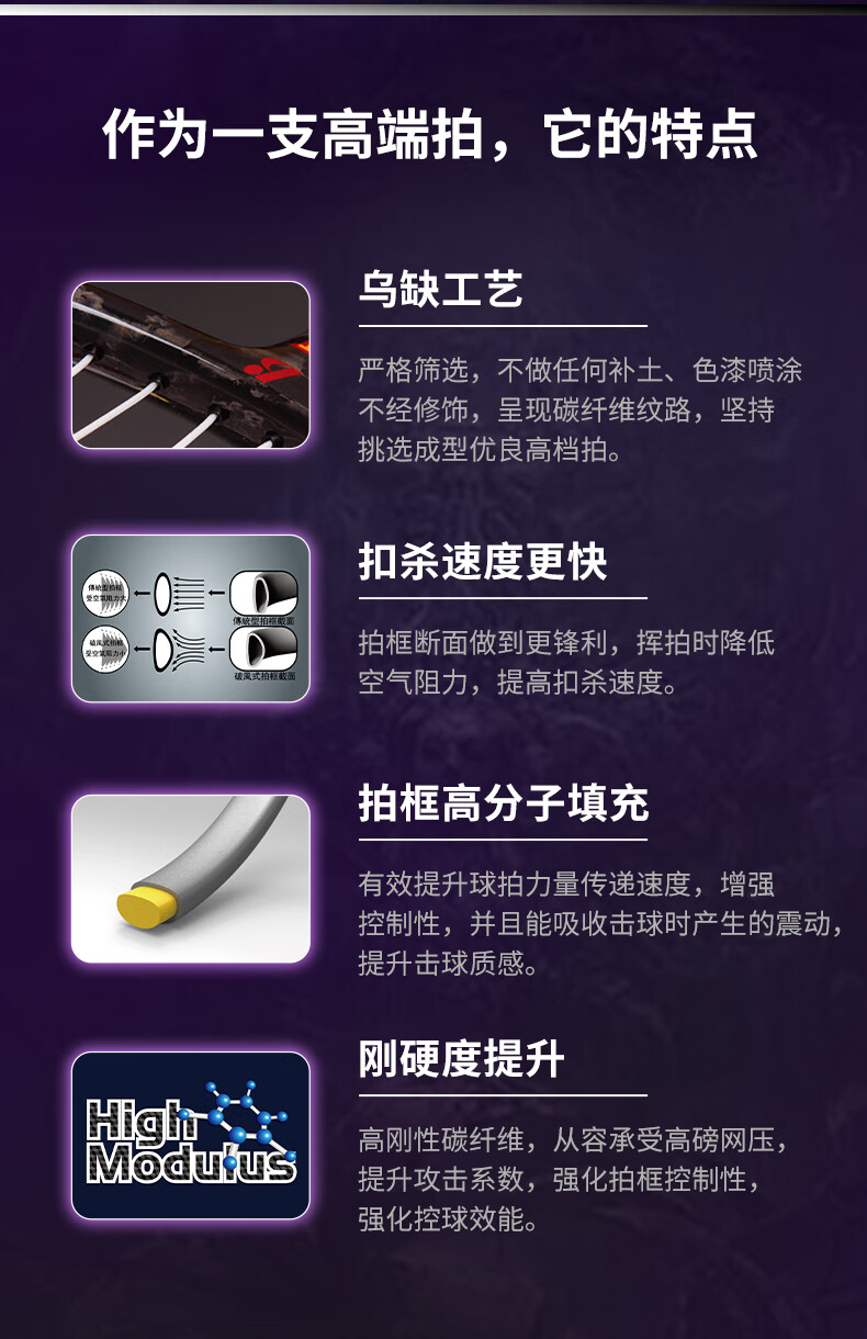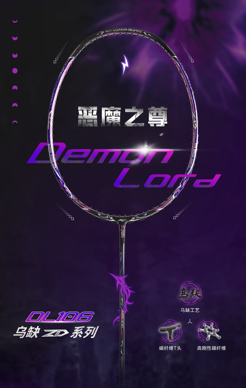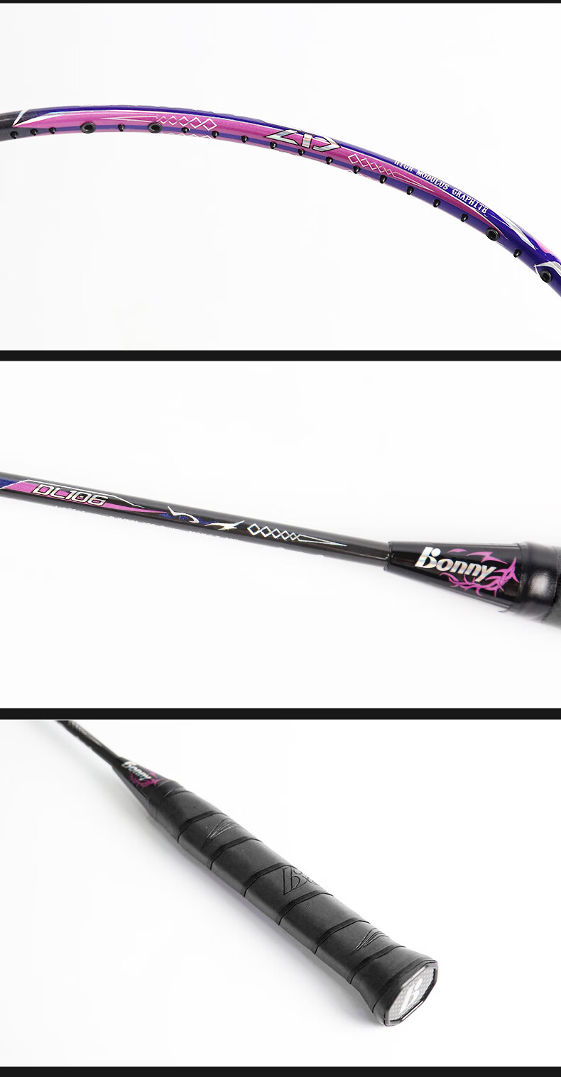 波力(Bonny) 乌缺恶魔之尊全碳素进攻拍扣杀落点准控球平抽挡速度型羽毛球拍 DL106/2BD9901188E 穿线+1个手胶 4U