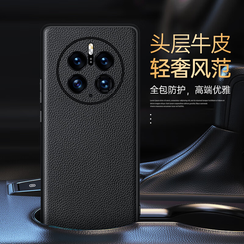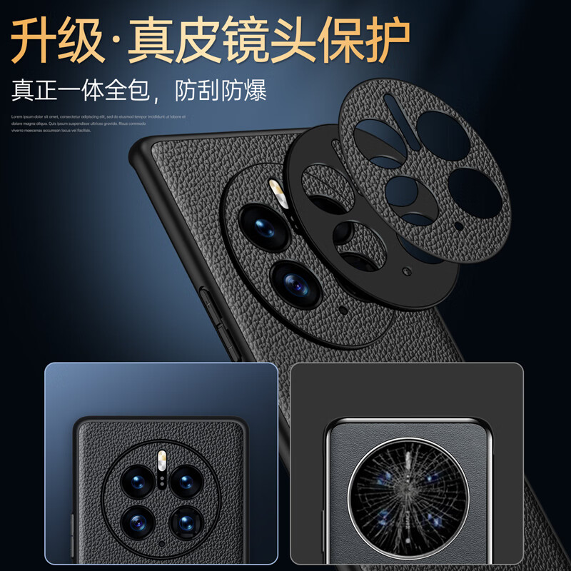 麦焕华为mate50pro手机壳头层牛皮mate50镜头全包真皮荔枝纹款 【宝蓝色】荔枝真皮 华为mate50