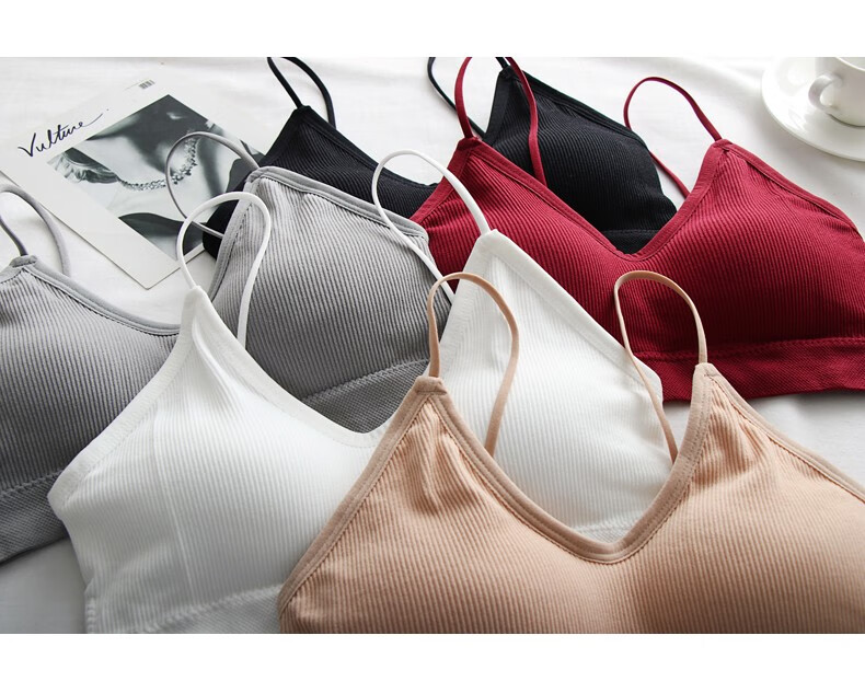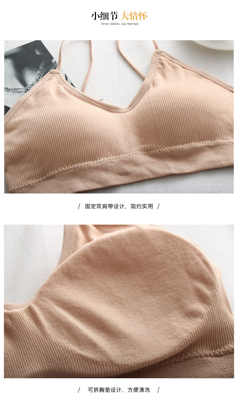 俞兆林2件运动文胸美背内衣女薄款无钢圈胸罩高中学生少女裹胸吊带背心 细肩带美背文胸(白色+肤色) 均码 (85-130斤)