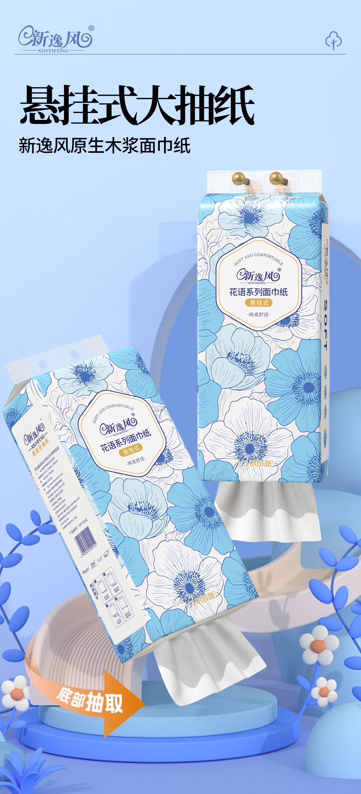 漫花挂式抽纸家用整箱纸巾1280张实惠装餐巾纸原木面巾纸厕用卫生纸 【单提装】体验装 无挂钩