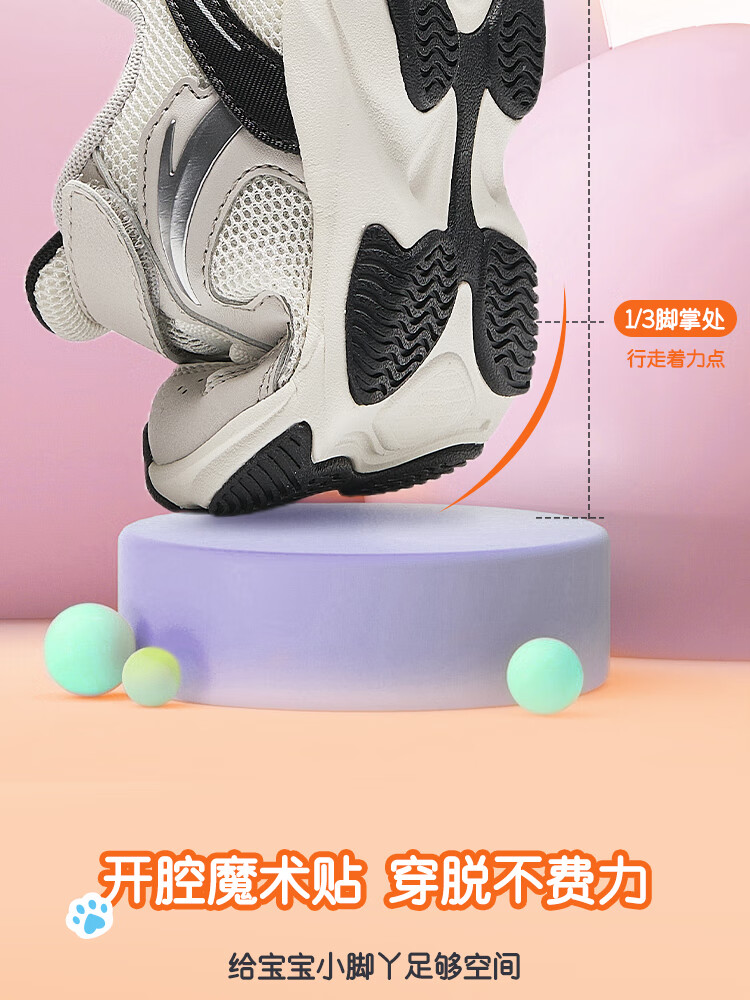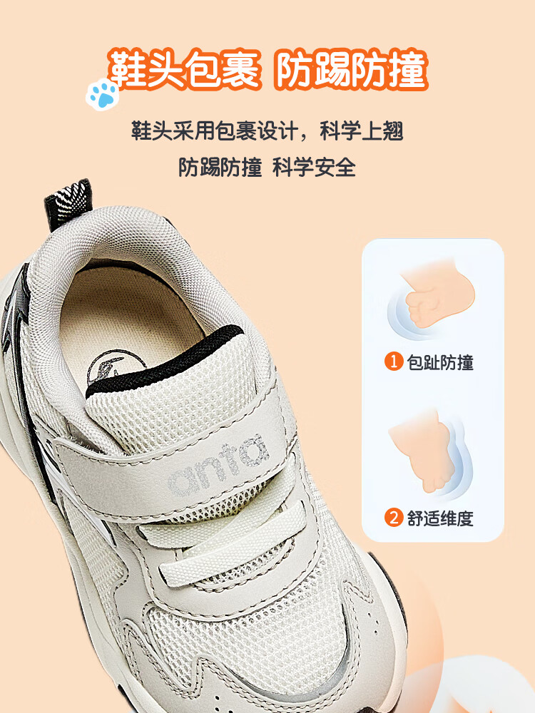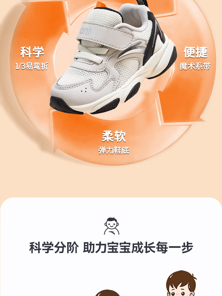 安踏童鞋男女婴幼儿宝宝学步鞋秋季新款魔术贴儿童运动鞋子1-3岁 【店长推荐】象牙白/灰/黑0003-1 27 脚长约16.5cm