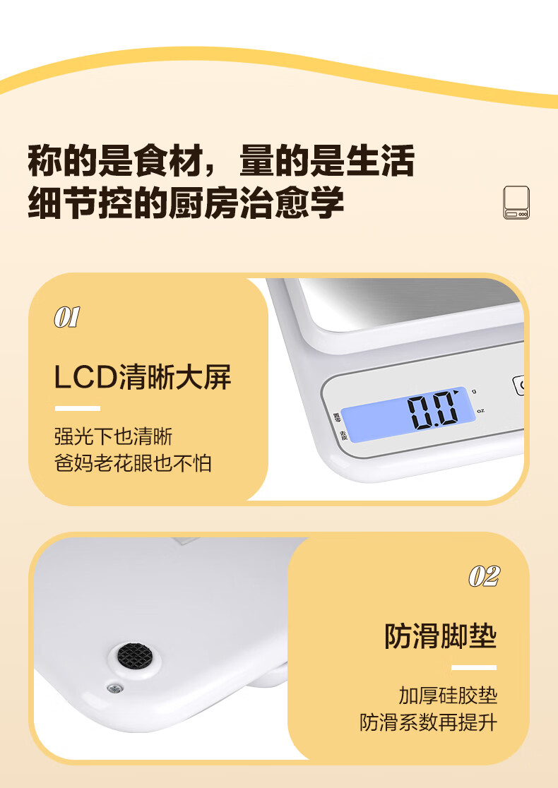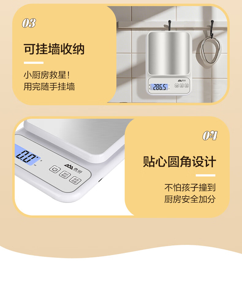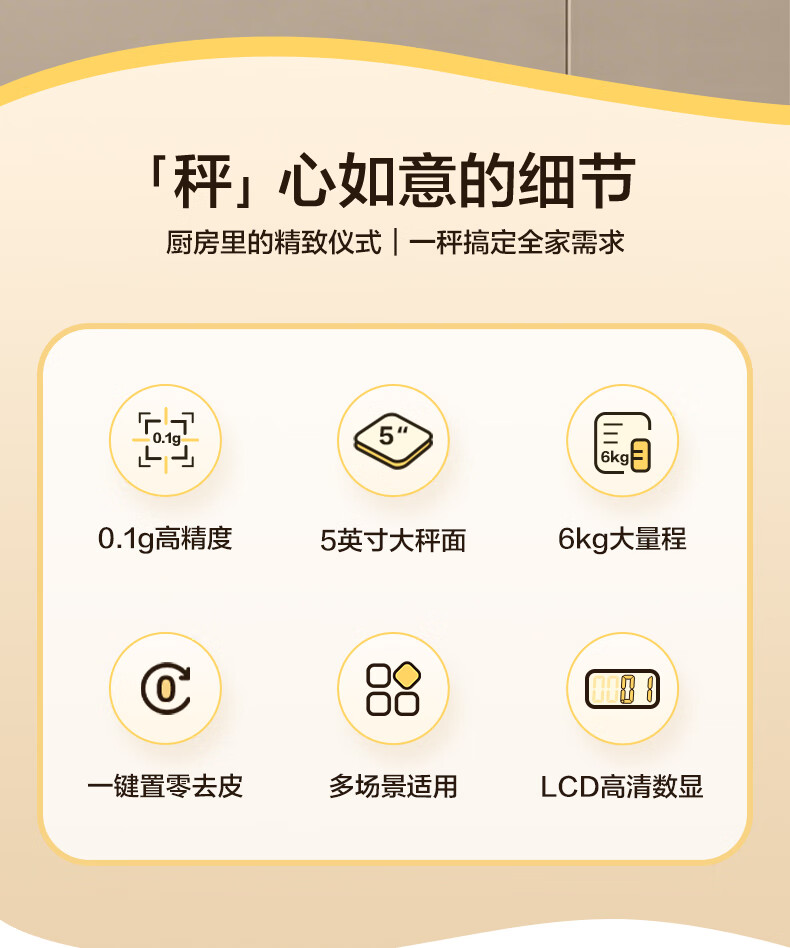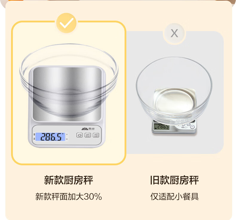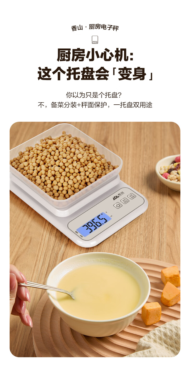 香山电子秤厨房秤 克重称精准0.1g 食物秤 不锈钢加大秤面 6kg电池款