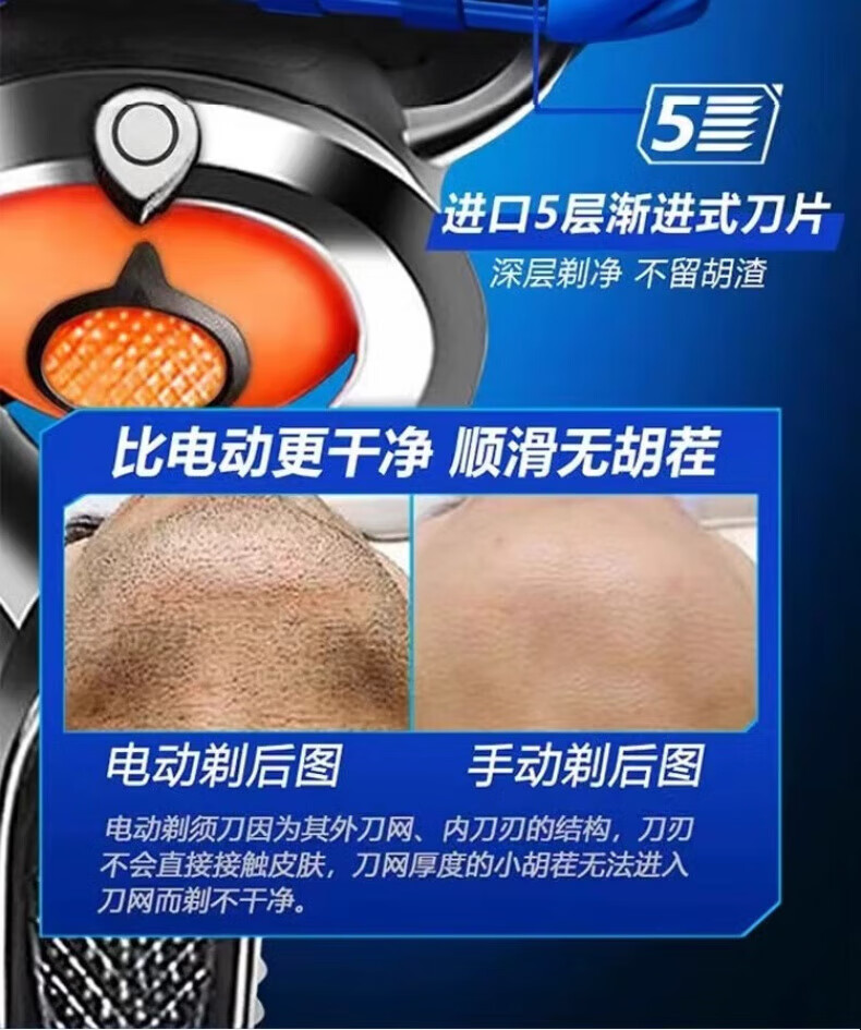 AILUKI日本5层刀片剃须刀男士手动刮胡刀通用五层刀头 1刀架+16刀头(送收纳盒)