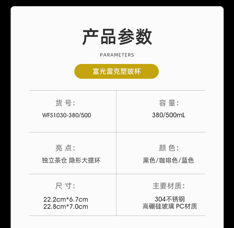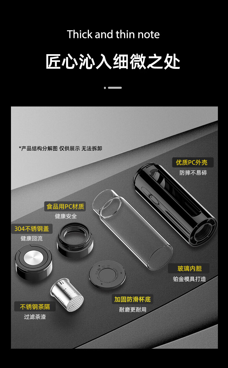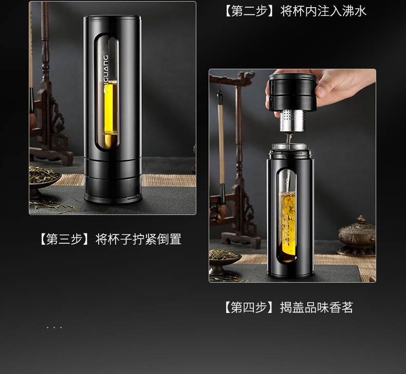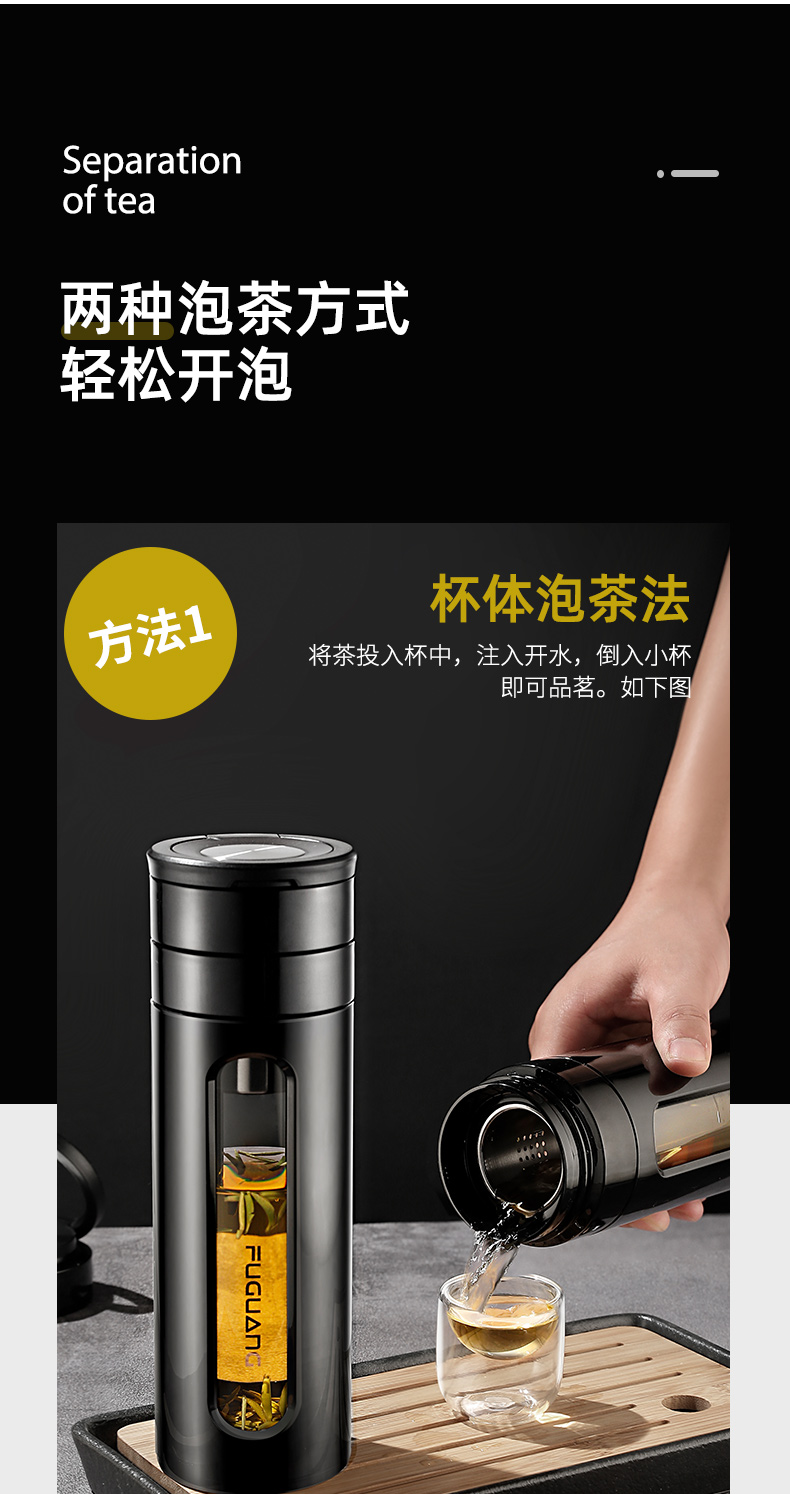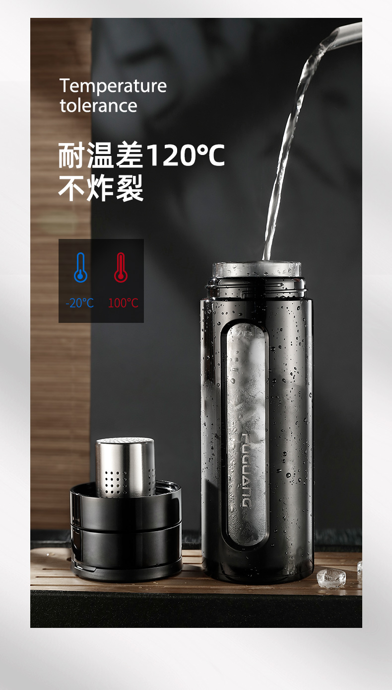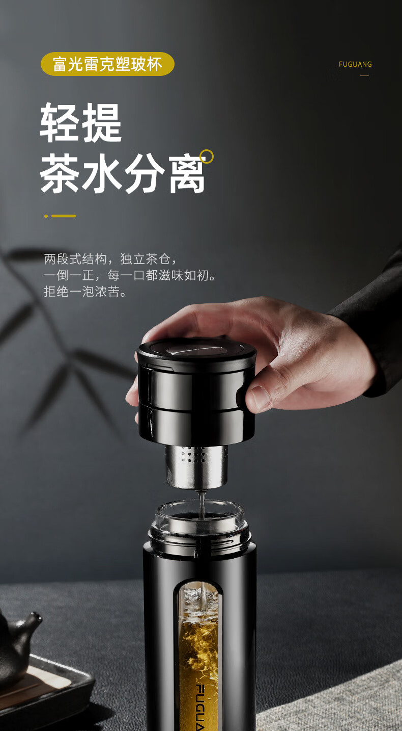 富光大容量耐摔玻璃杯 商务男士双层水杯塑玻泡茶杯茶水分离杯子