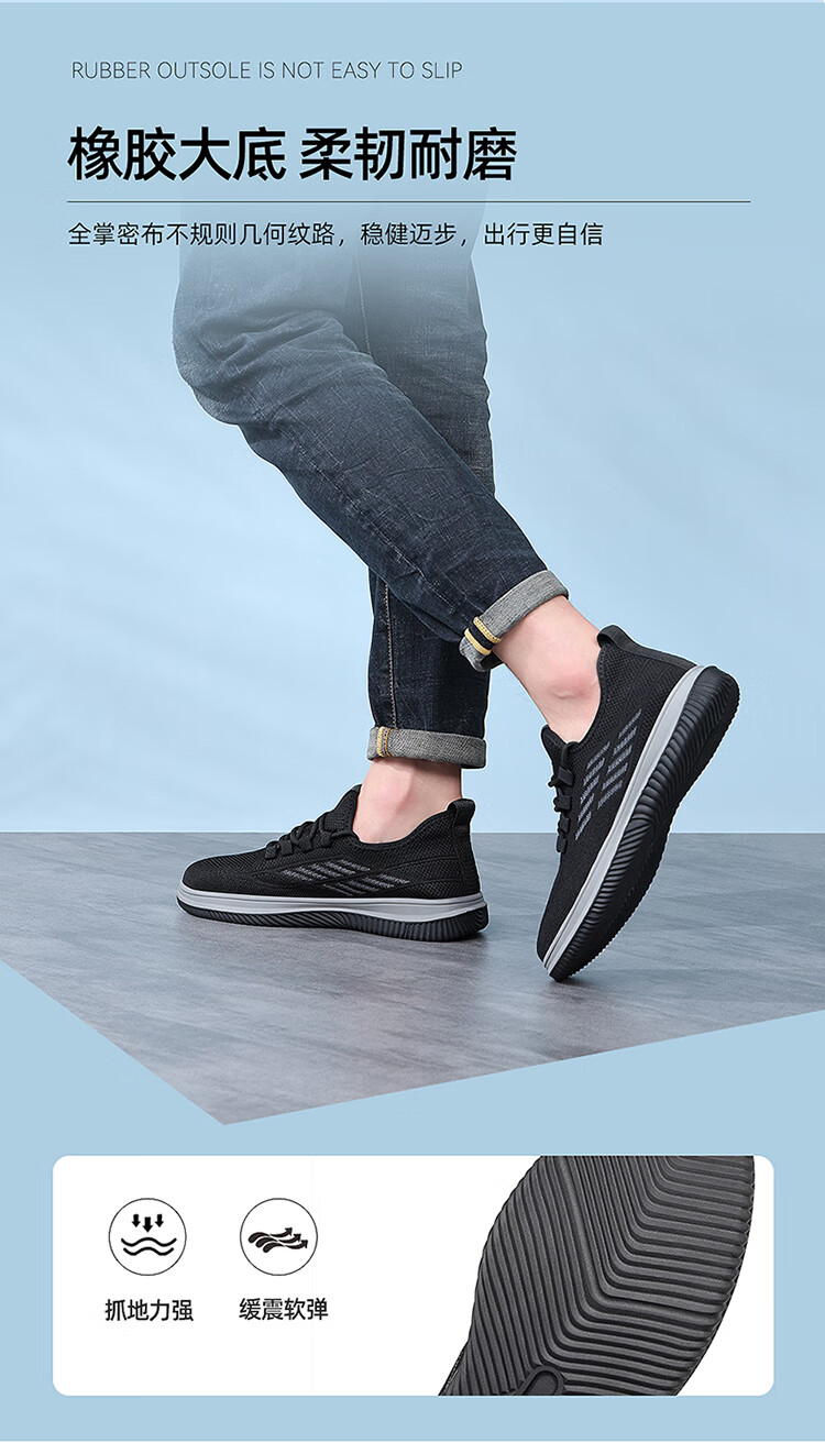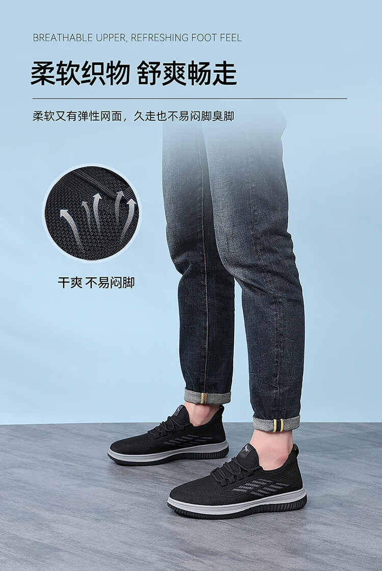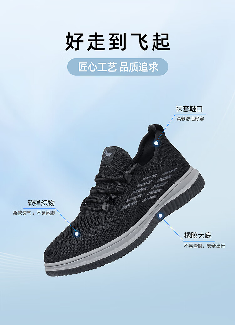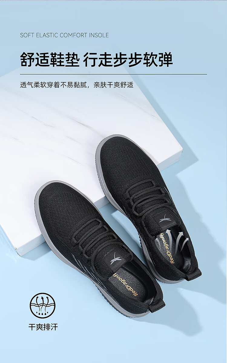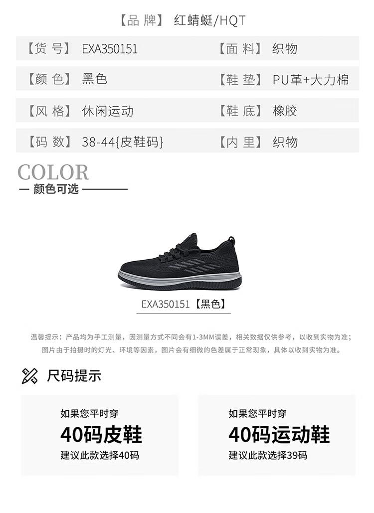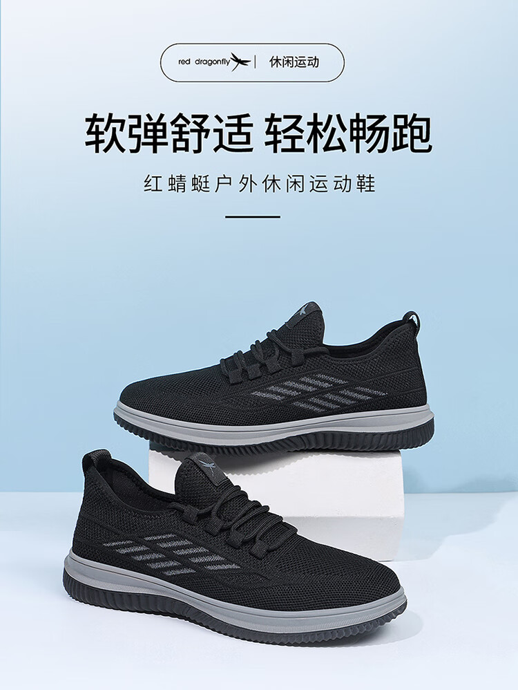 红蜻蜓休闲鞋男士飞织网面鞋子男轻便软底百搭运动男鞋EXA350151黑色41