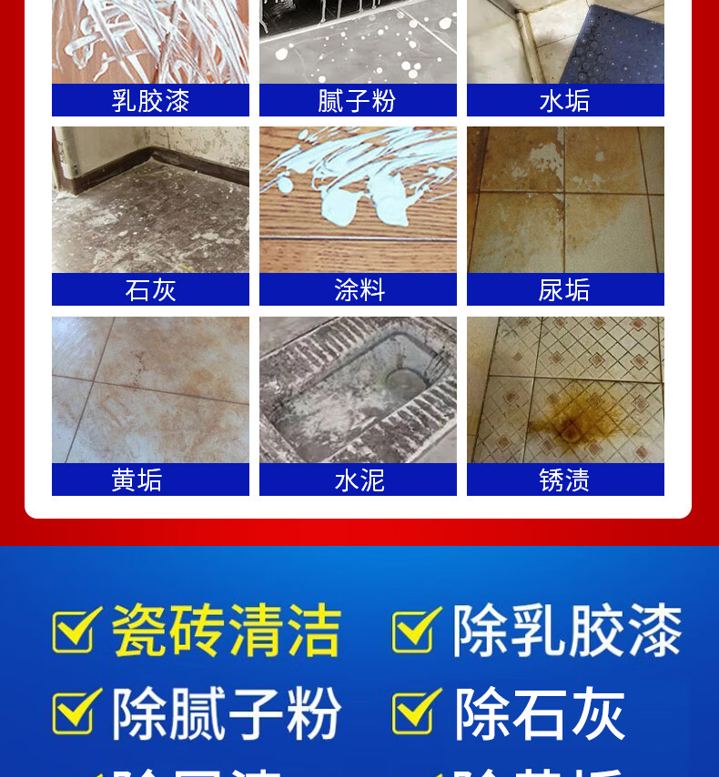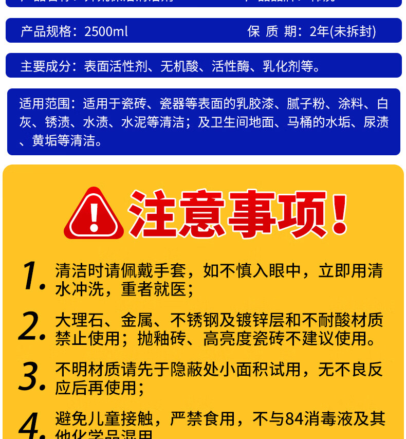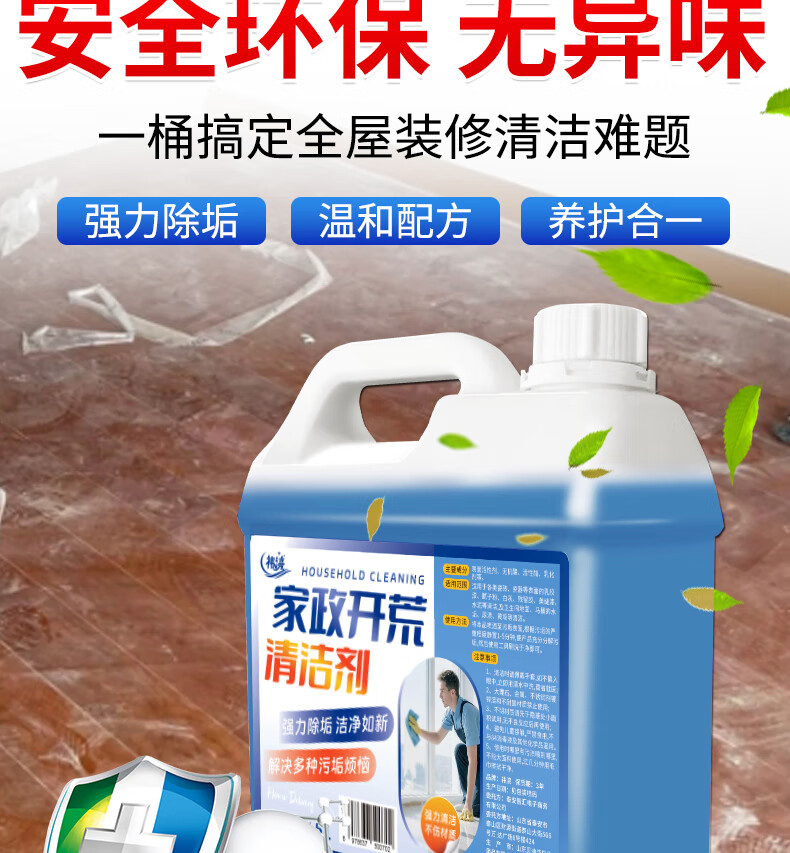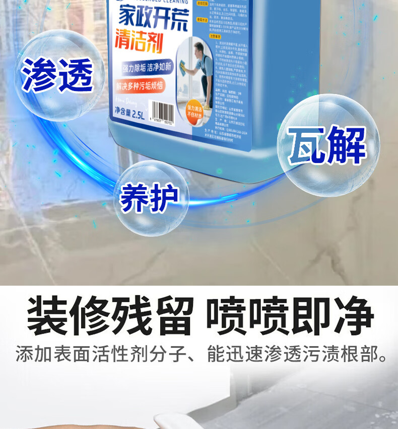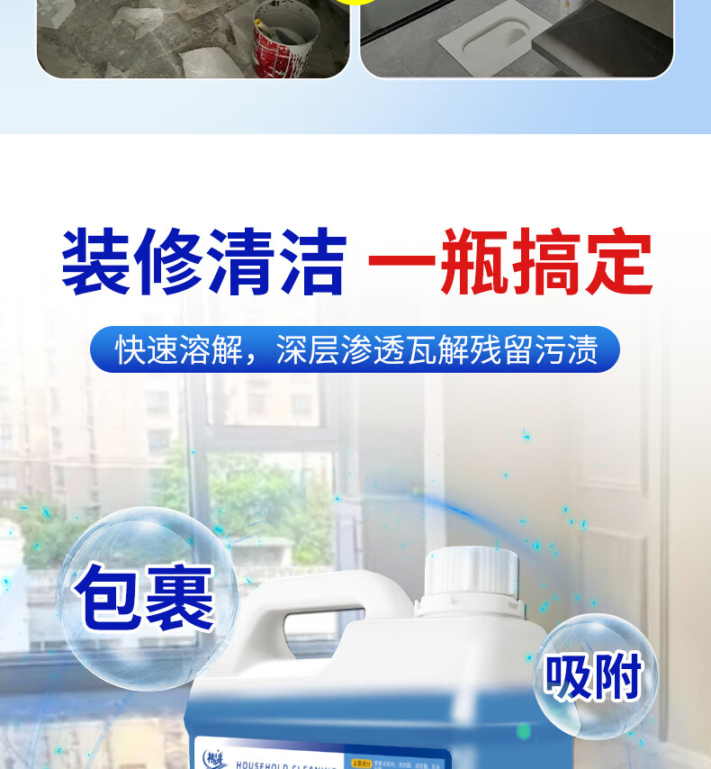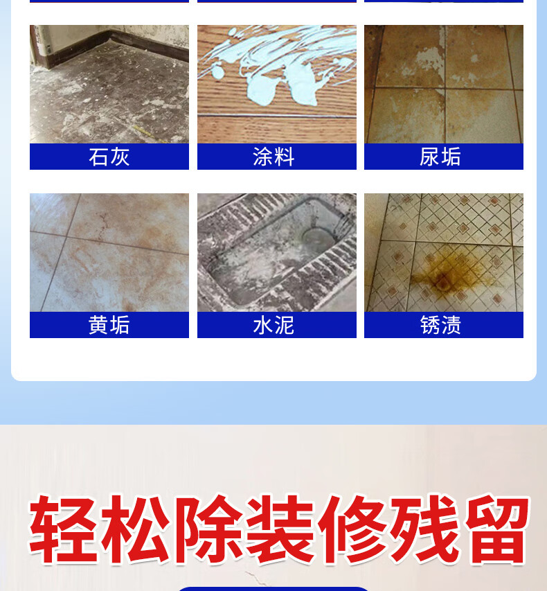 祎湸开荒保洁清洁剂地板瓷砖装修残留乳胶漆水泥污渍清洗除蜡工具套装