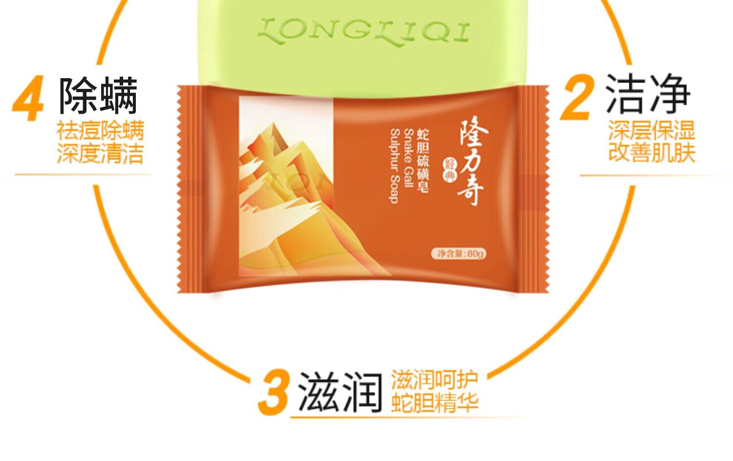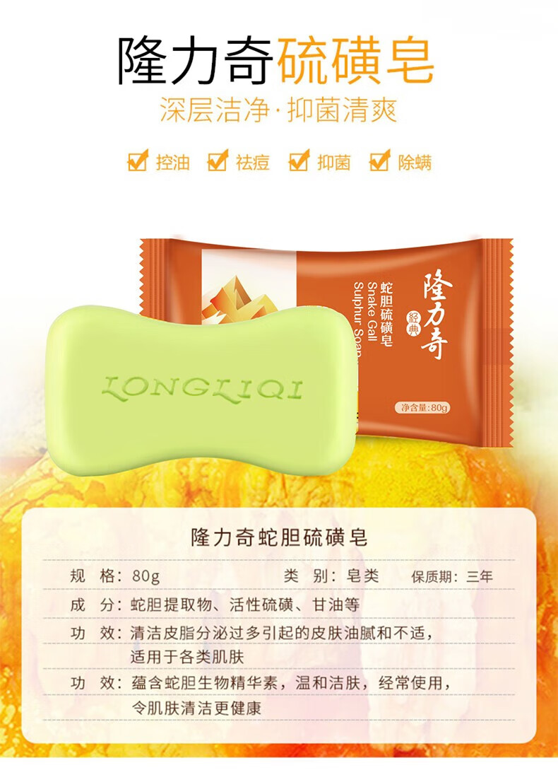 隆力奇(LONGRICH)硫磺皂香皂洗脸洗手洗澡洁面肥皂男女沐浴香皂 硫磺皂80G-5块