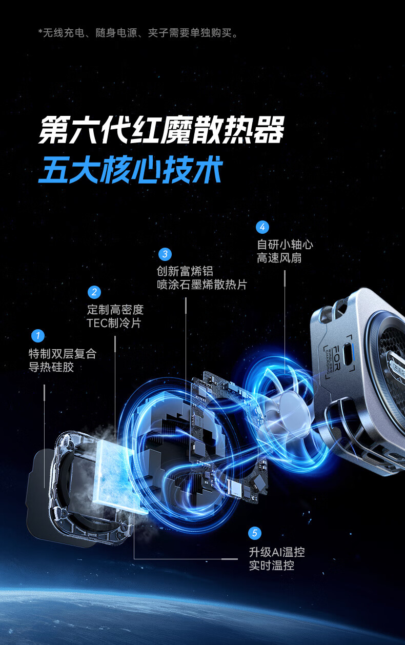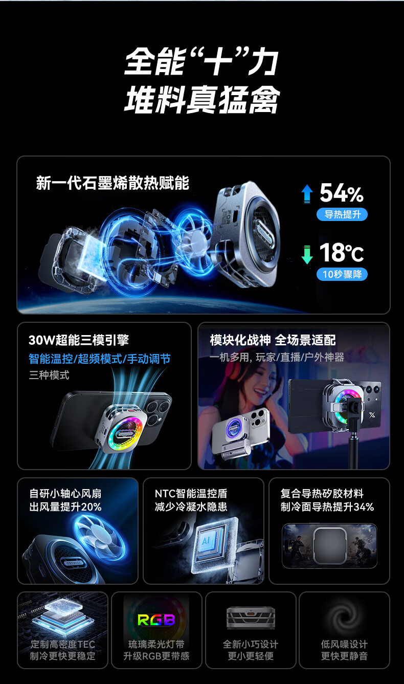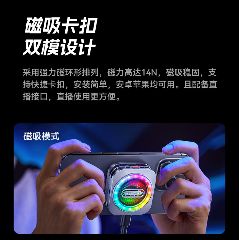 努比亚红魔磁吸散热器6Pro 散热背夹游戏直播低噪音半导体降温神器适用红魔电竞平板3Pro苹果17iqoo黑鲨一加