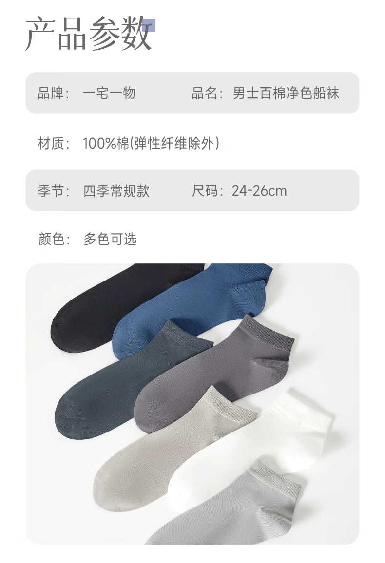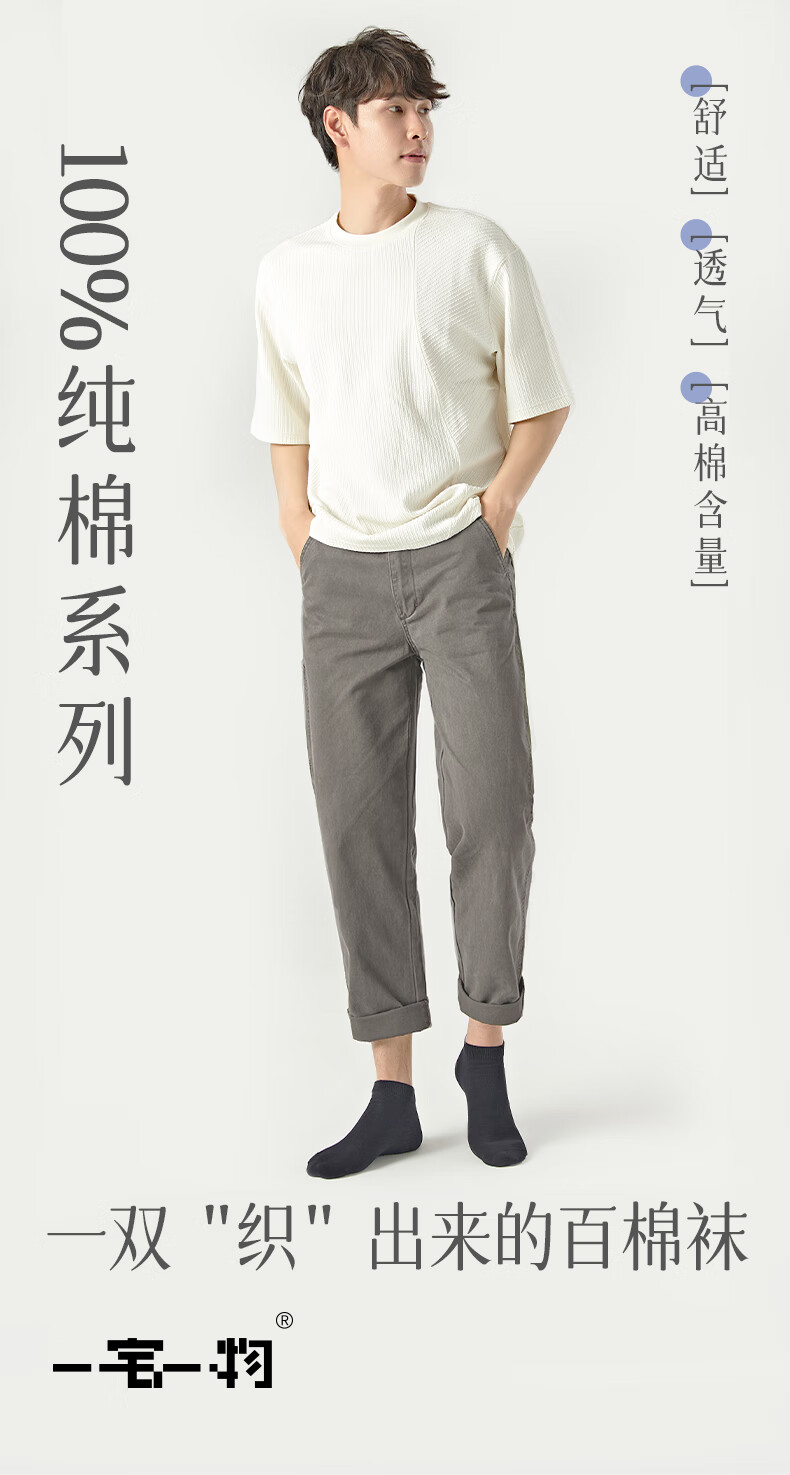 一宅一物春夏袜子男7A抗菌袜子100%纯棉袜消臭短袜中筒袜黑色百搭新疆棉