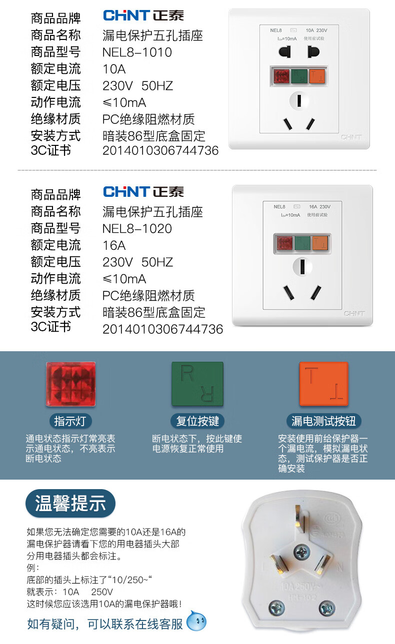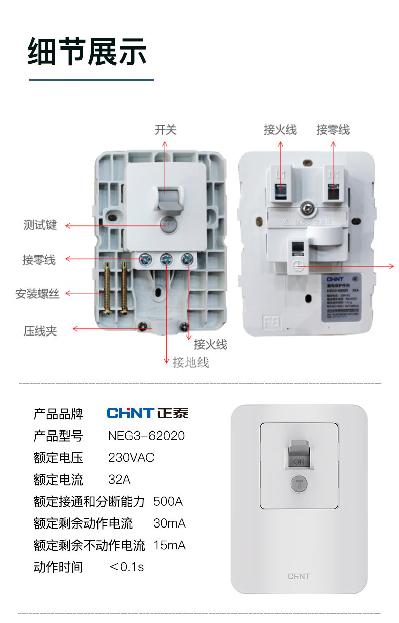 正泰(CHNT)漏电保护器空调插座家用32A 230V 固定式漏电保护开关NEG3-62020