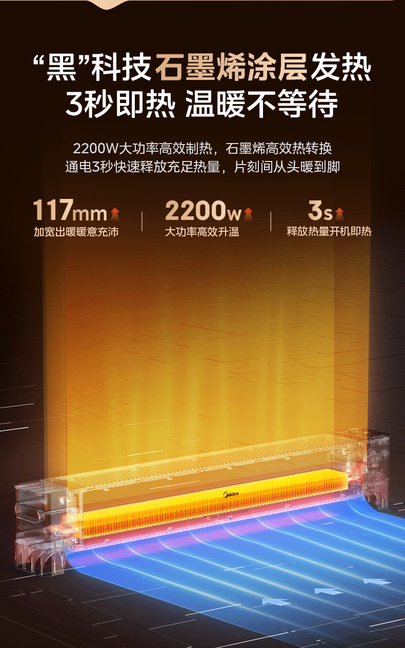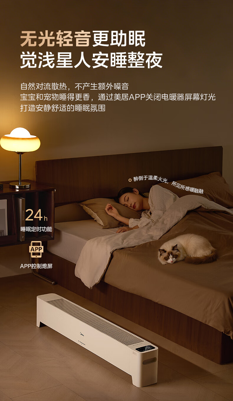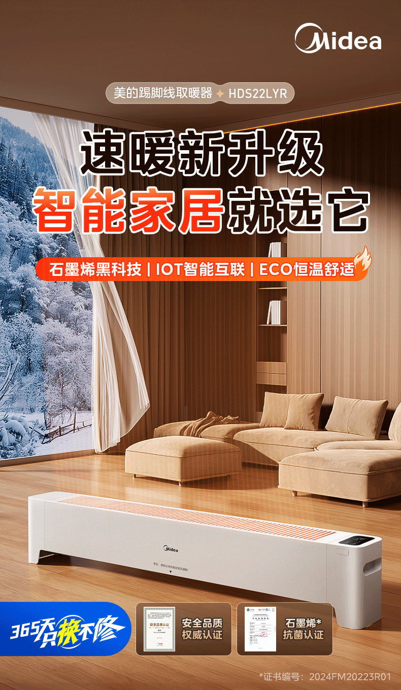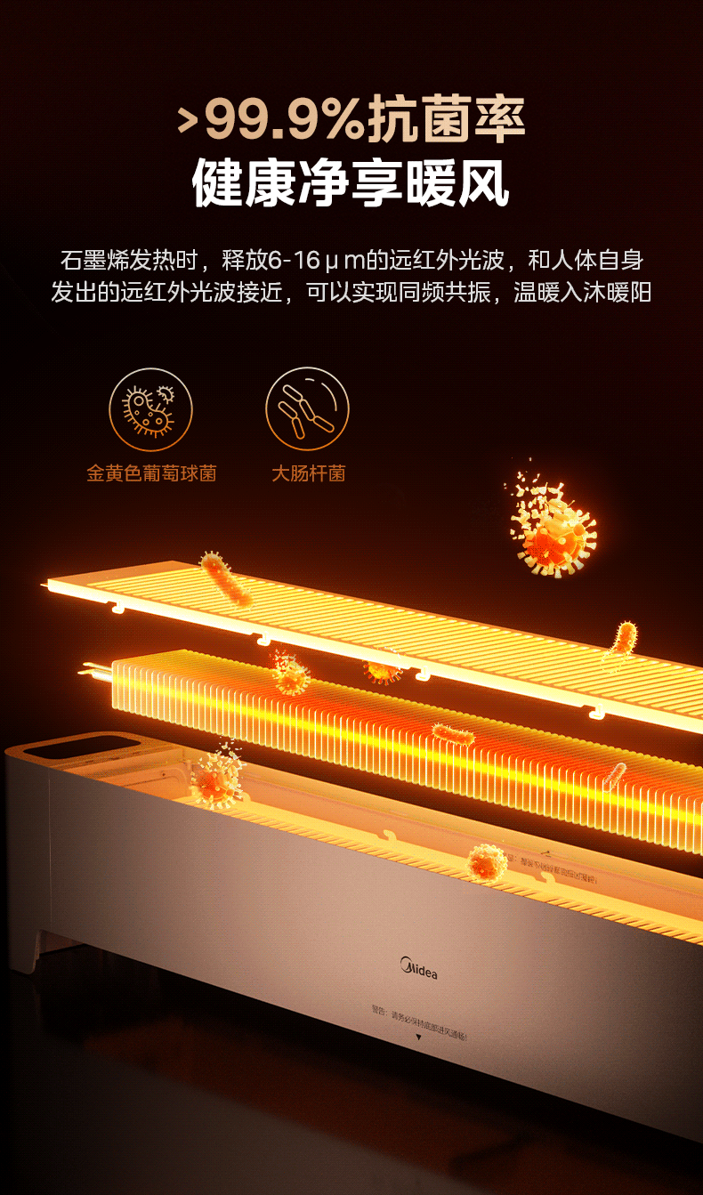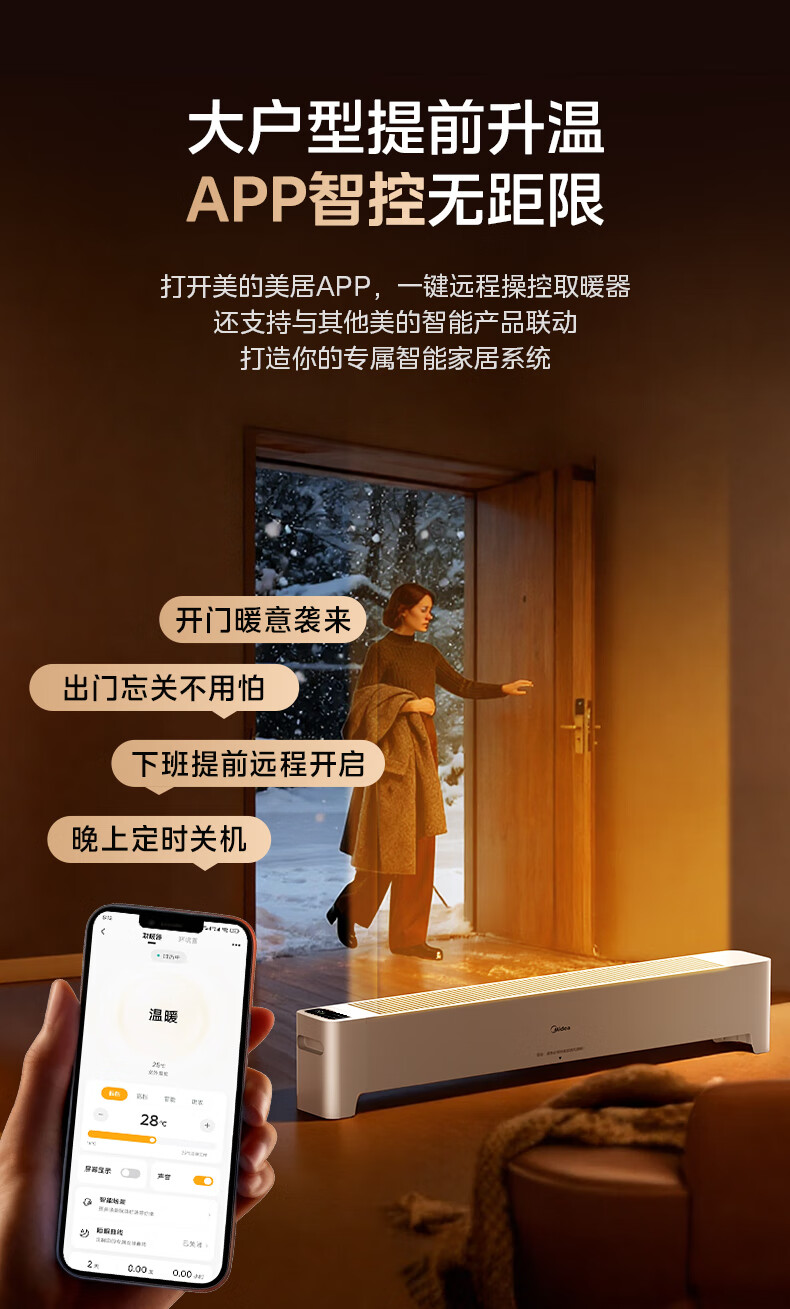 美的(Midea)【APP智能】石墨烯家用踢脚线取暖器 遥控电热电暖器 浴室速热电暖气 节能暖风机全屋升温HDS22LYR