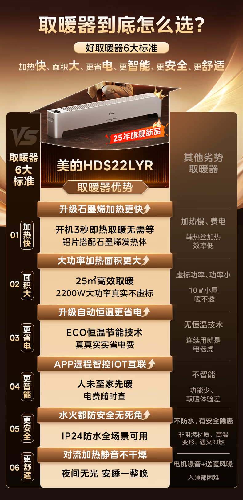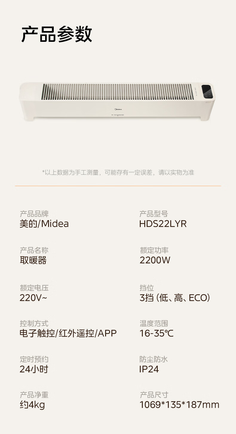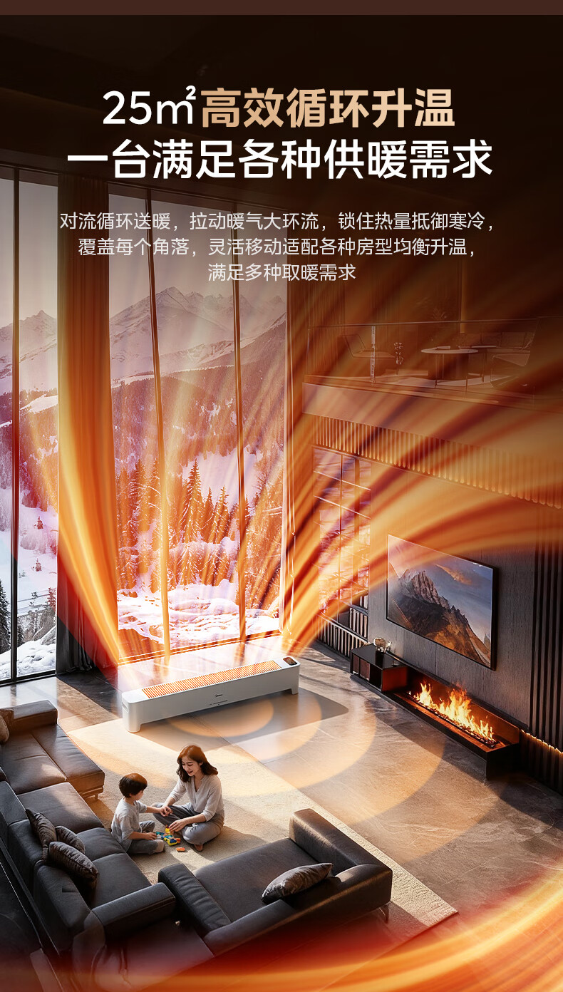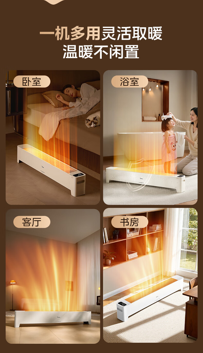 美的(Midea)【APP智能】石墨烯家用踢脚线取暖器 遥控电热电暖器 浴室速热电暖气 节能暖风机全屋升温HDS22LYR