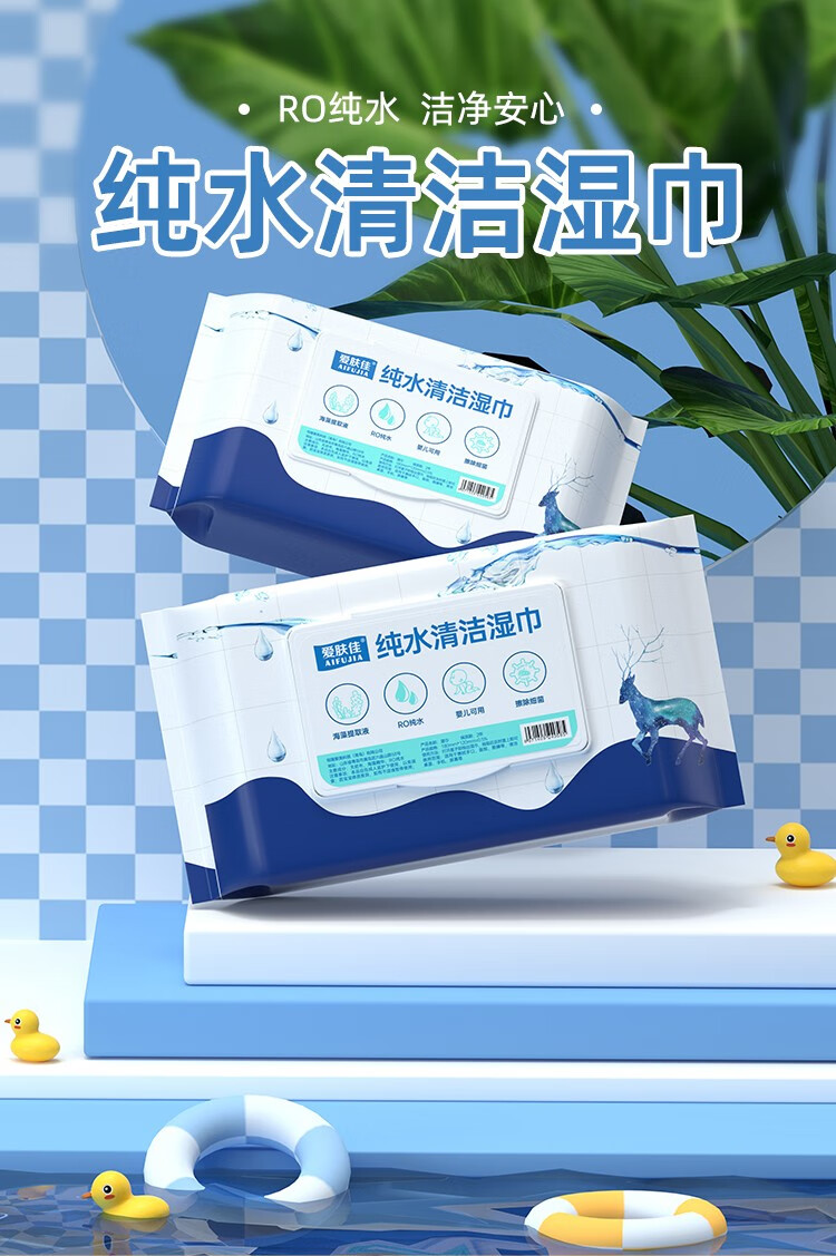 爱肤佳【甄选厂家】湿纸巾手口宝宝柔湿巾一次性洗脸巾儿童湿用抽纸擦脸 【家庭装】80抽X5包 活动