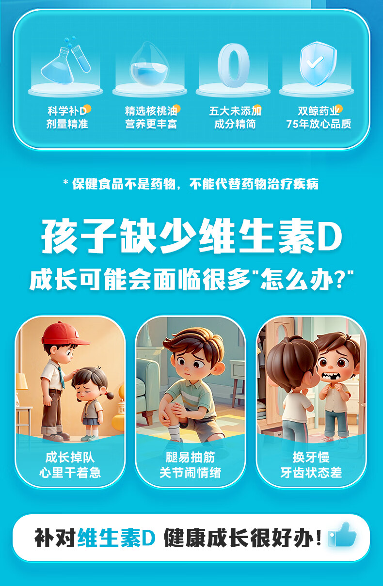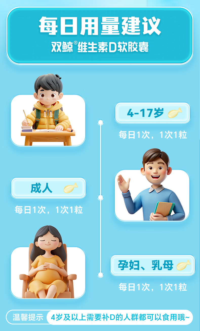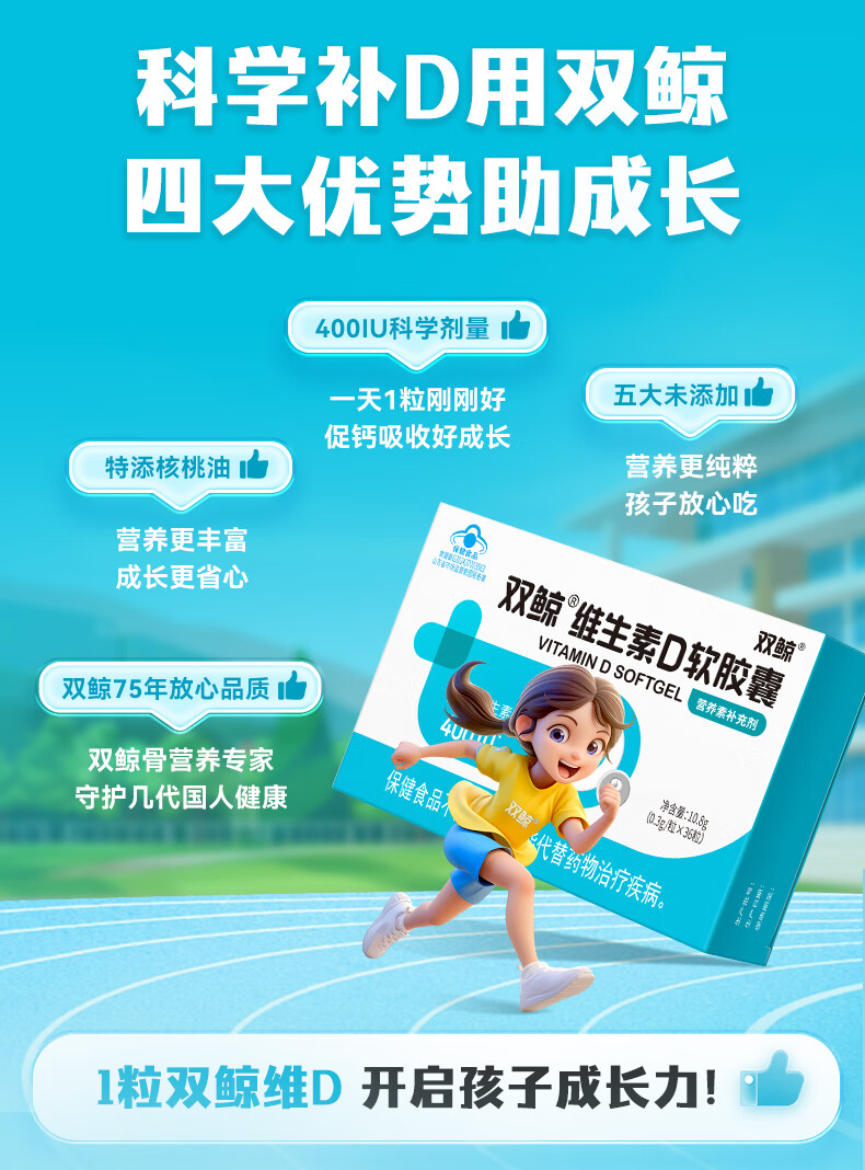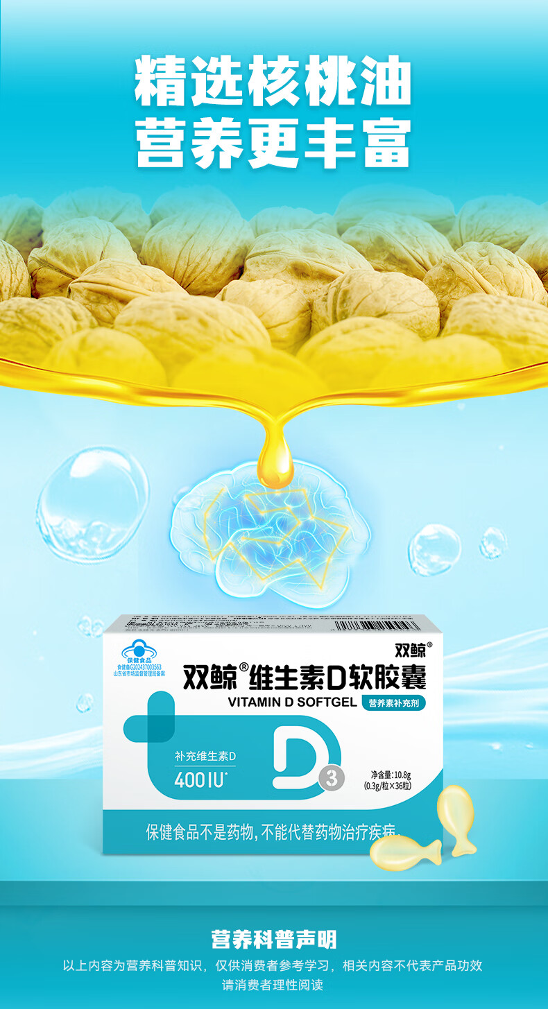 双鲸维生素d3软胶囊400单位36粒补d儿童成人孕妇补钙正品促钙吸收