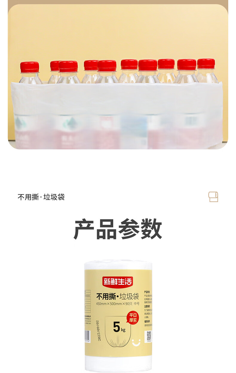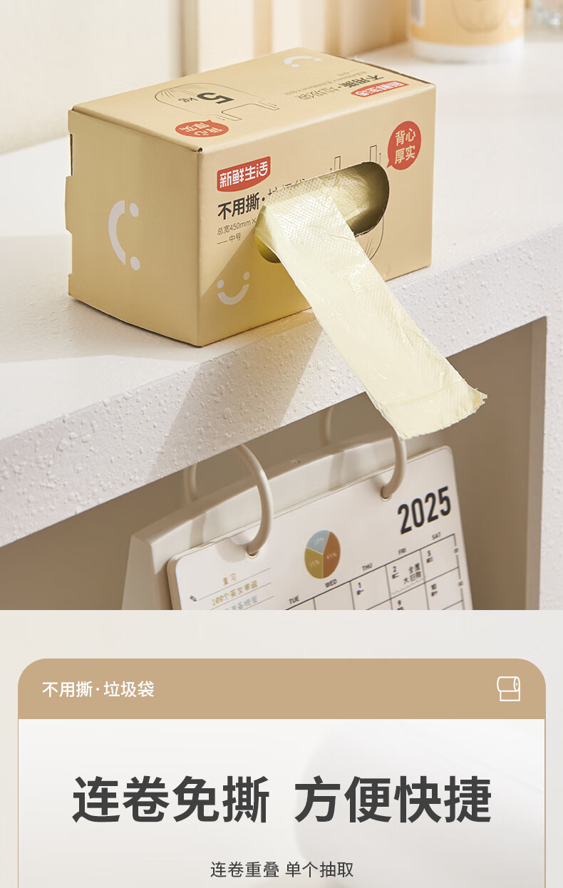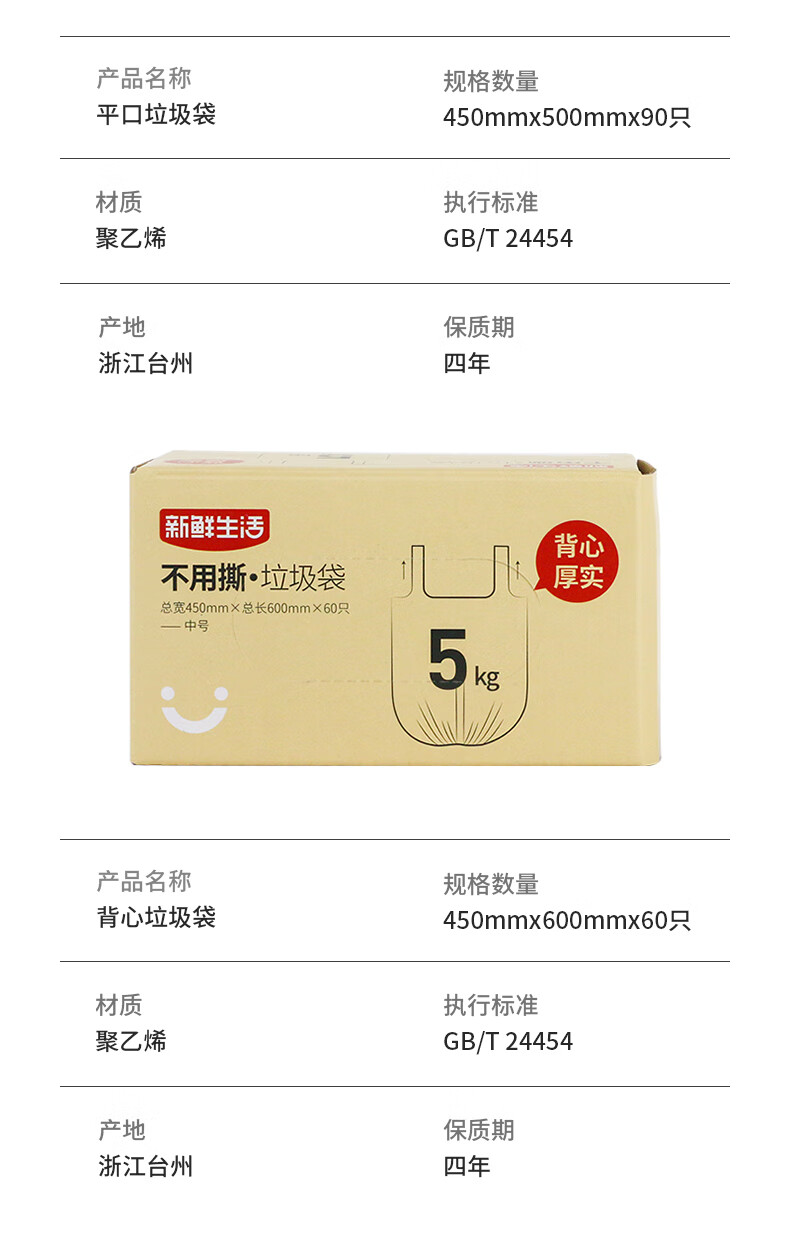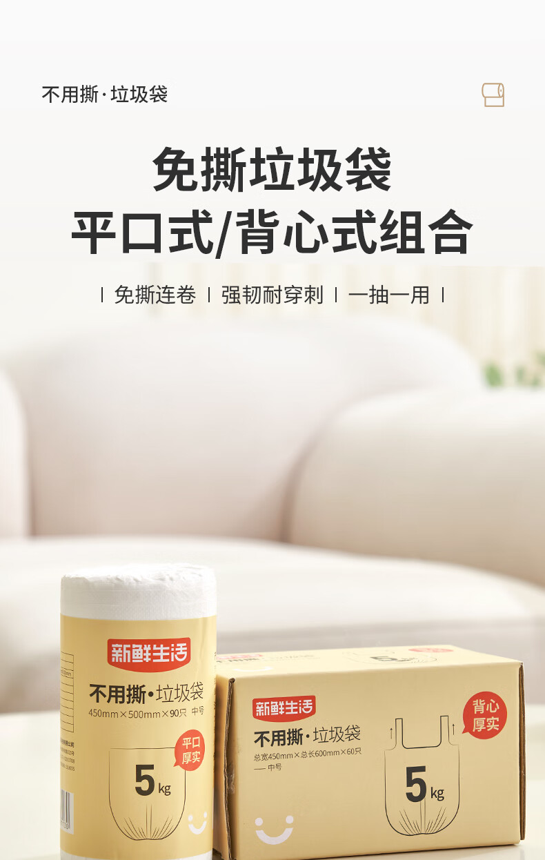 新鲜生活免撕背心垃圾袋450mm*600mm*60只中号加厚厨房办公室宿舍家用塑袋
