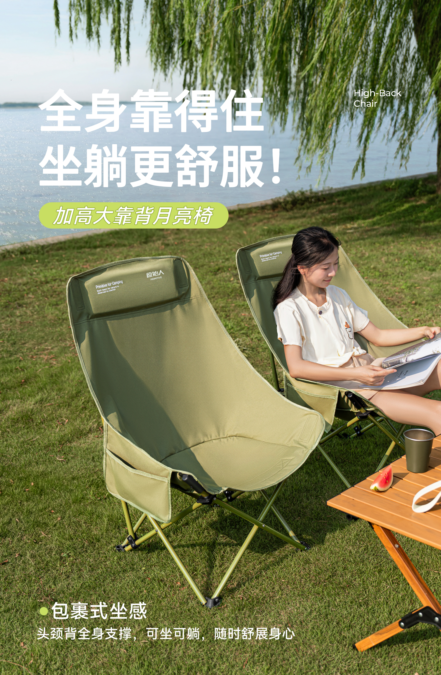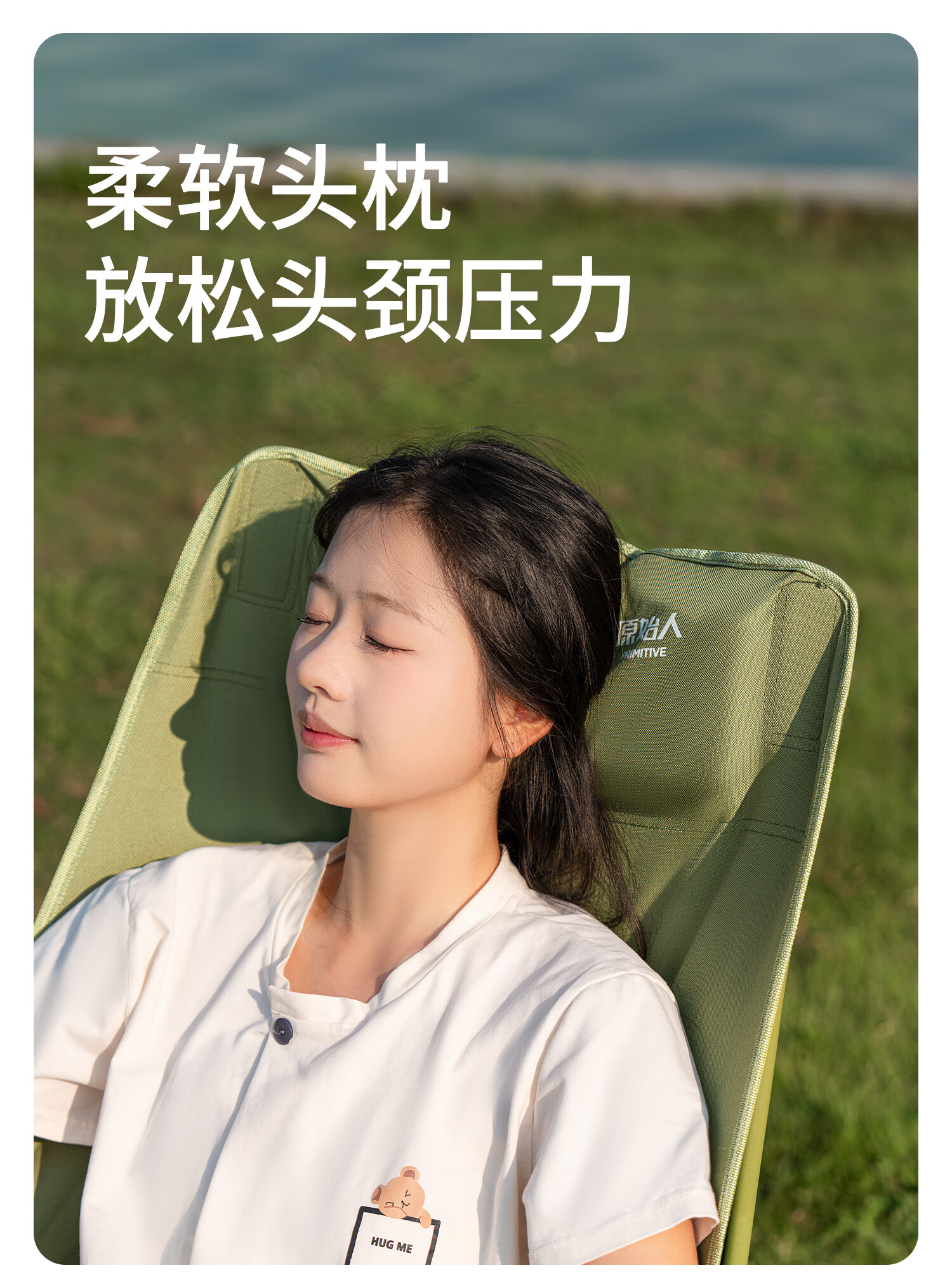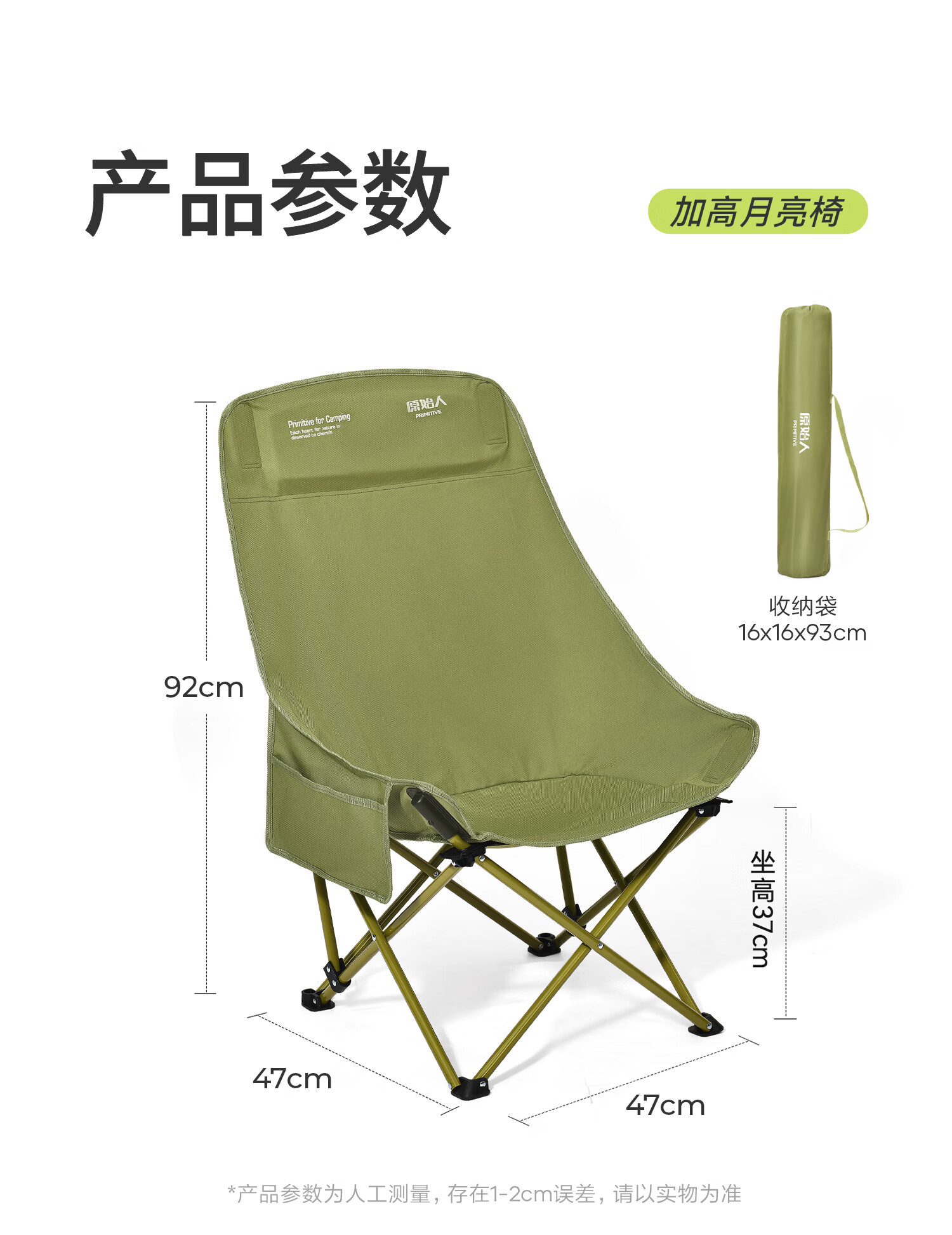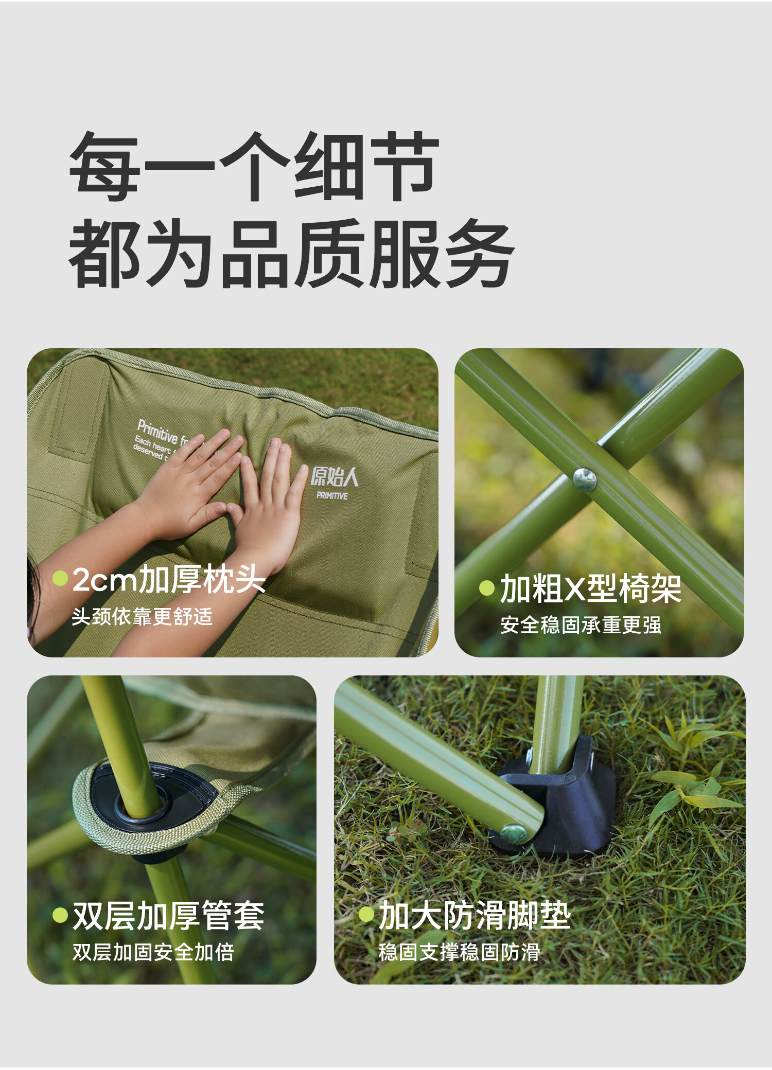 原始人(The Primitive)月亮椅户外折叠椅加高露营椅子便携式躺椅钓鱼凳子午休沙滩椅野餐 橄榄绿【入门首选】经典稳固大靠背