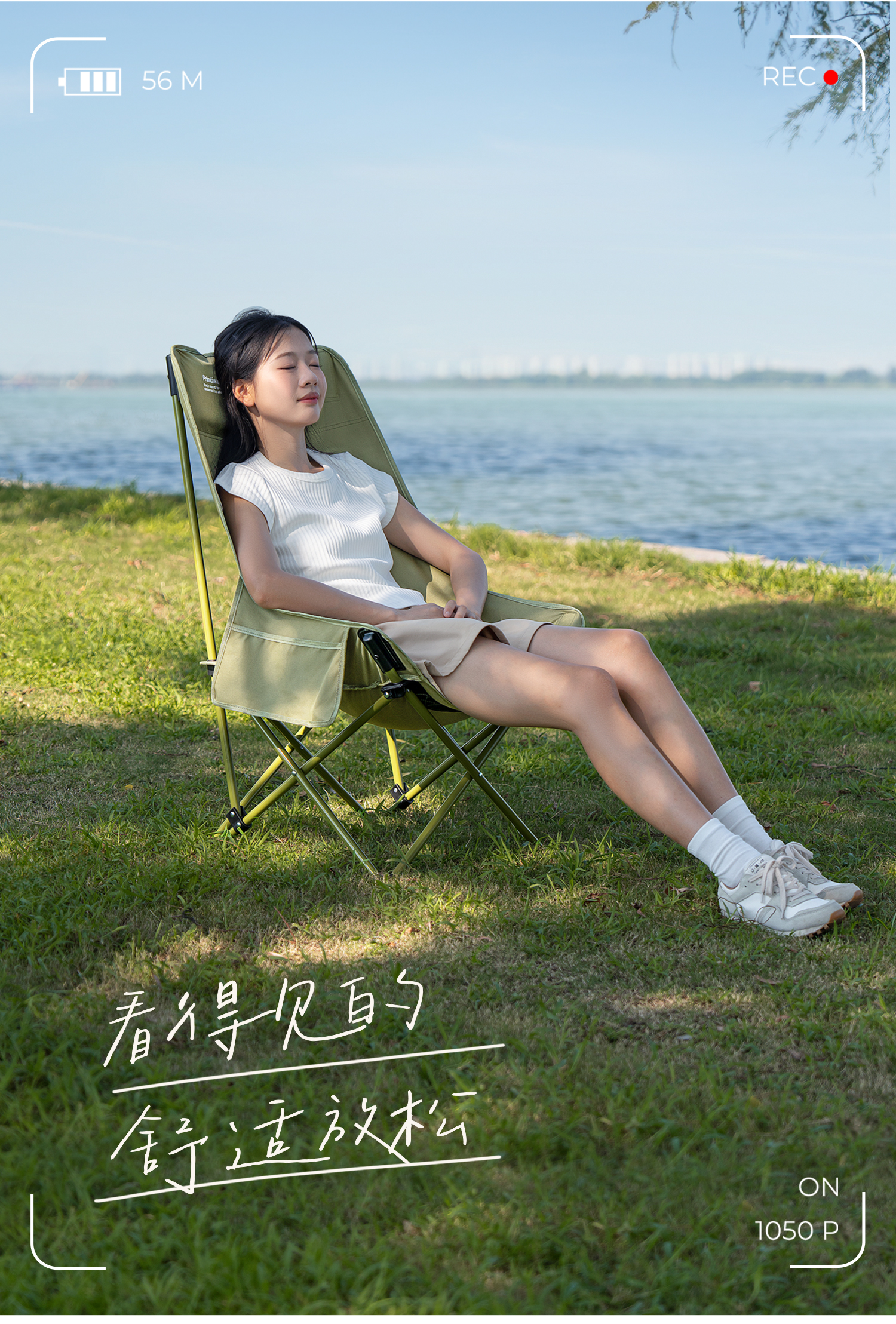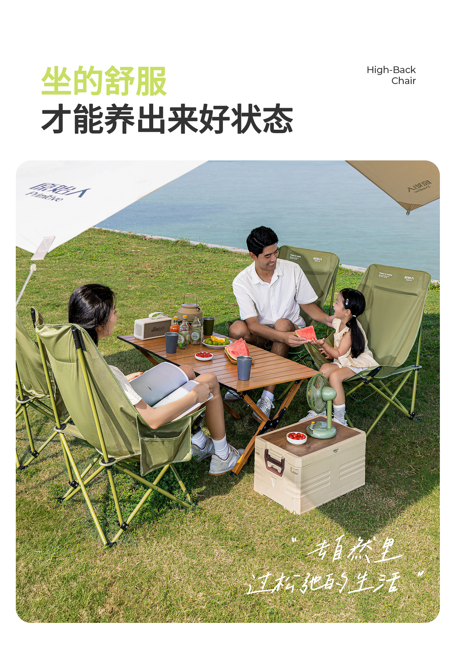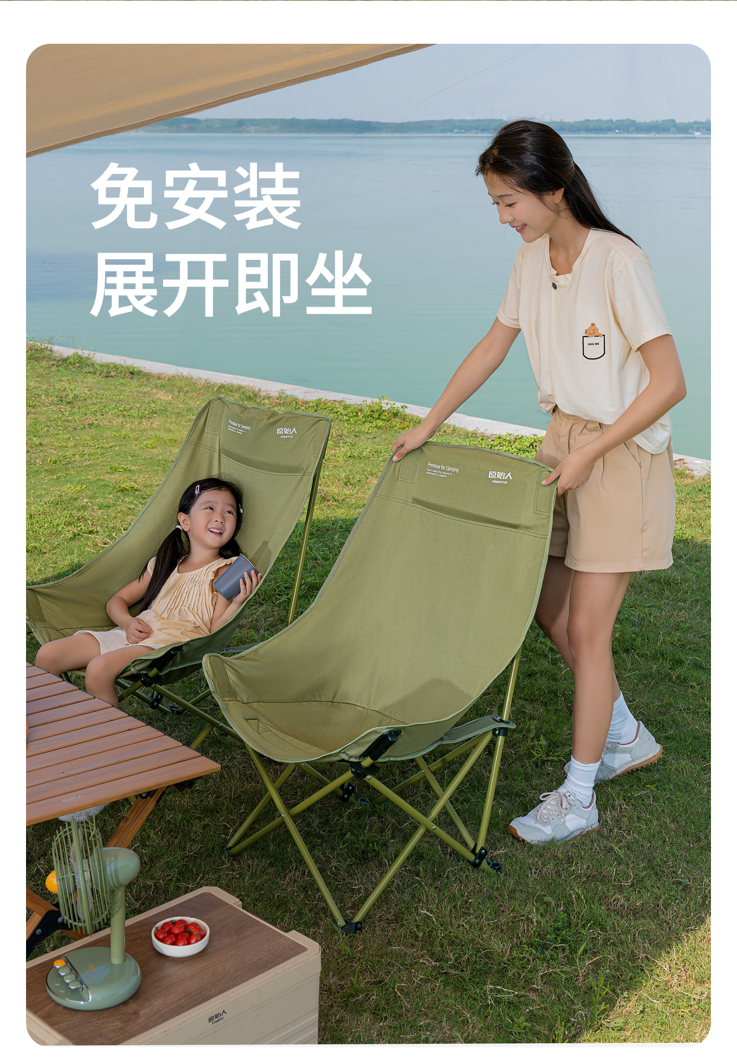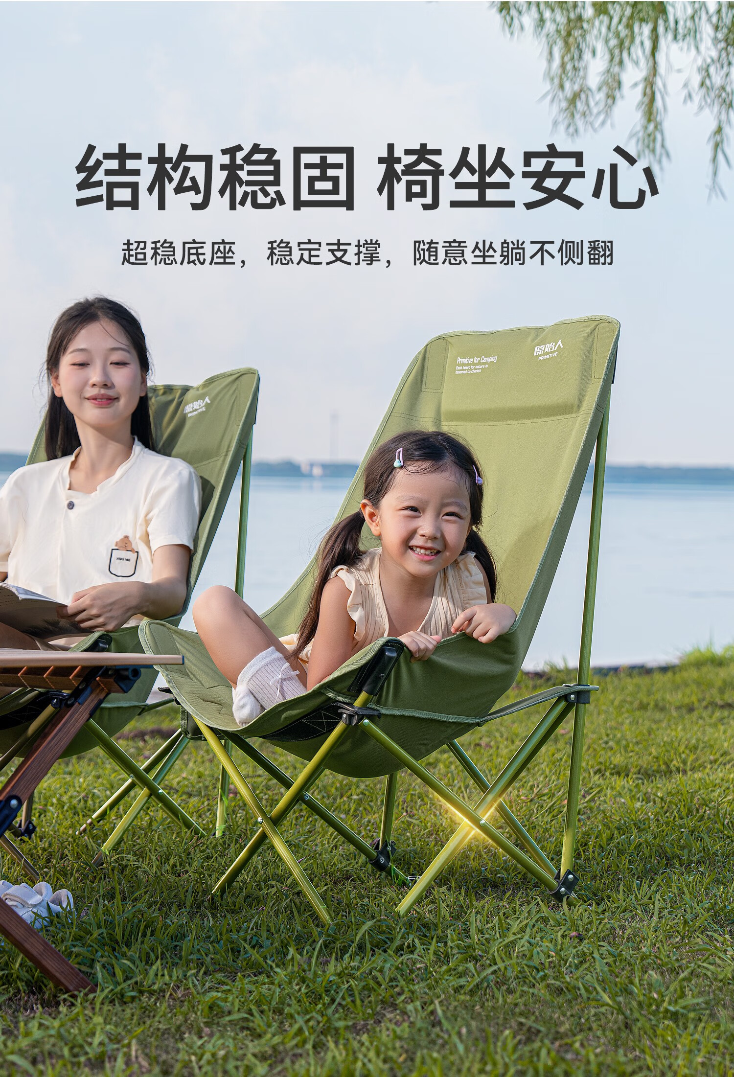 原始人(The Primitive)月亮椅户外折叠椅加高露营椅子便携式躺椅钓鱼凳子午休沙滩椅野餐 橄榄绿【入门首选】经典稳固大靠背
