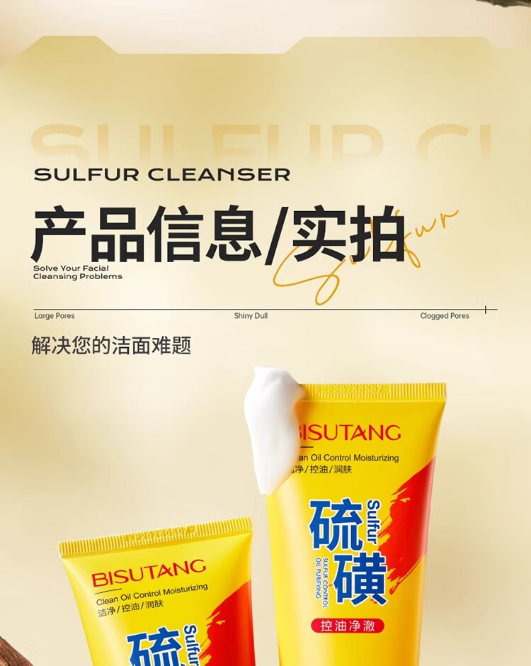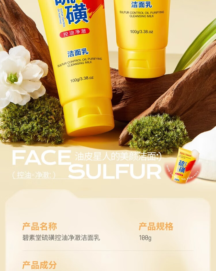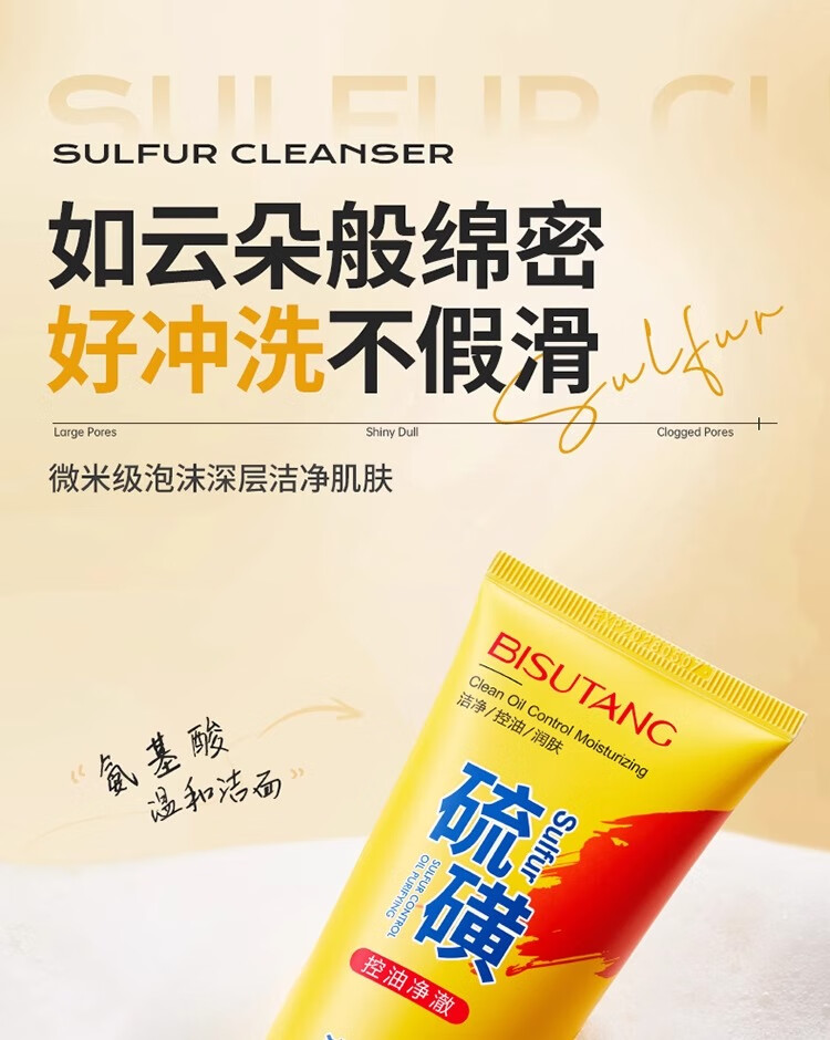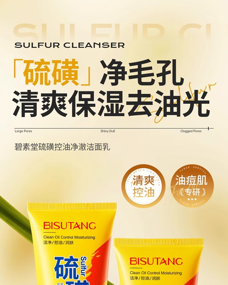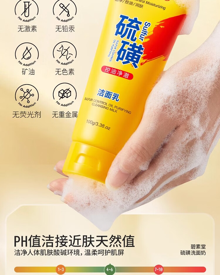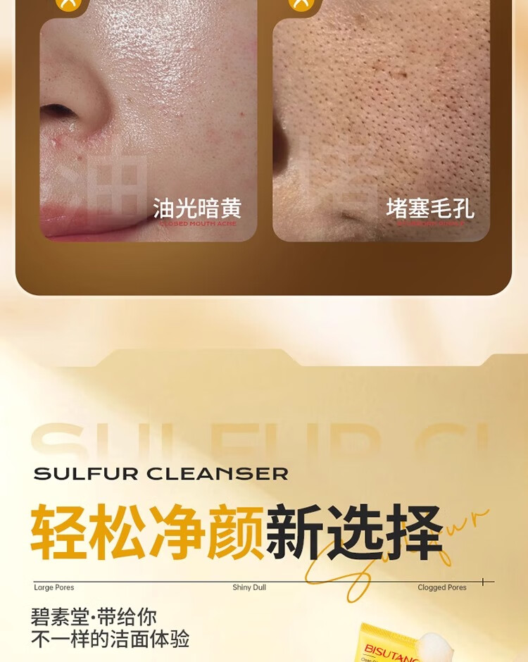 碧素堂硫磺洗面奶深层清洁面乳皂去收缩毛孔黑头控油男女士细致毛孔国货 100g【控油祛痘】买一送一