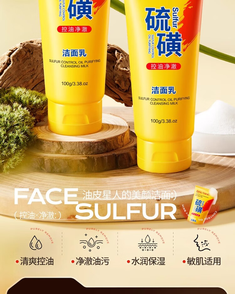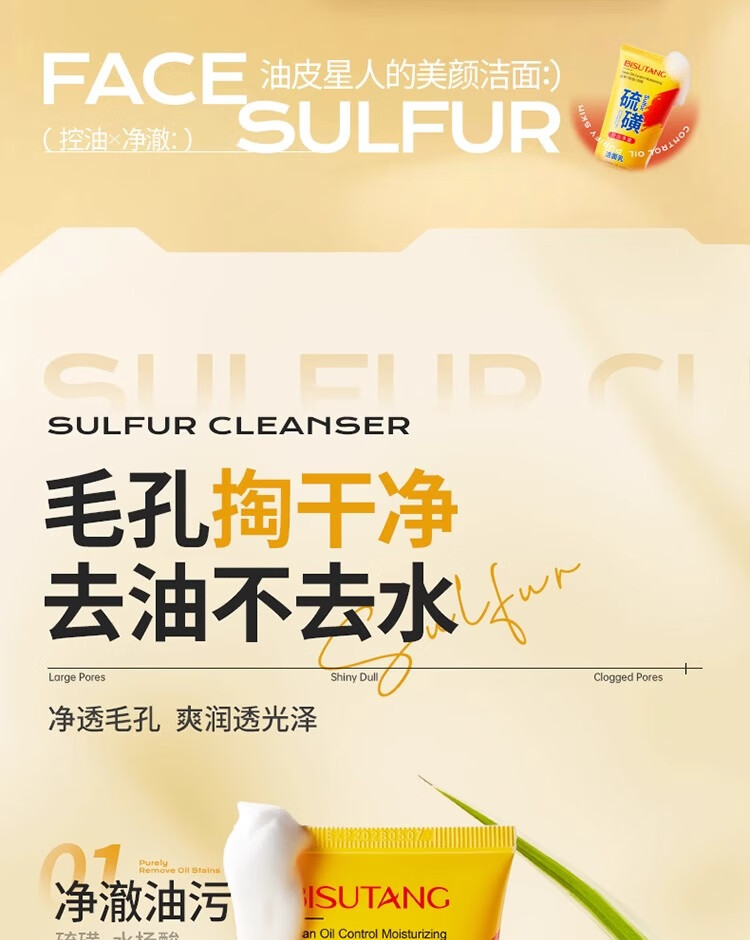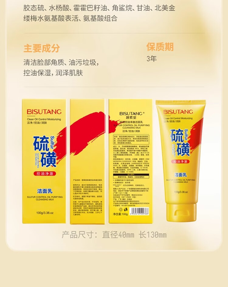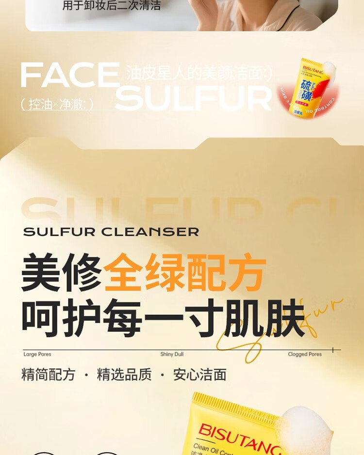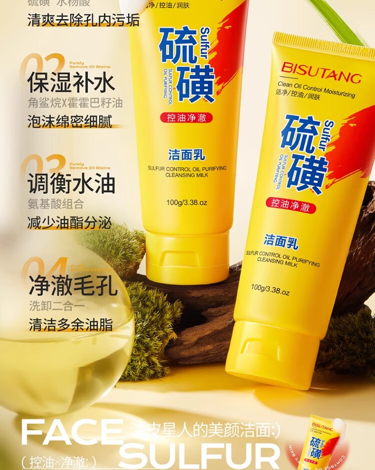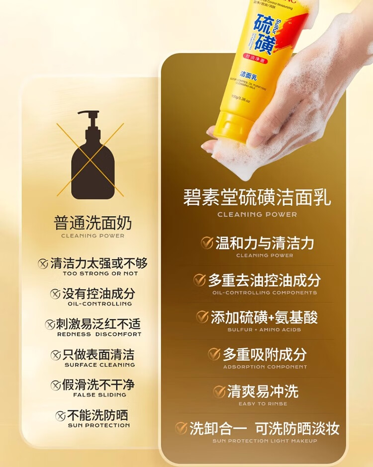 碧素堂硫磺洗面奶深层清洁面乳皂去收缩毛孔黑头控油男女士细致毛孔国货 100g【控油祛痘】买一送一