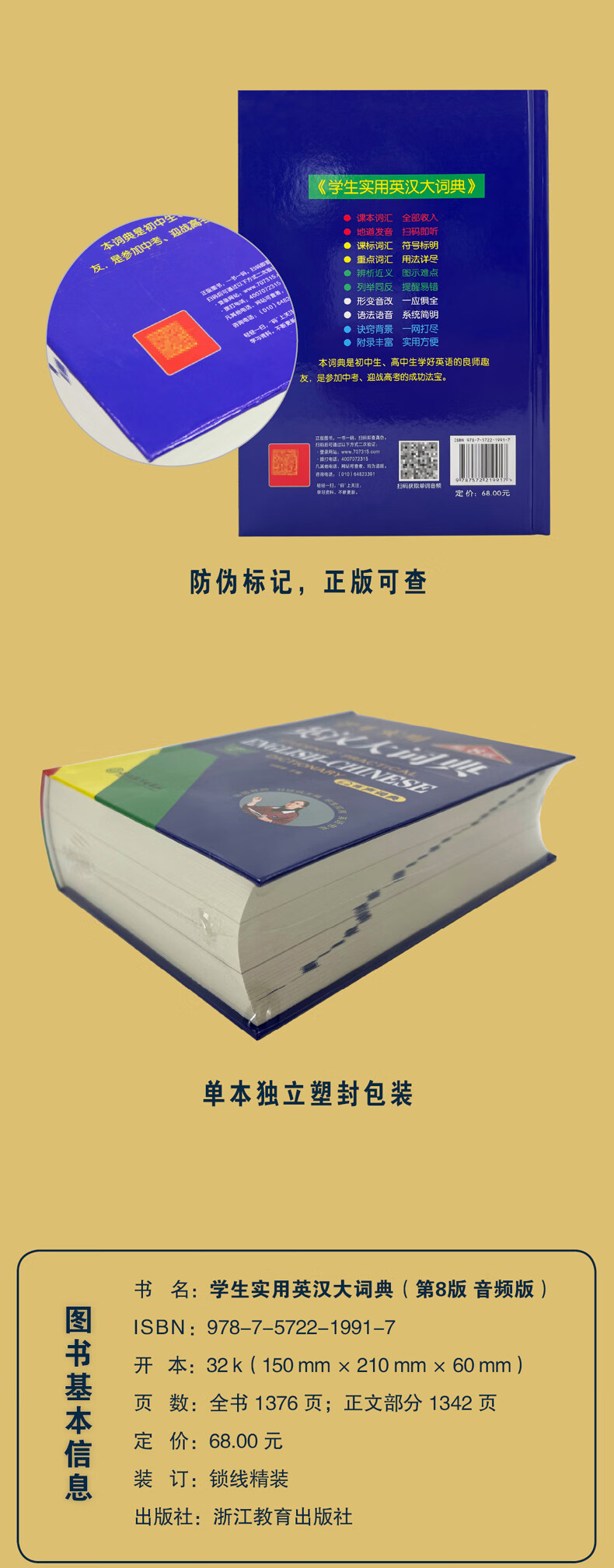 学生实用英汉大词典(第8版)音频版 有声词典 刘锐诚 工具书 初中高中 英语词典 英语字典 英汉汉英