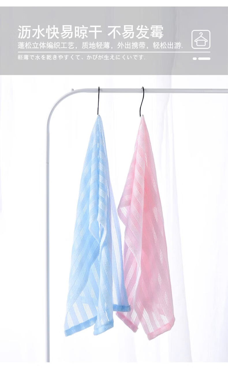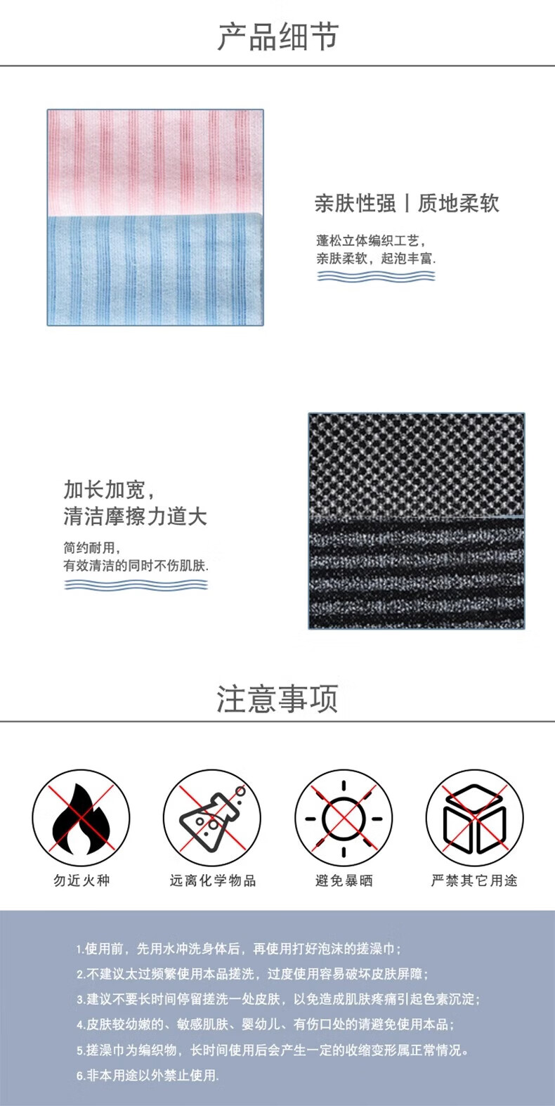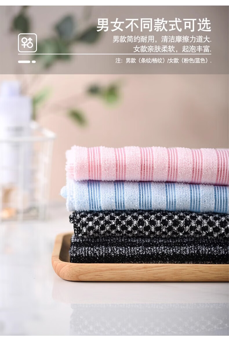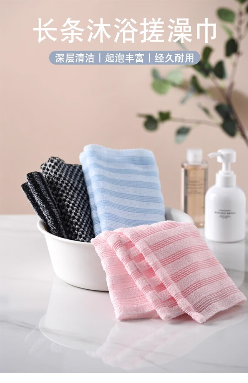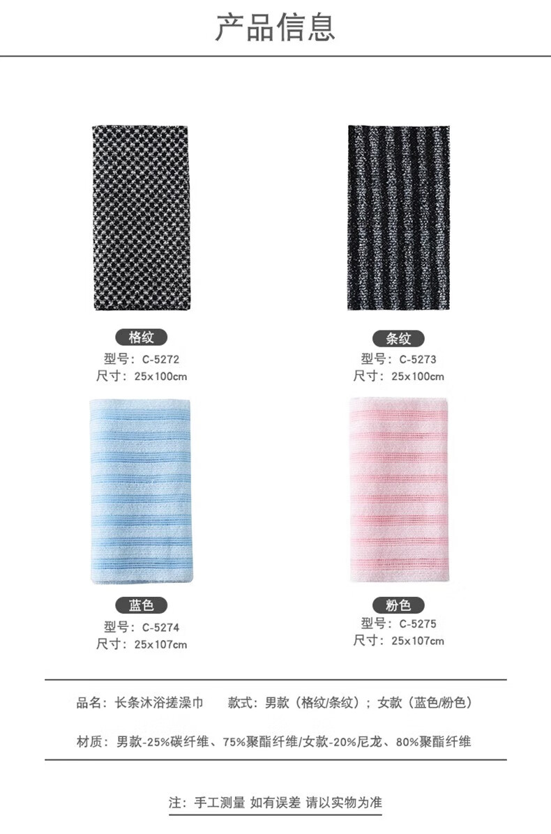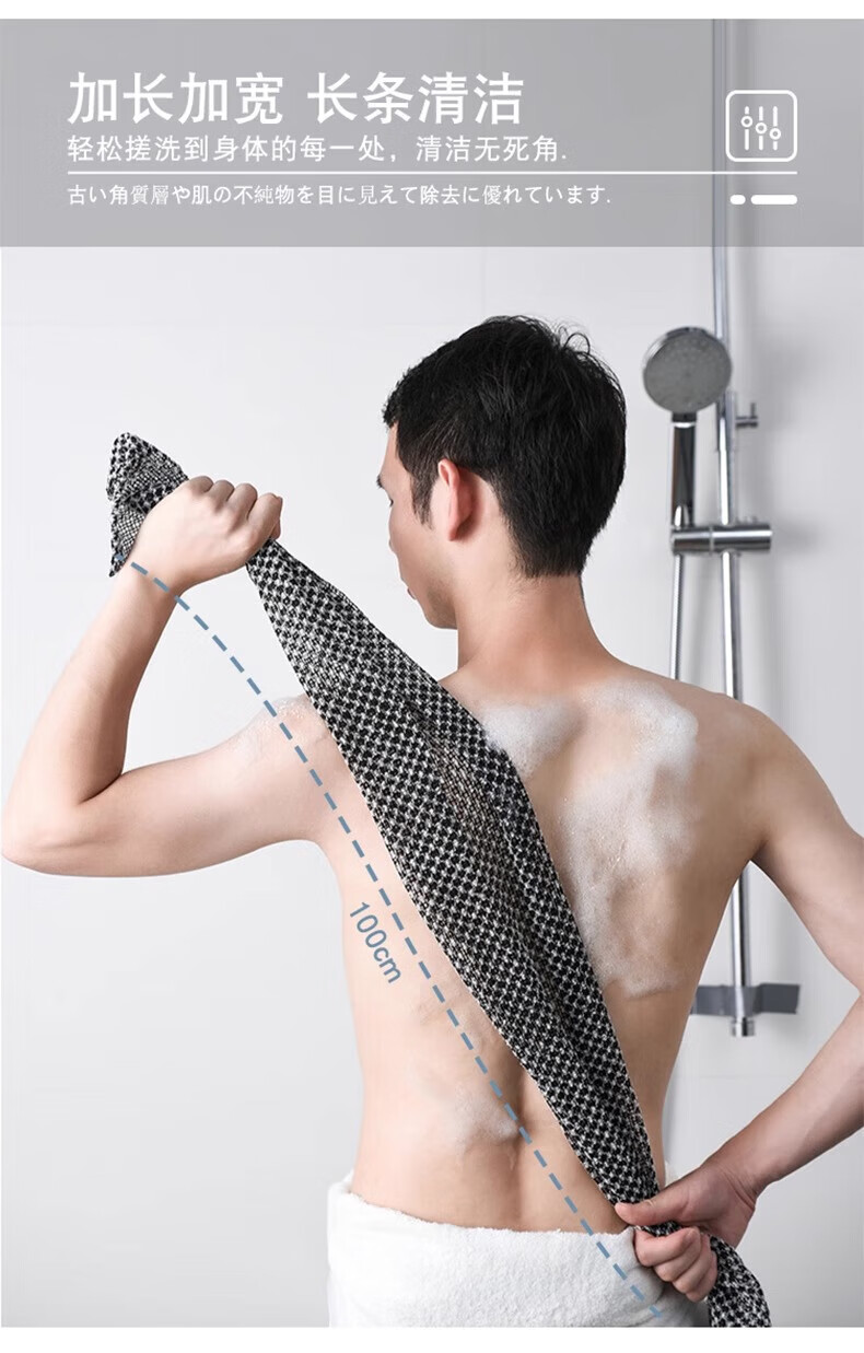 首力日系家用搓澡巾男女士搓背下泥长条后背搓泥不伤肤洗澡巾黑色条纹