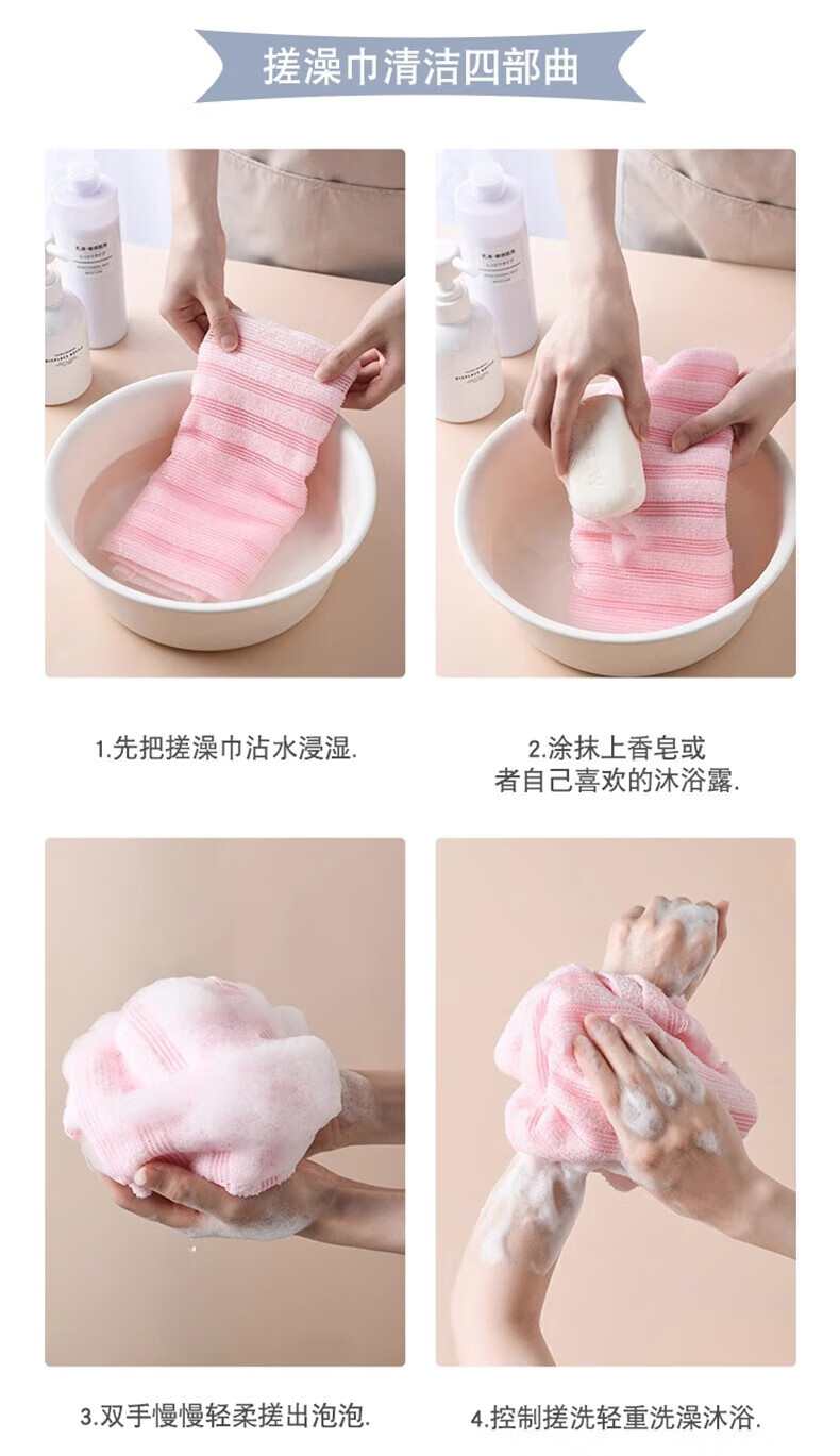 【甄选】搓澡巾强力去污成人男女新款洗澡巾双面搓澡加厚 【双层彩色澡巾】 加厚升级【蓝色+黄色】到手2件